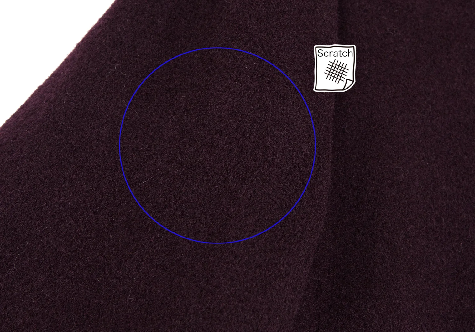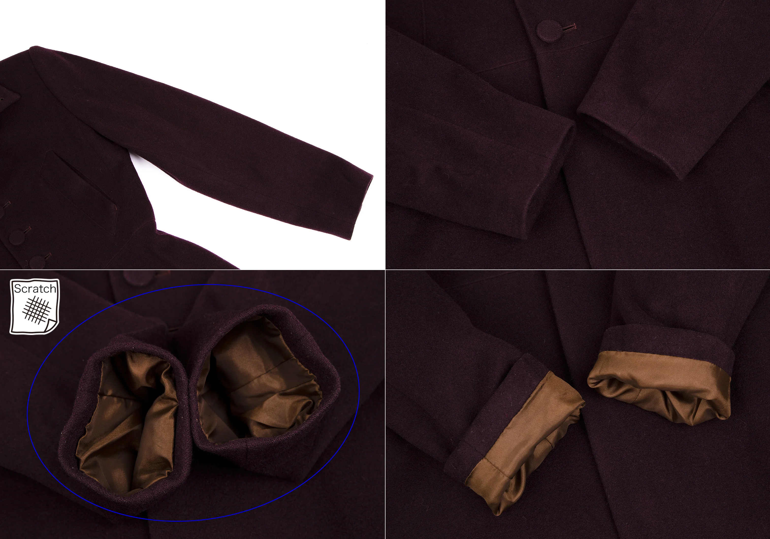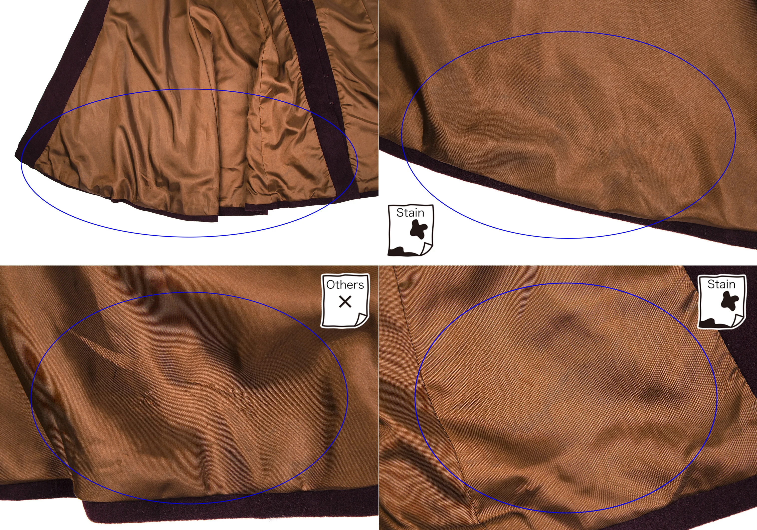 右袖・前・後ろ左肩に毛抜け、袖先にスレ、裏地に汚れ・シミ・傷があります(画像参照)。その他目立ったシミ、汚れ、ほつれ等はありません。クリーニング済み