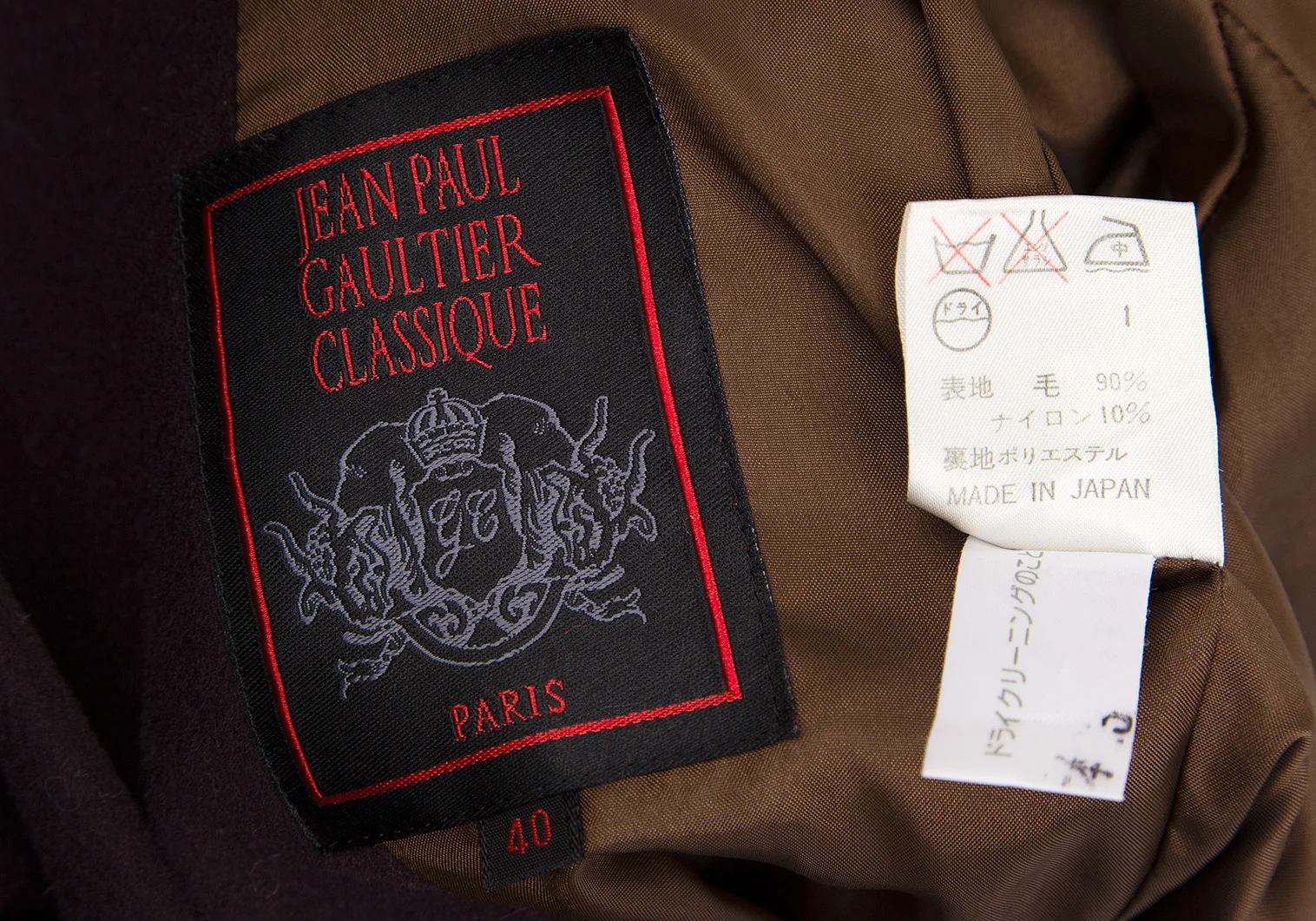 ジャンポールゴルチエ クラシックJean Paul GAULTIER CLASSIQUE ウールナイロンバックスリットボタン留めフレアロングコート ボルドー40