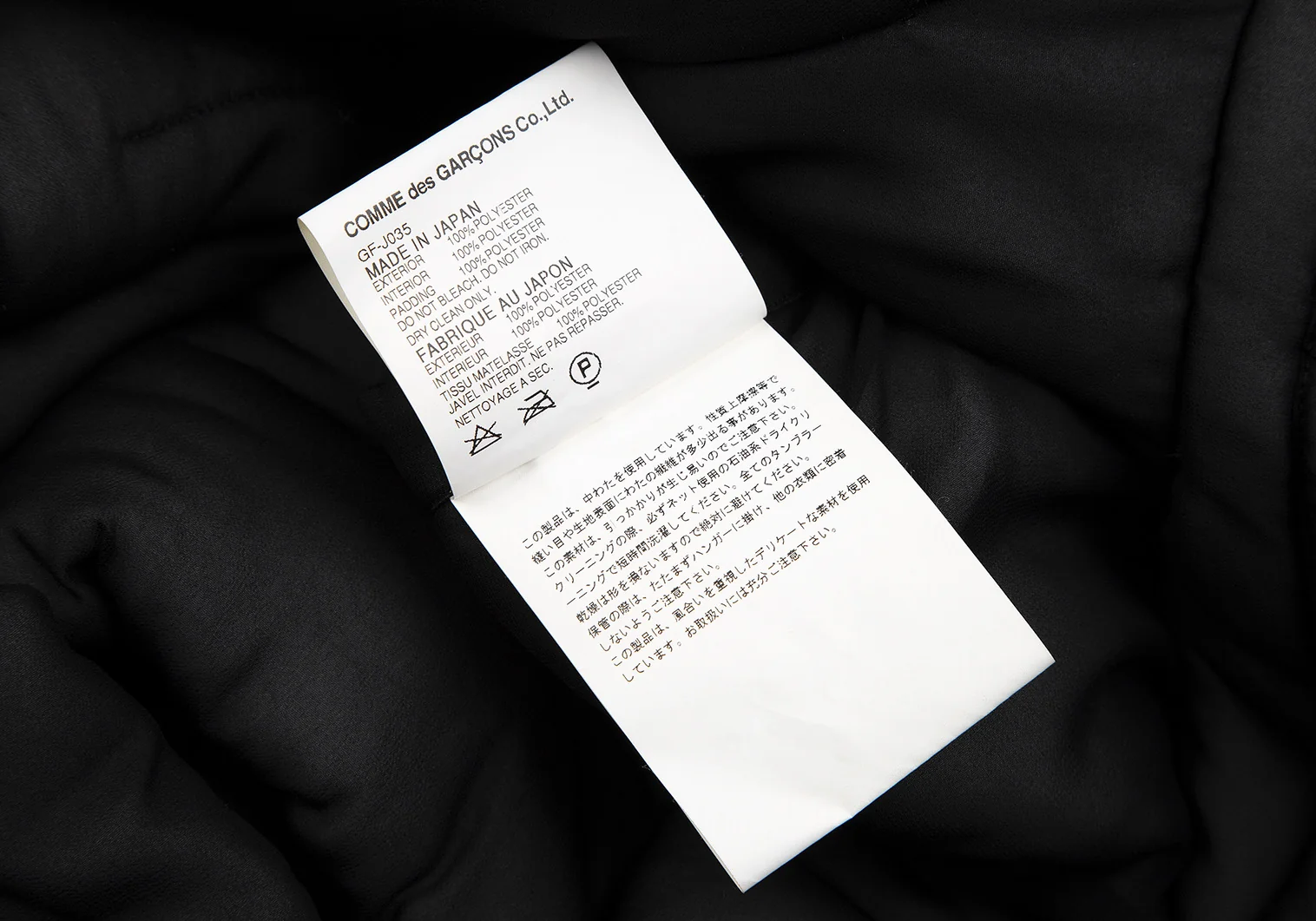 ポリエステル100% 裏側 ポリエステル100% 中綿 ポリエステル100%