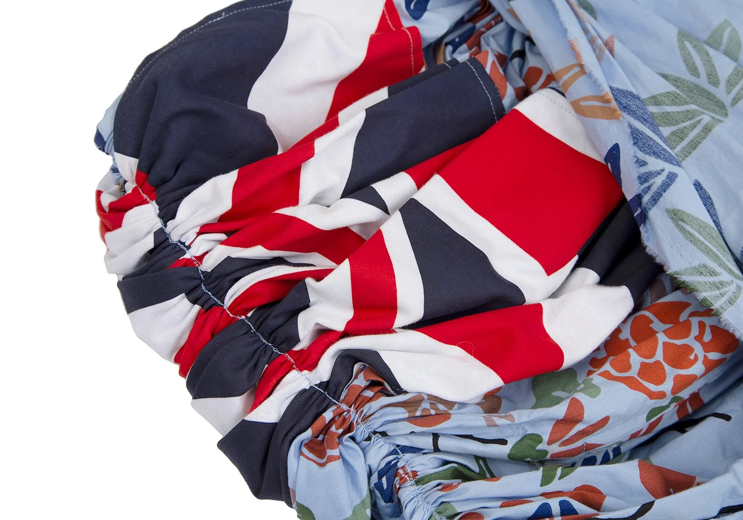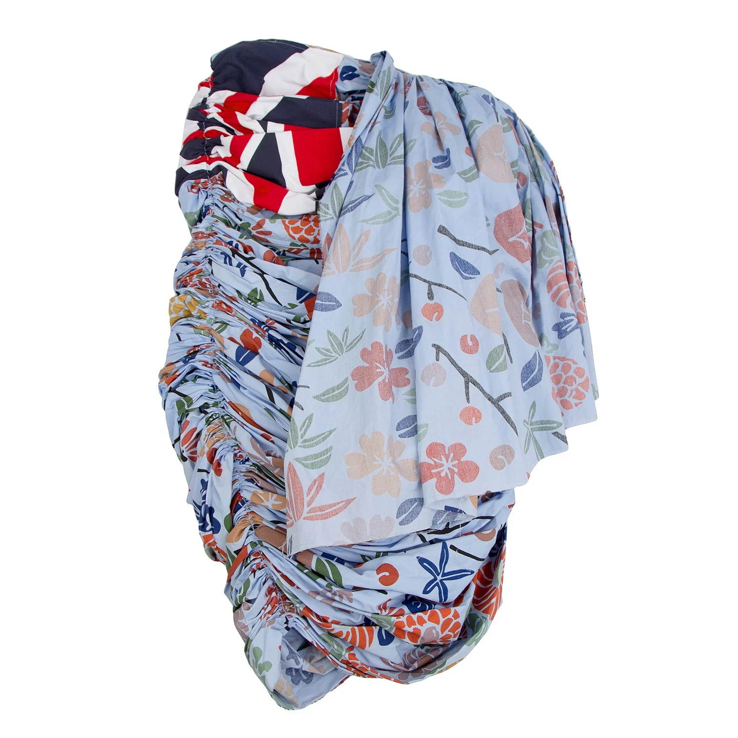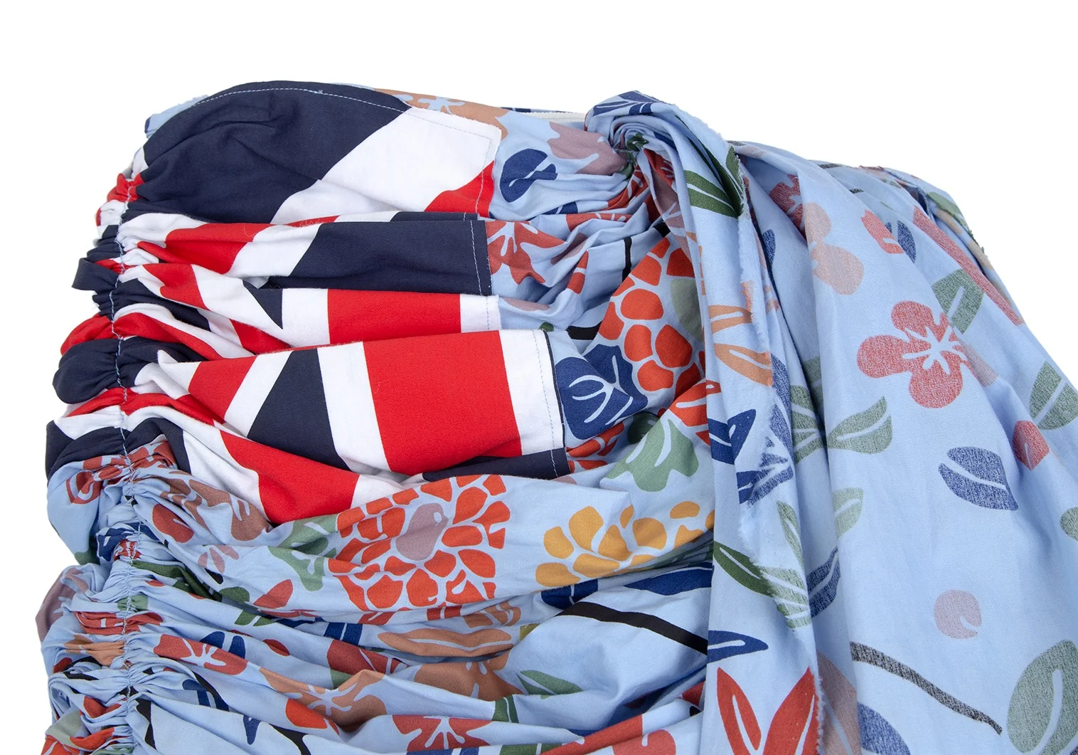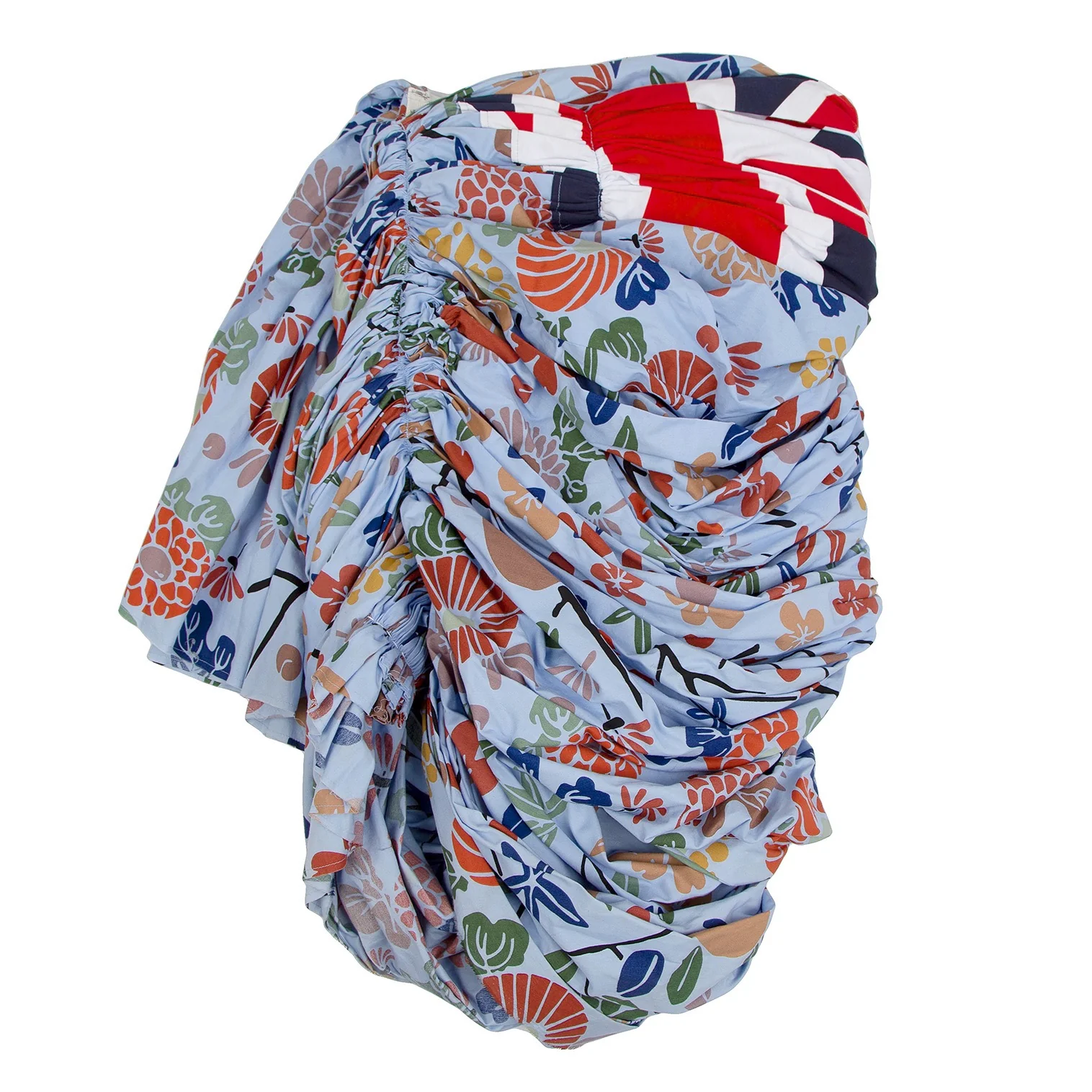 コムデギャルソンCOMME des GARCONS ユニオンジャック花柄再構築ギャザースカート 水色他SS