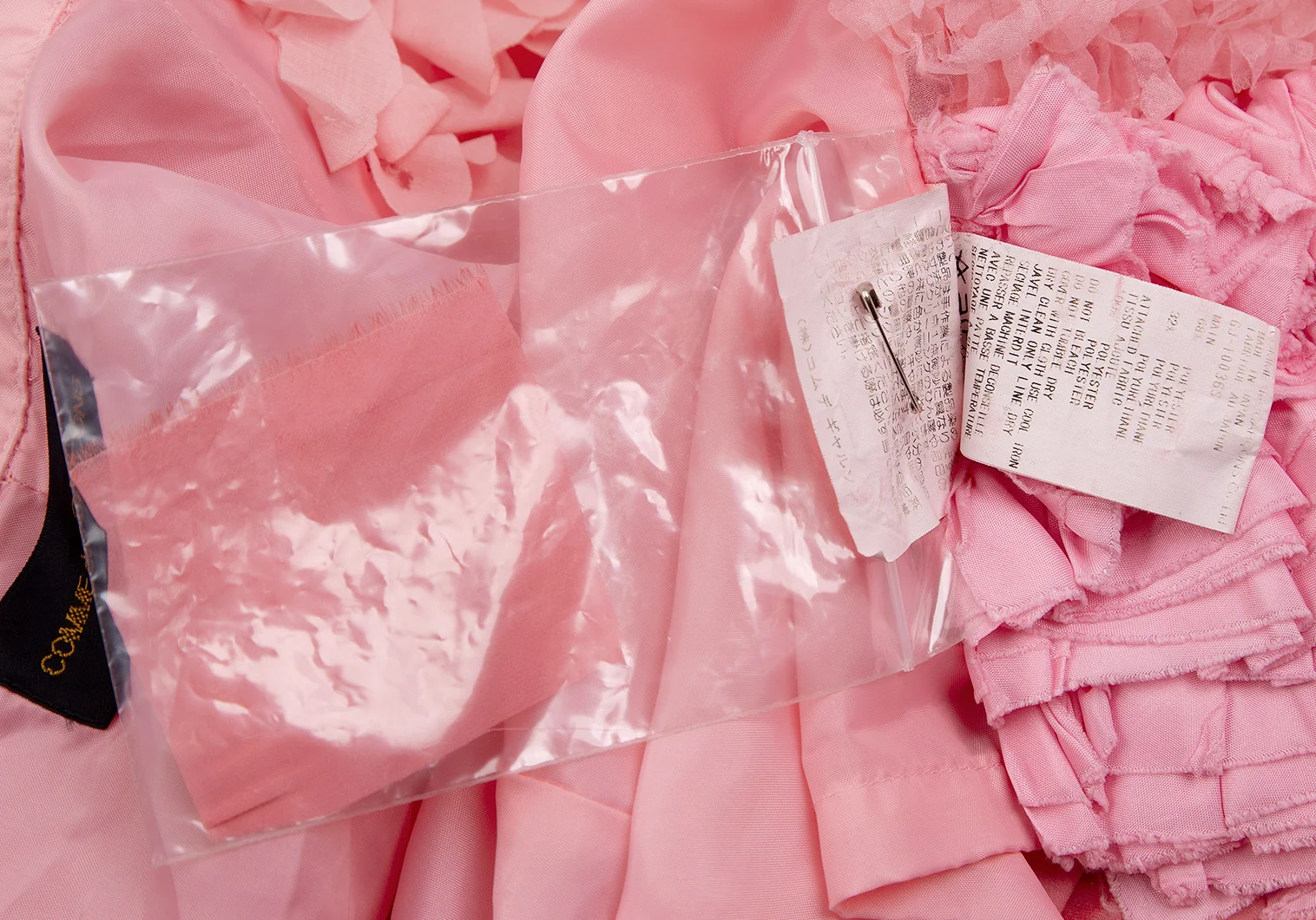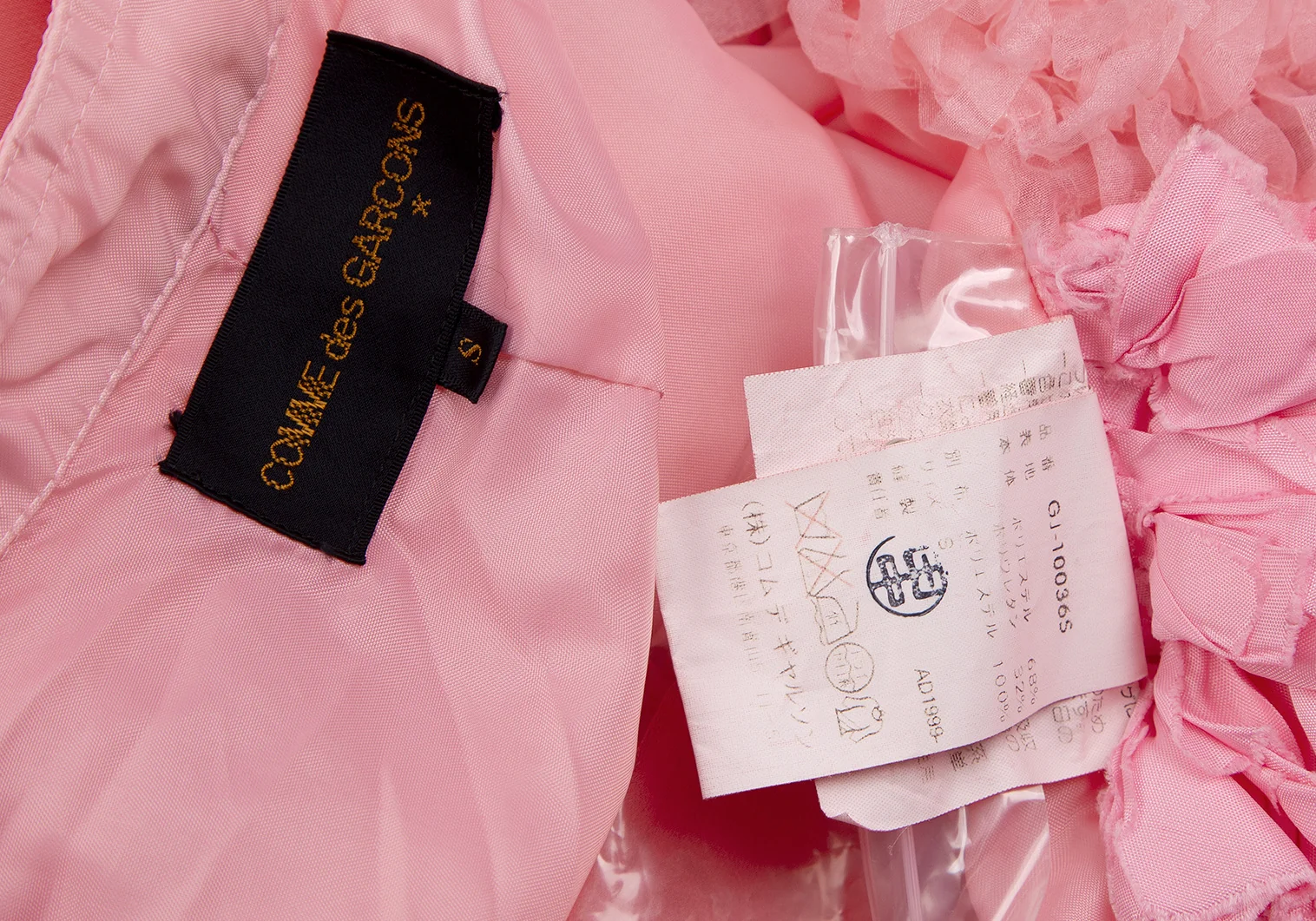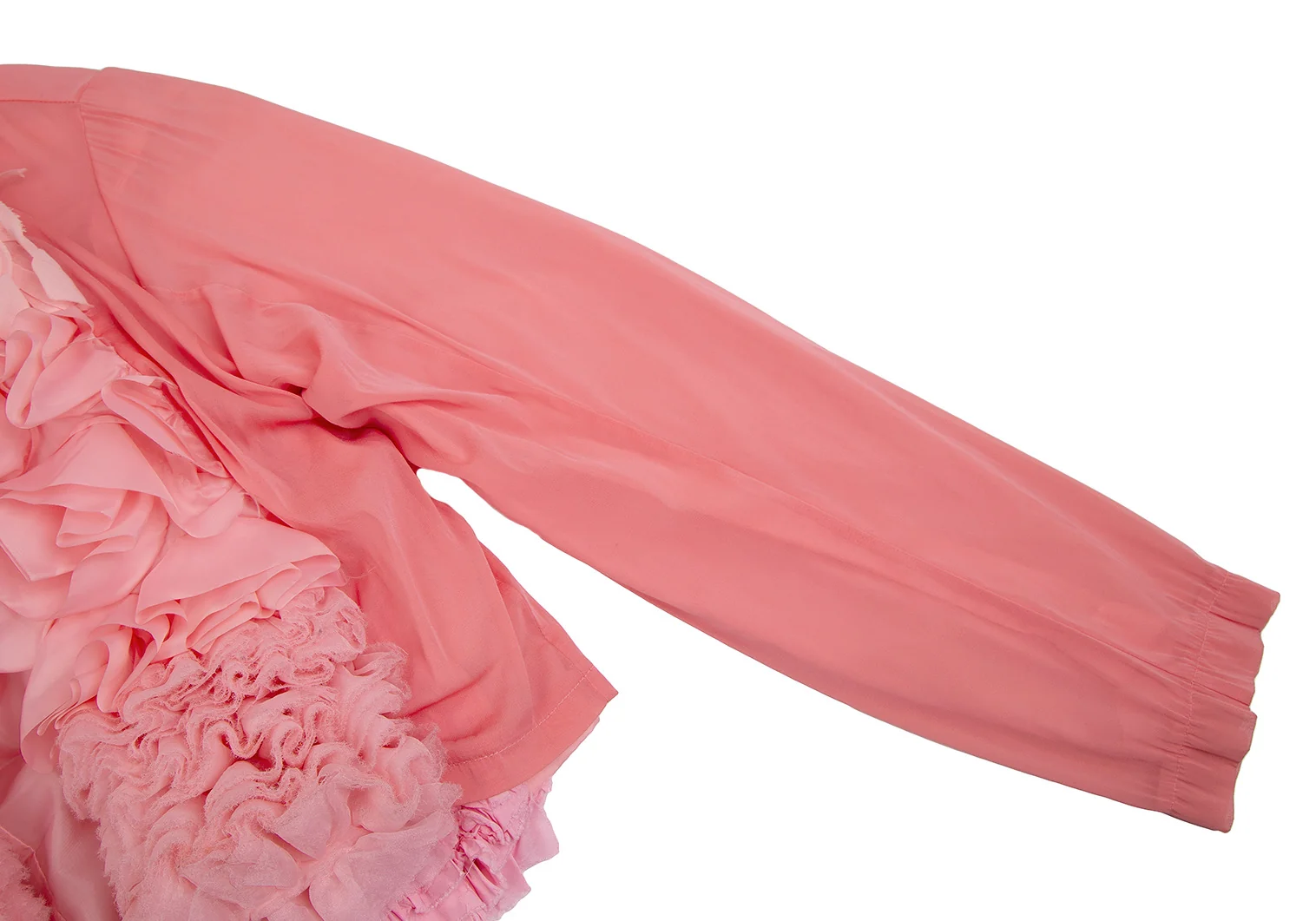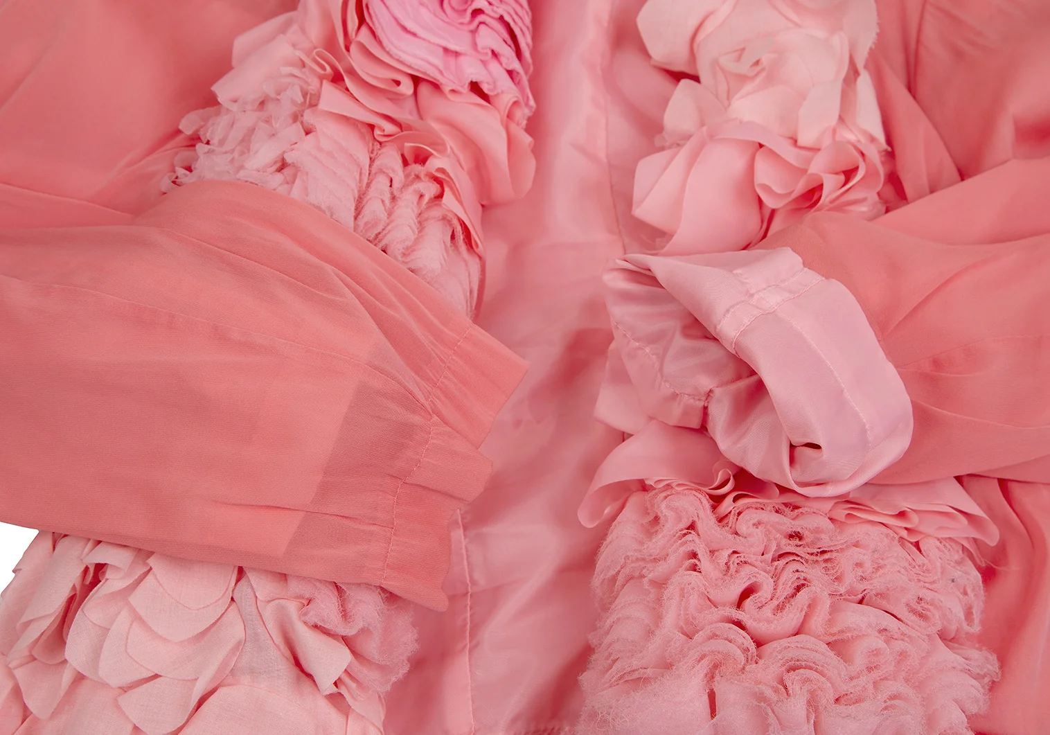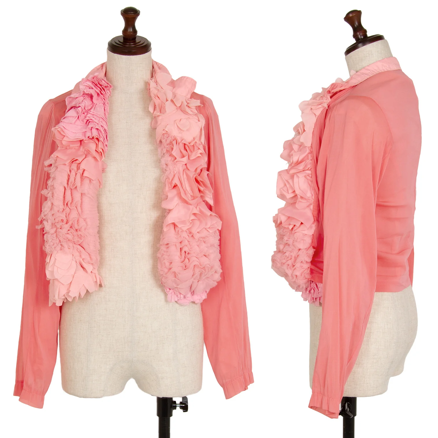 コムデギャルソンCOMME des GARCONS 製品染めフリル装飾ノーカラージャケット ピンクS