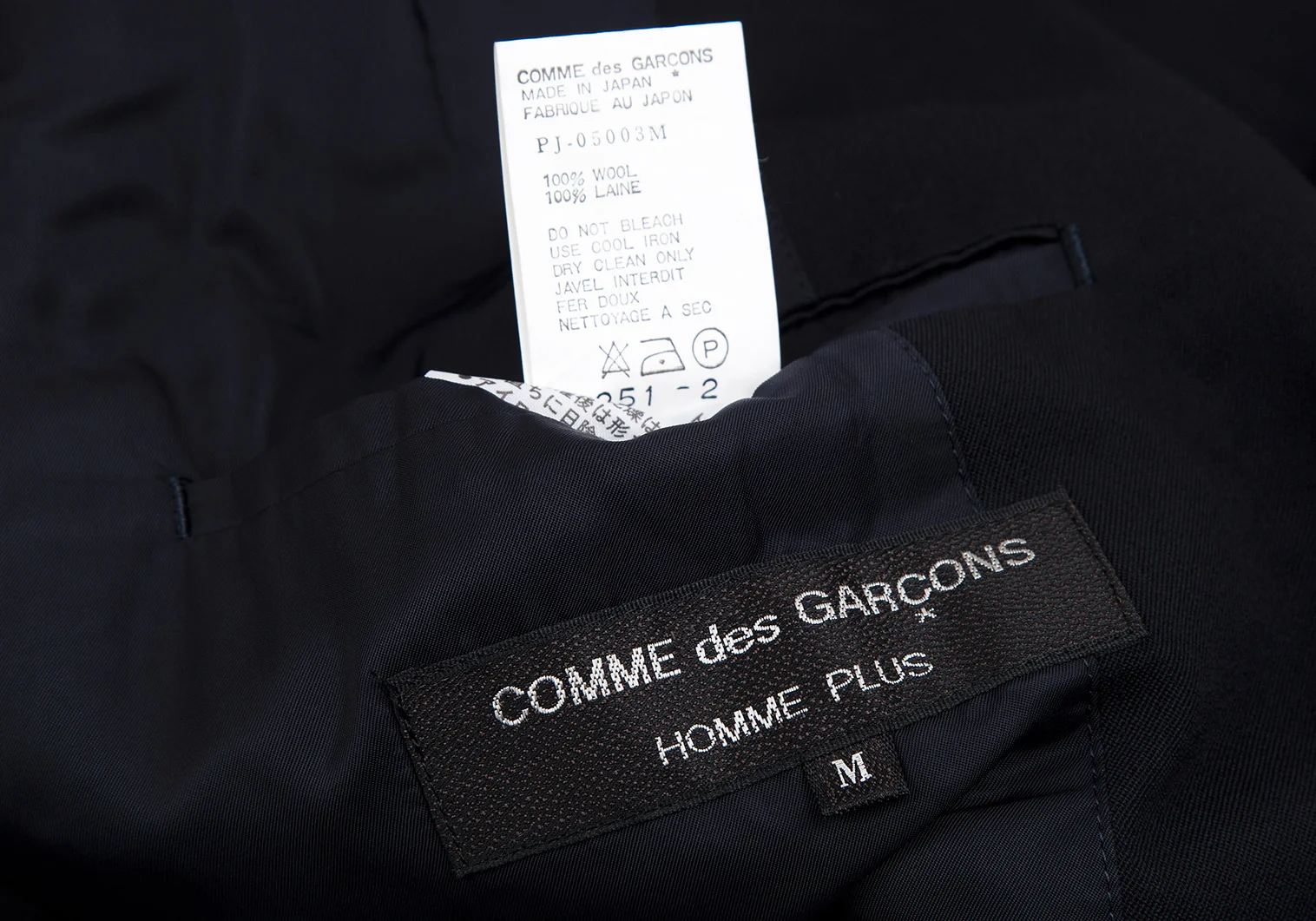 コムデギャルソン オムプリュスCOMME des GARCONS HOMME PLUS ウールギャバノッチドラペル2Bジャケット 紺M