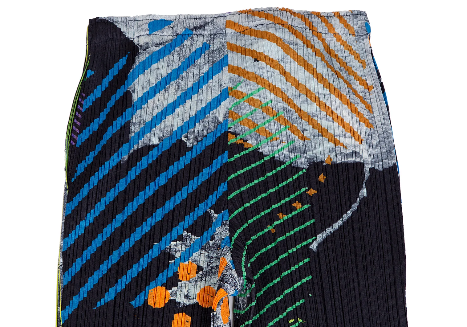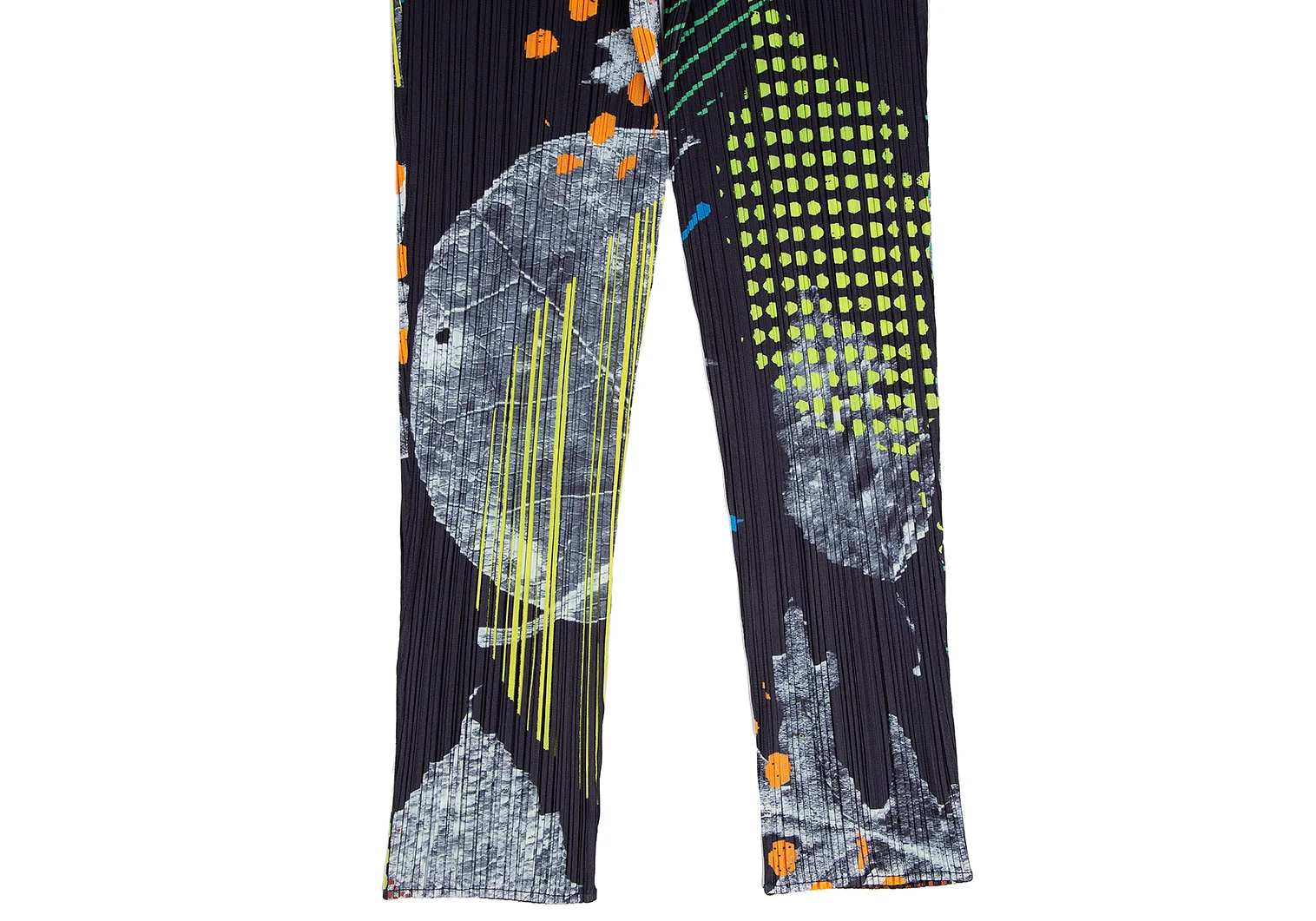 プリーツプリーズPLEATS PLEASE グラフィックプリントパンツ 紺マルチM位