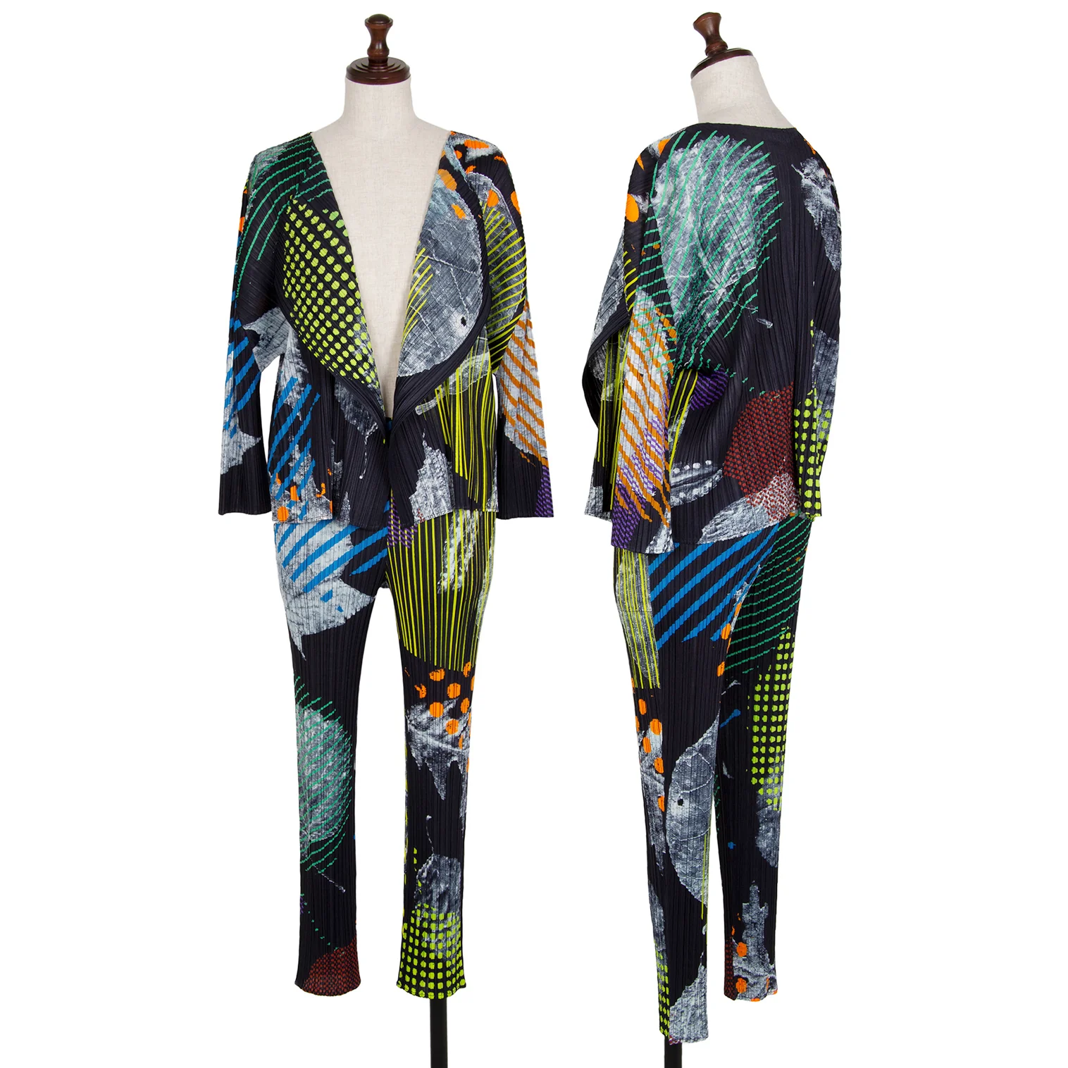 プリーツプリーズPLEATS PLEASE グラフィックプリントセットアップ 紺マルチ4/M位