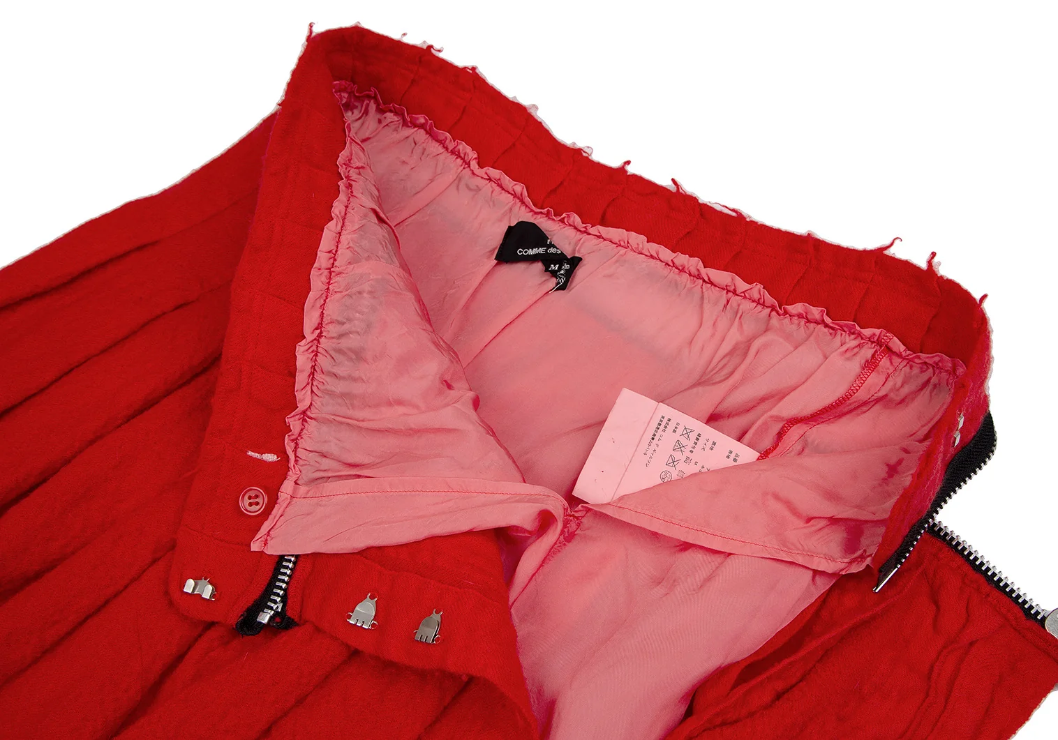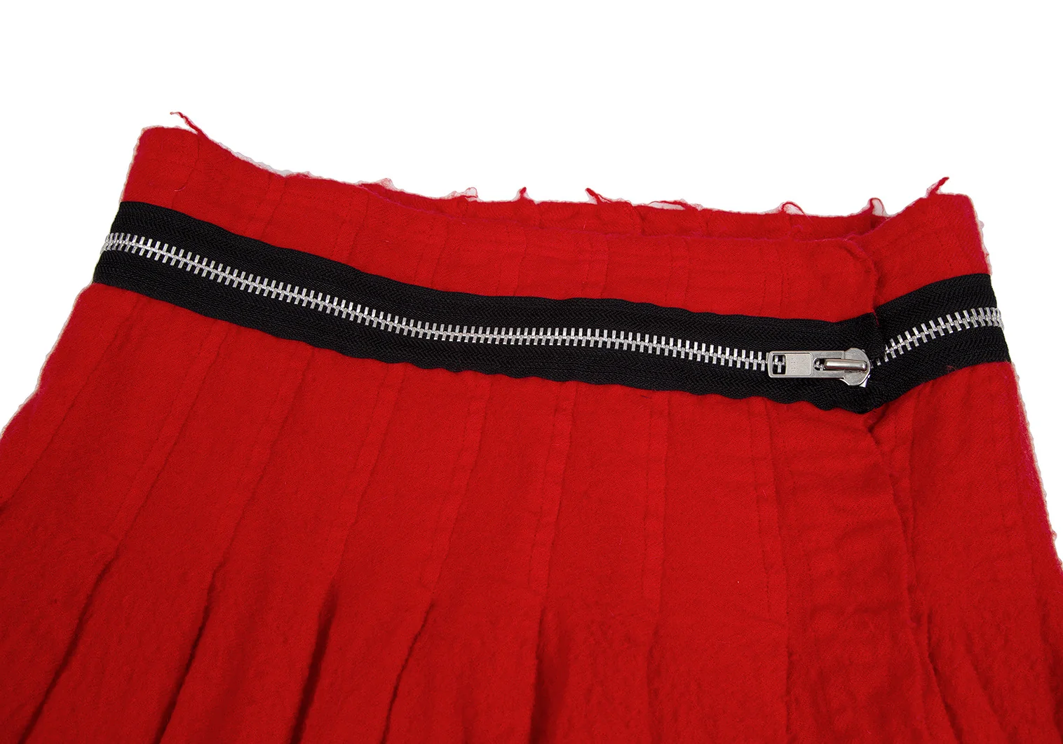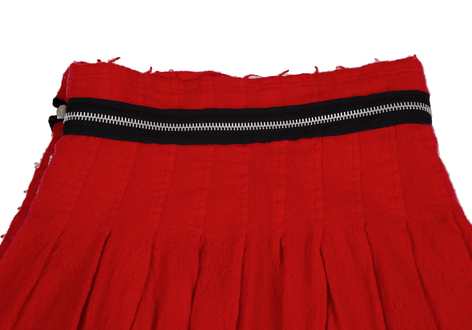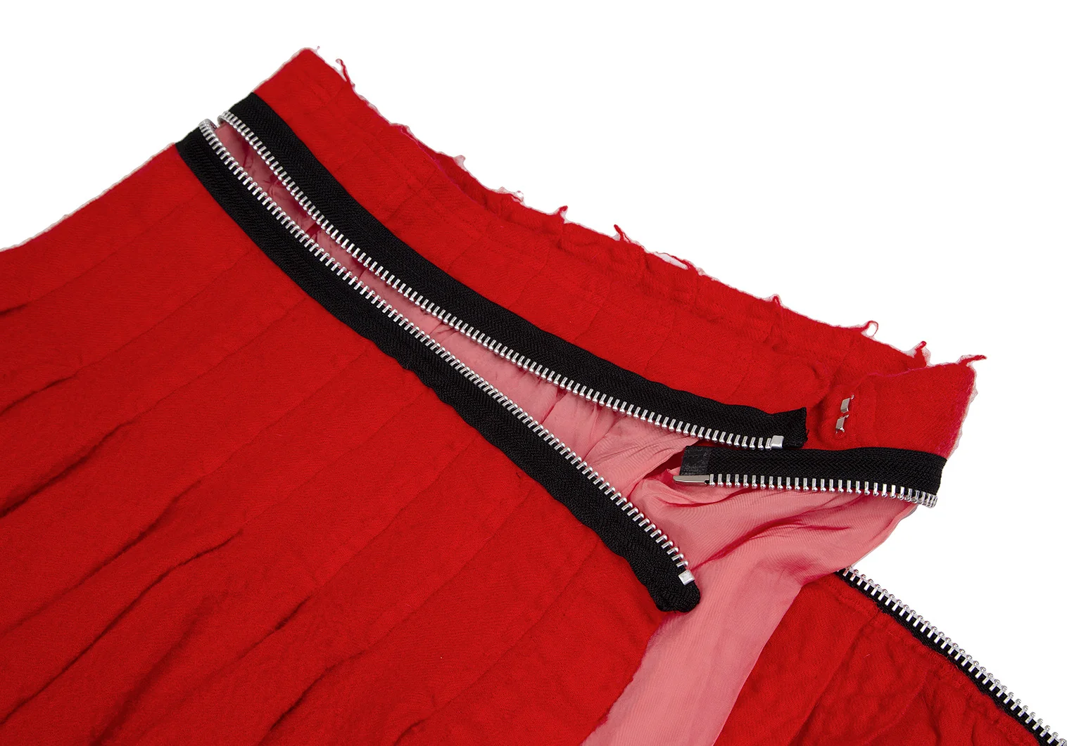 トリココムデギャルソンtricot COMME des GARCONS製品染めアンゴラ混ジップデザインプリーツスカート 赤M