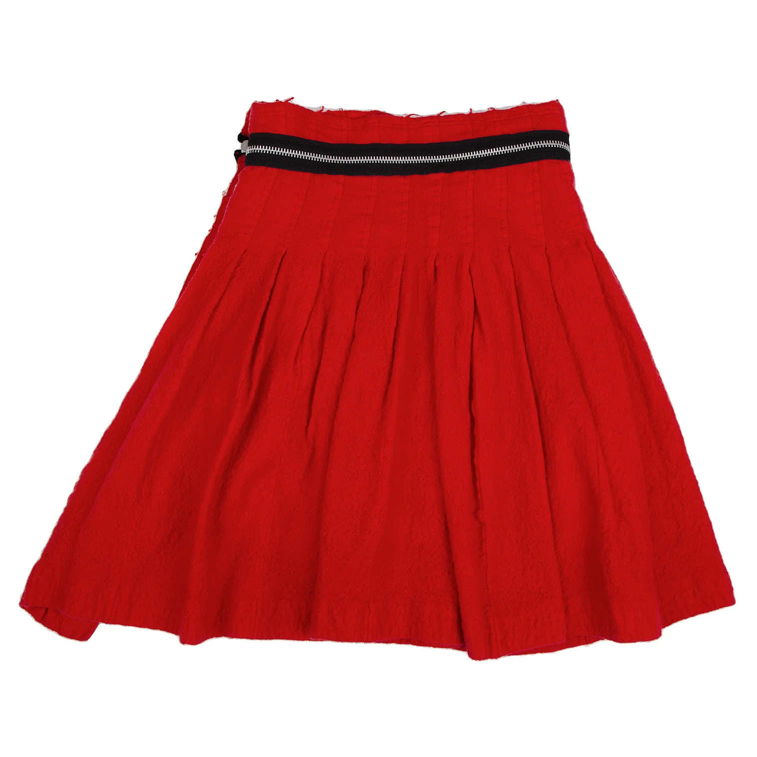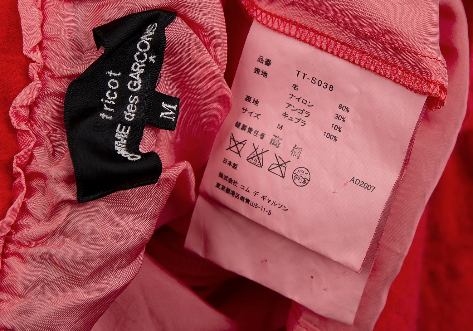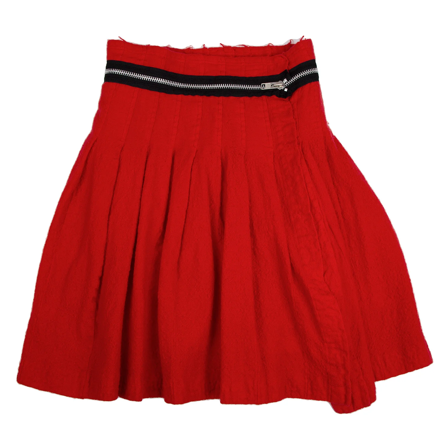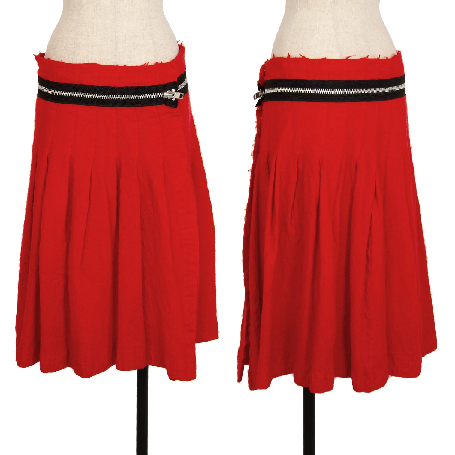トリココムデギャルソンtricot COMME des GARCONS製品染めアンゴラ混ジップデザインプリーツスカート 赤M