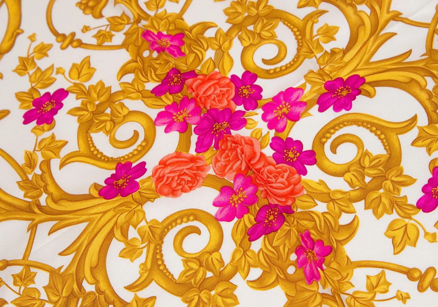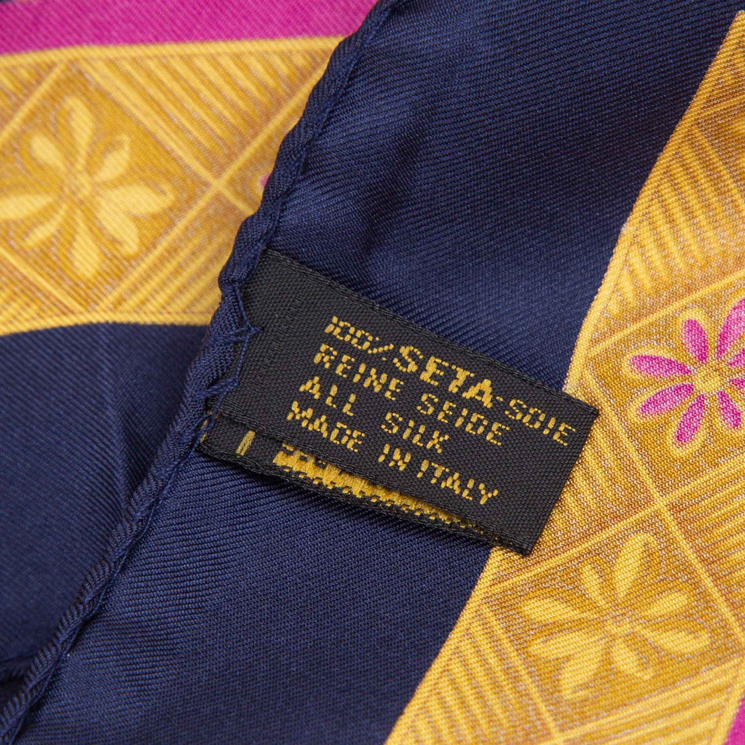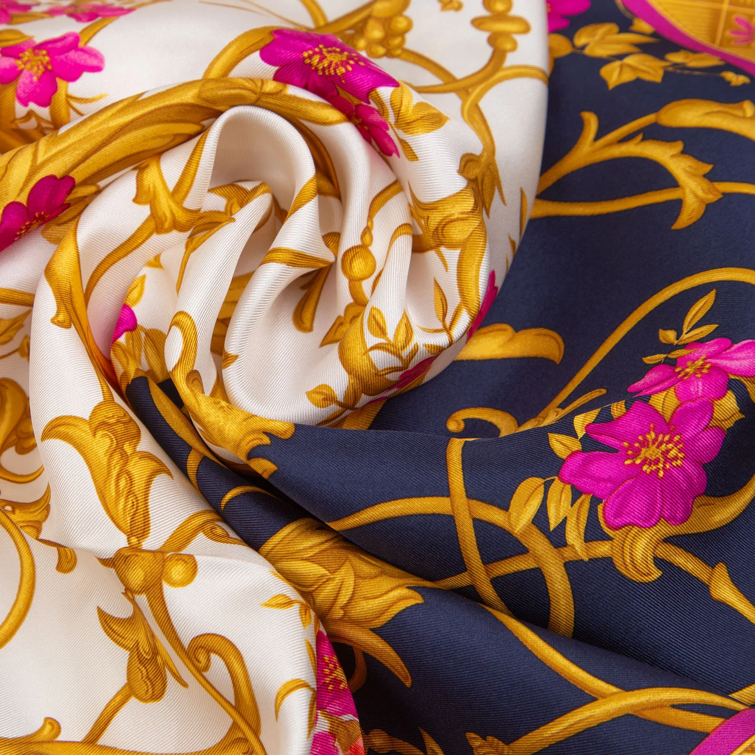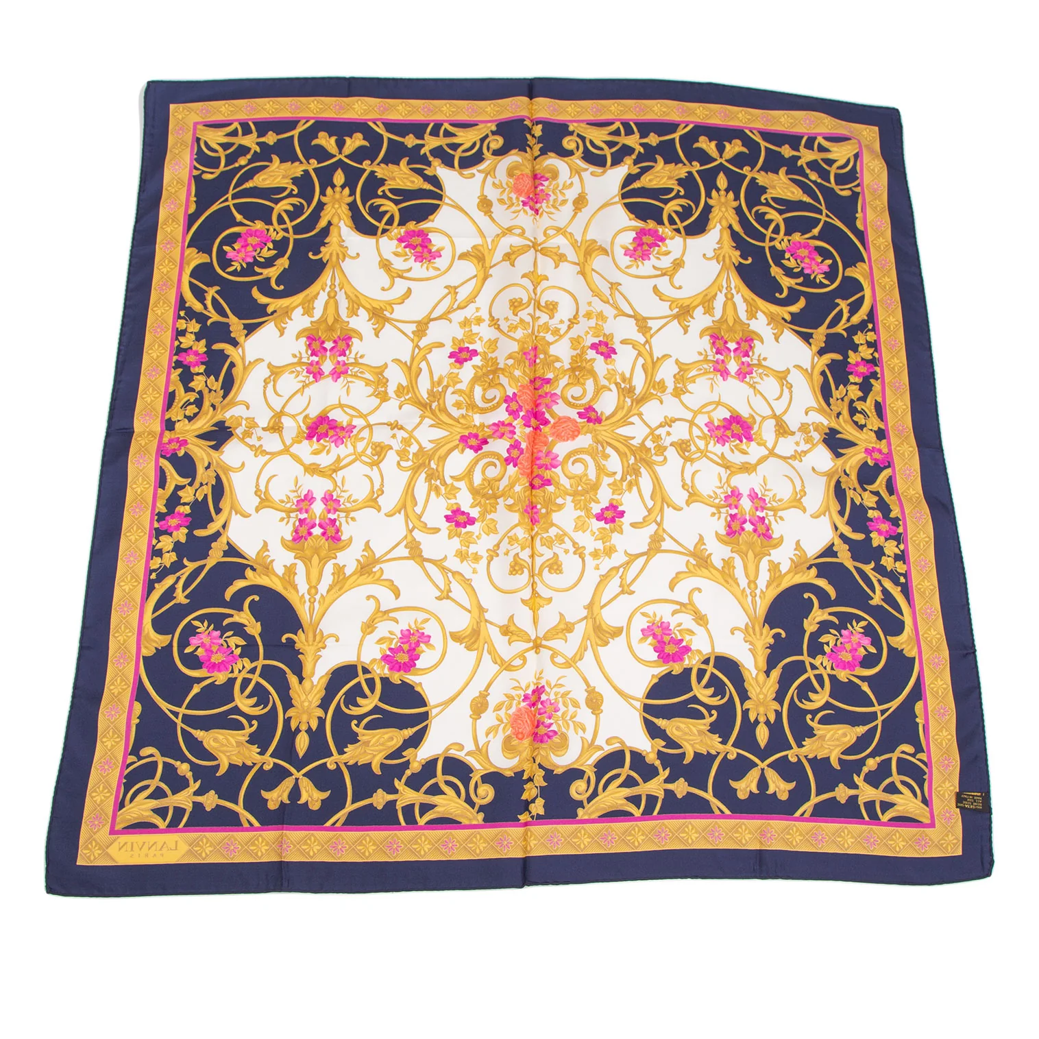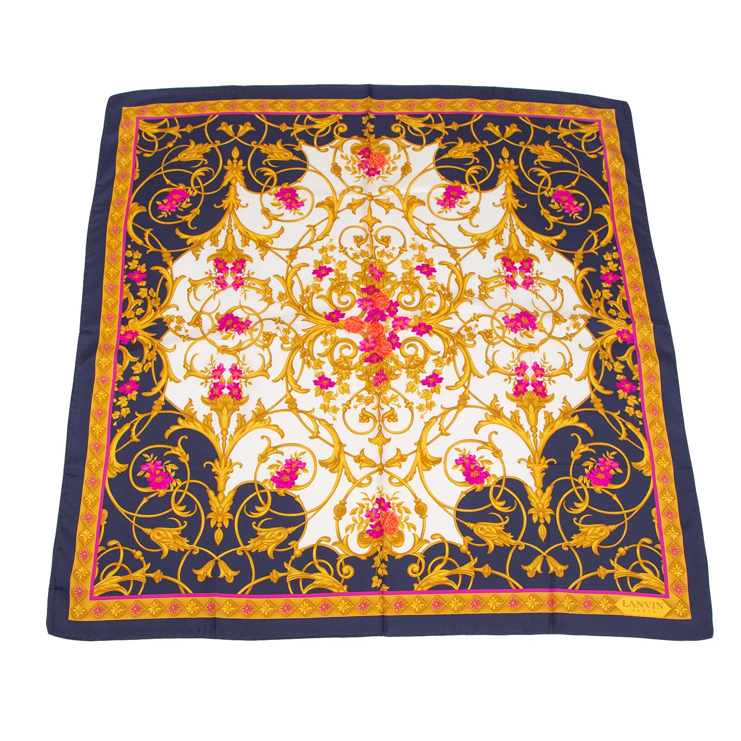 ランバンLANVIN フラワーバロックプリントシルクスカーフ 白紺