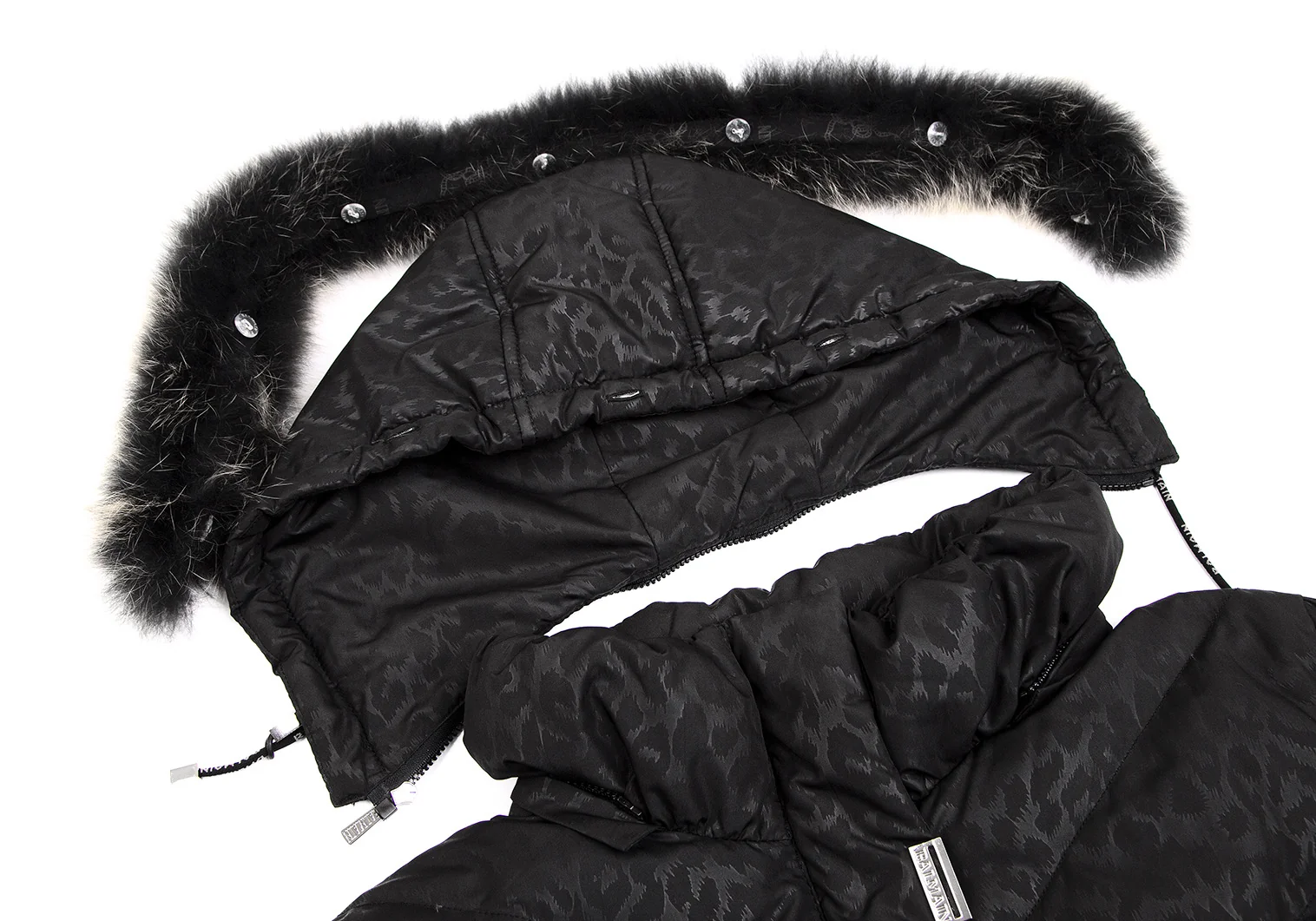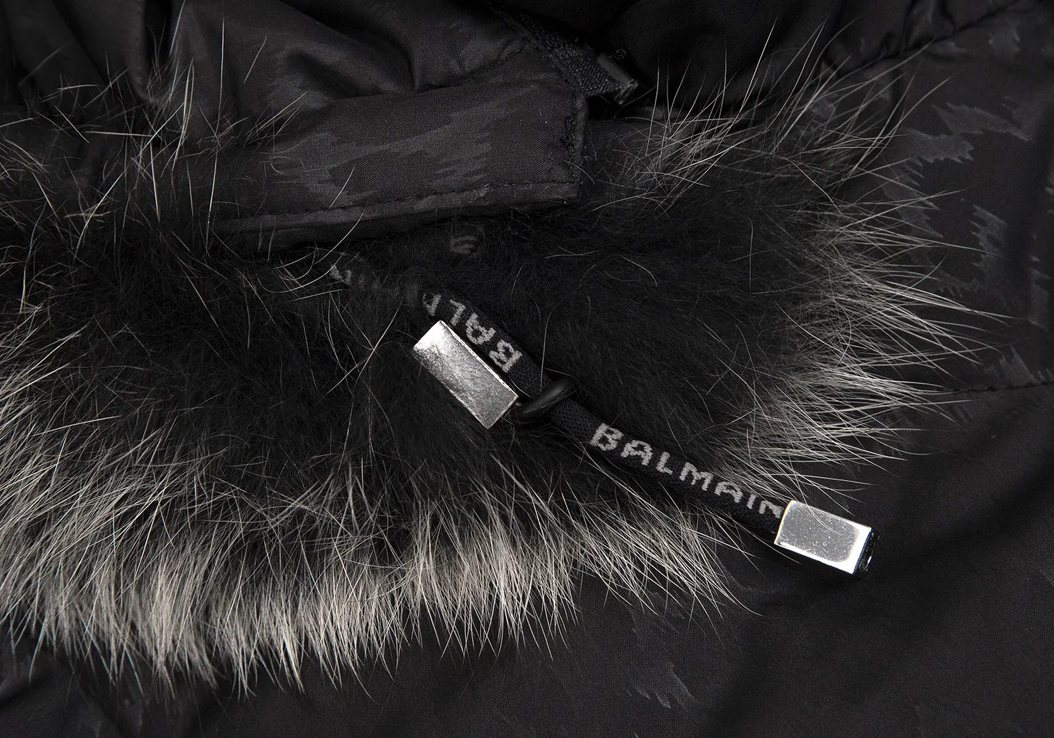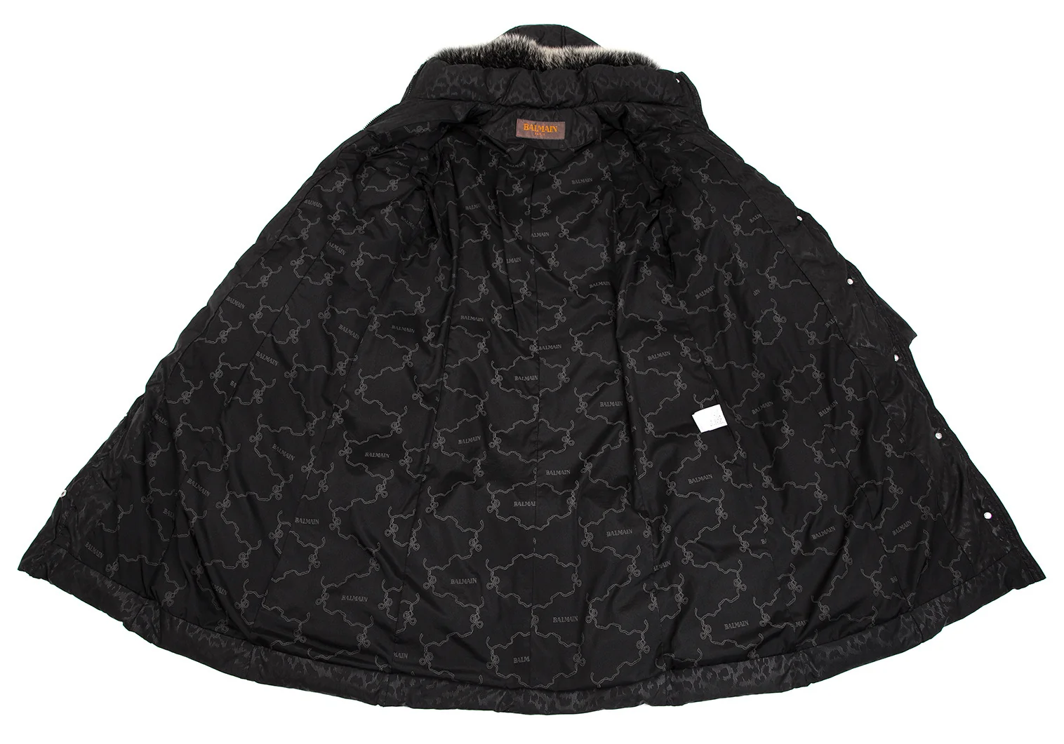 バルマンBALMAIN ブルーフォックスファー着脱レオパードプリントフードダウンコート 黒M