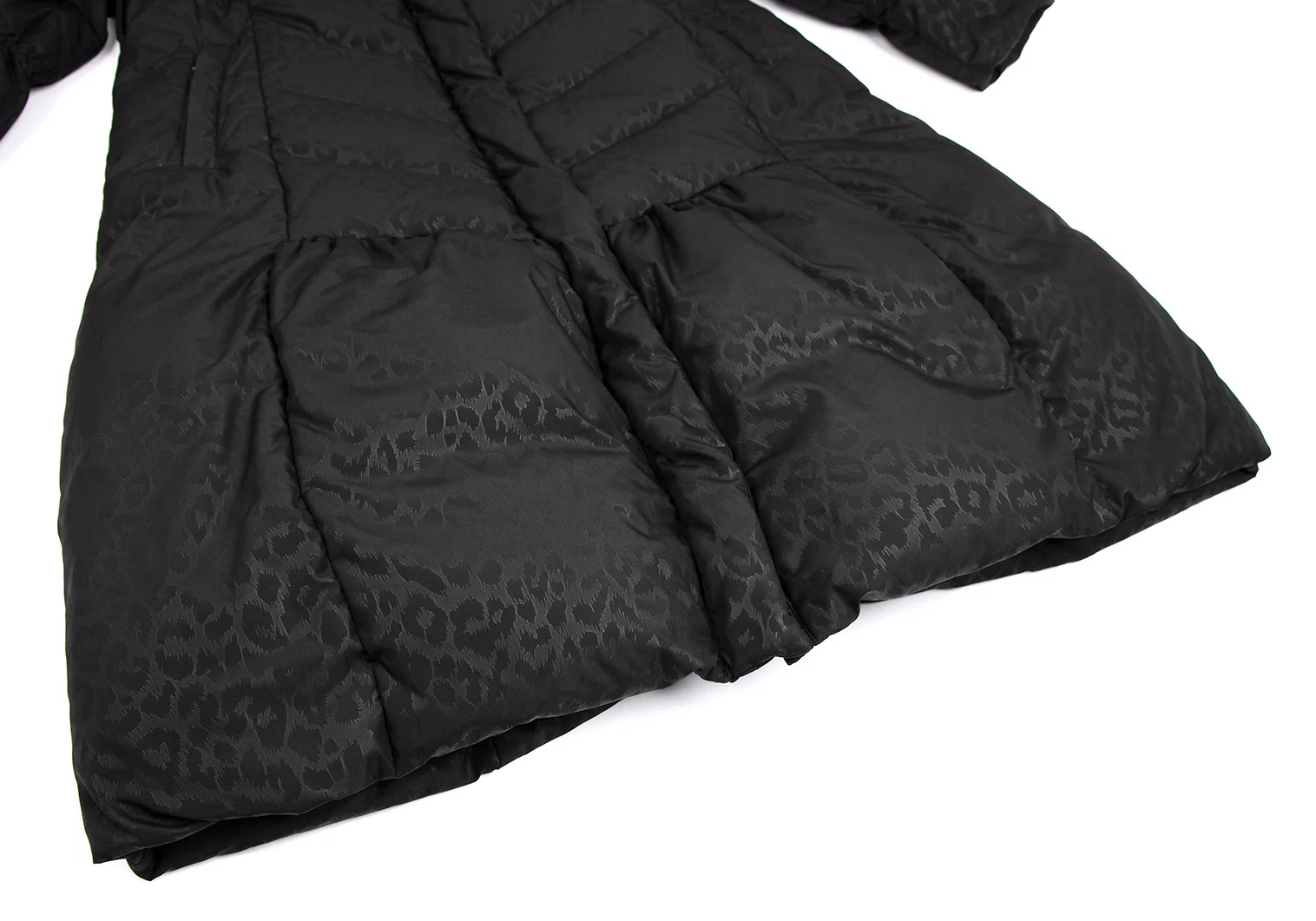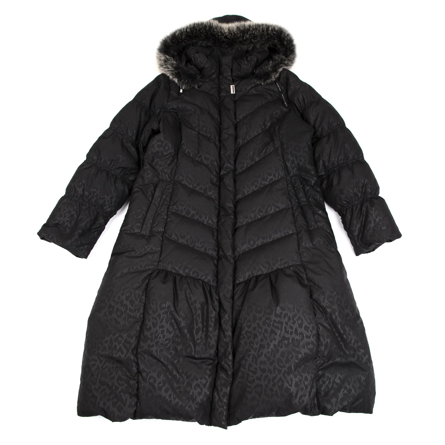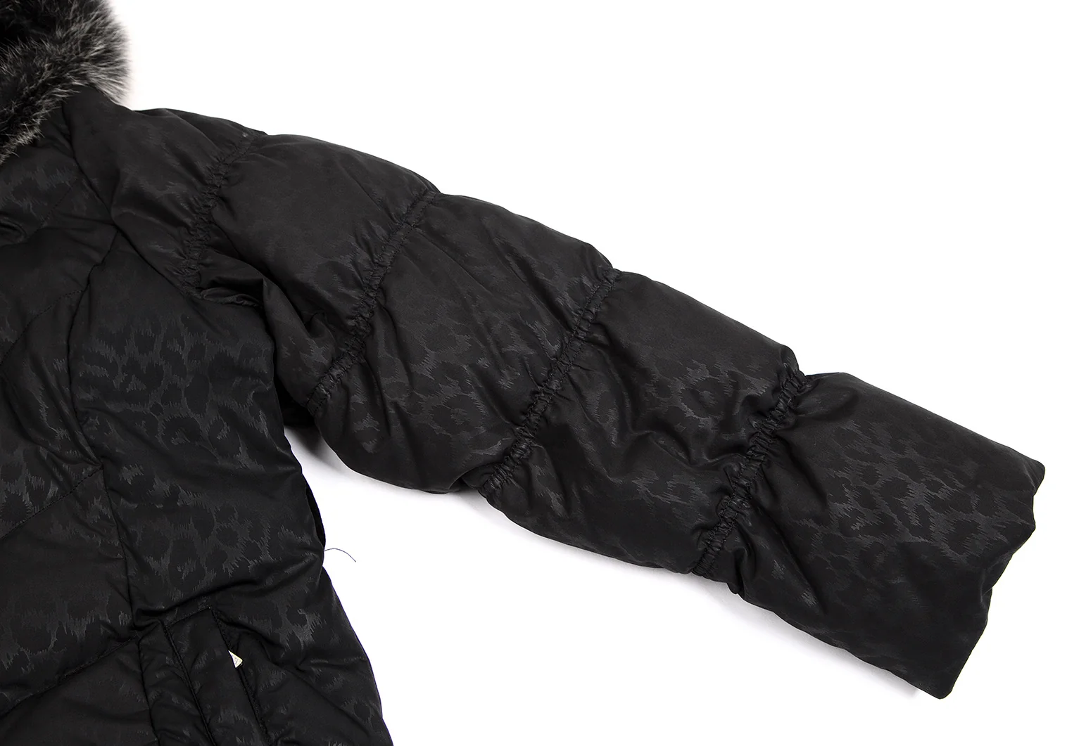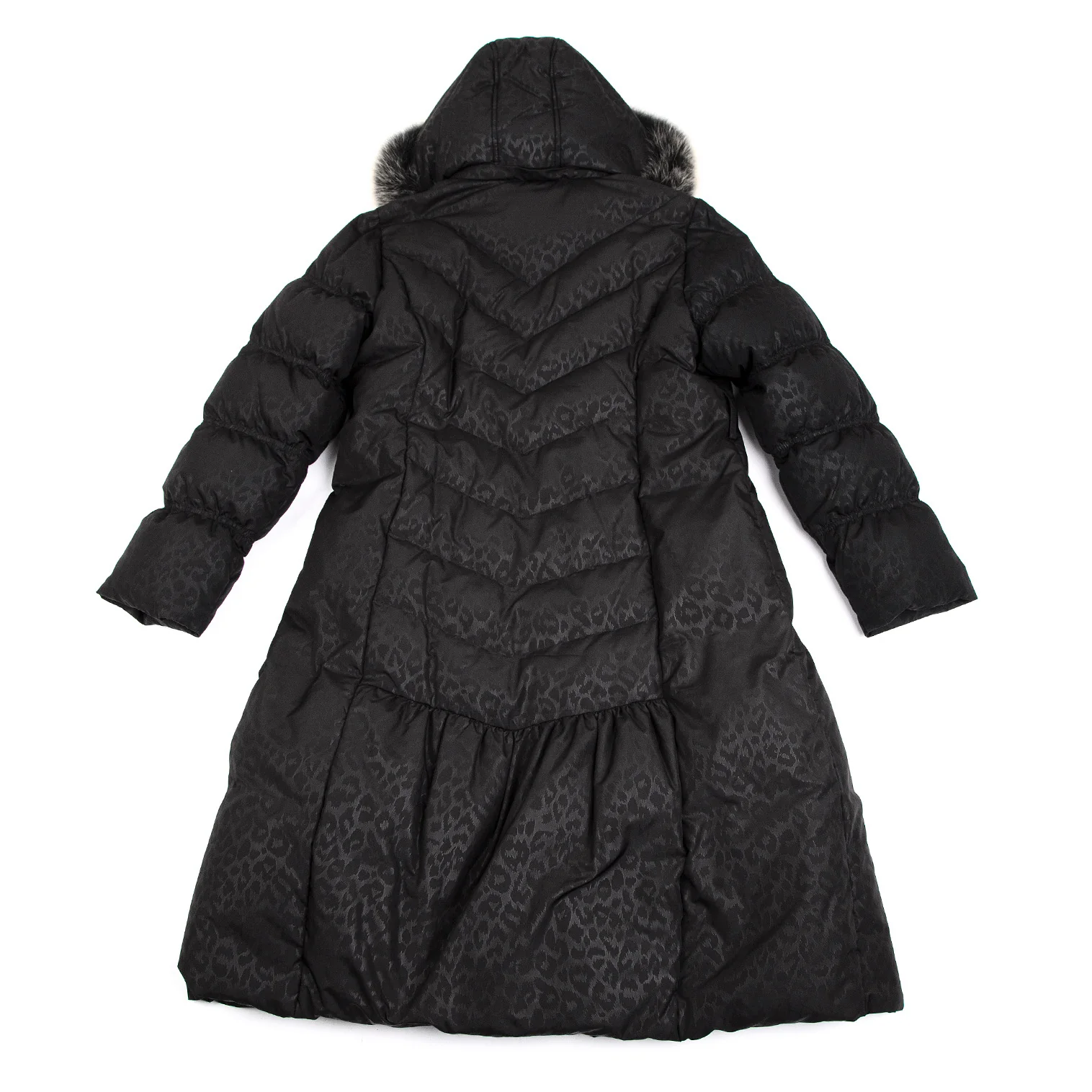 バルマンBALMAIN ブルーフォックスファー着脱レオパードプリントフードダウンコート 黒M