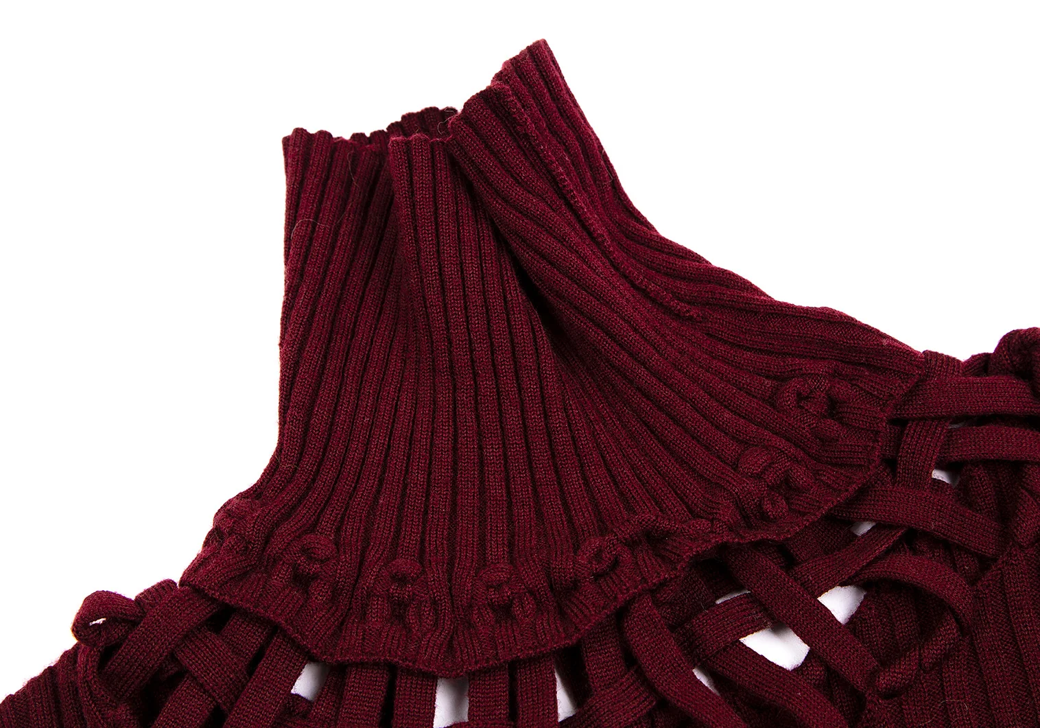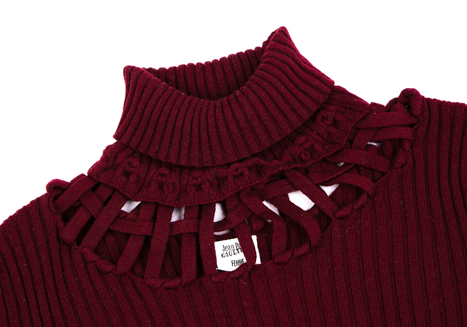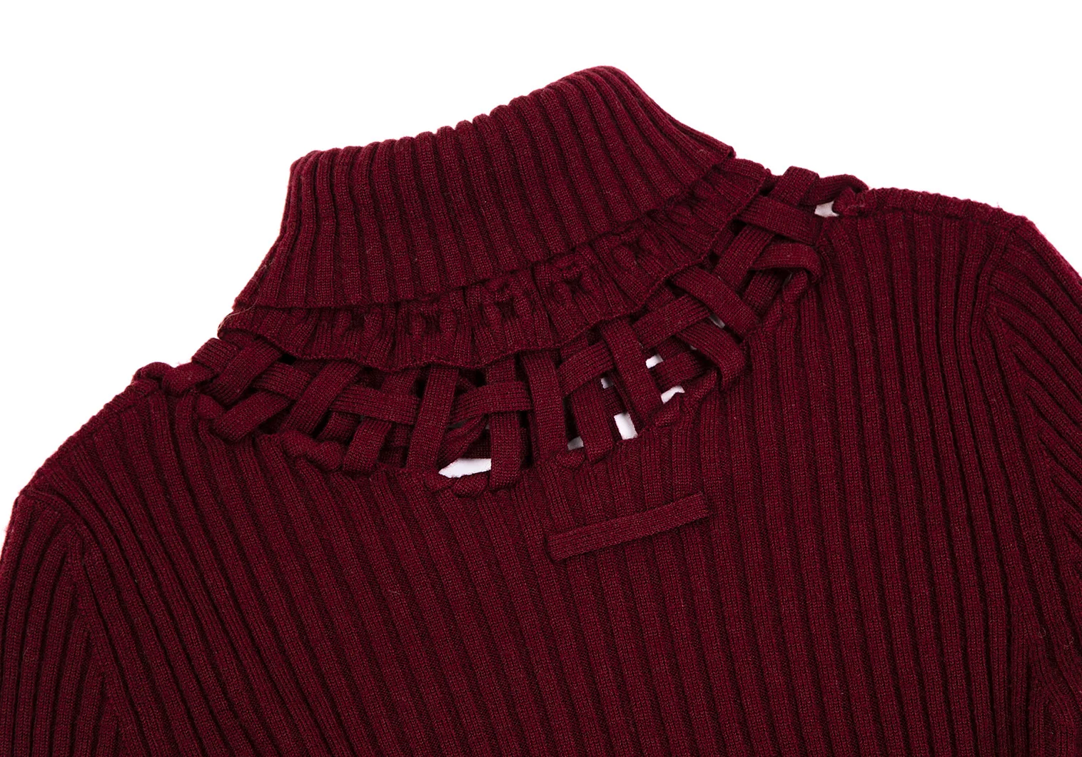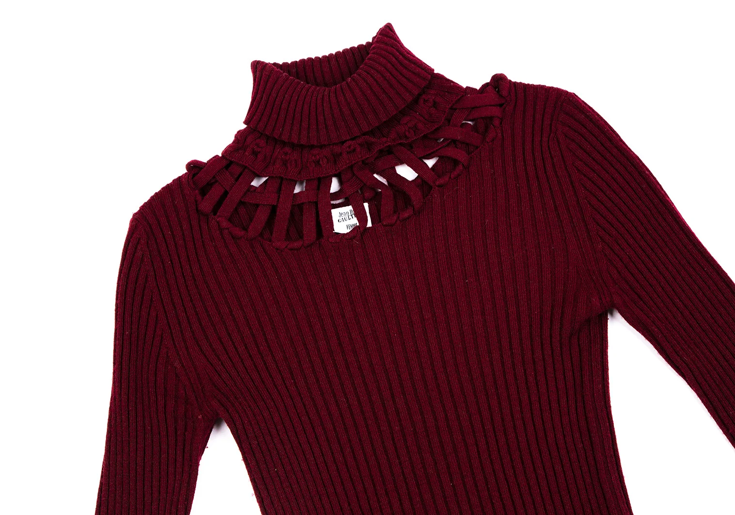 ジャンポールゴルチエ ファムJean Paul GAULTIER FEMME ウールタートルネック編み込みリブニットセーター ボルドー40