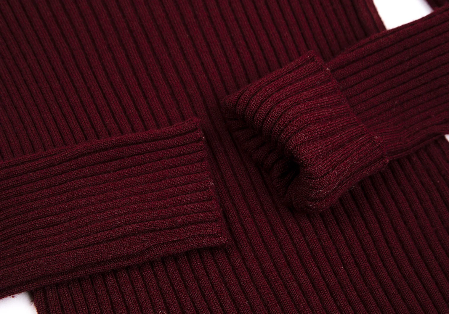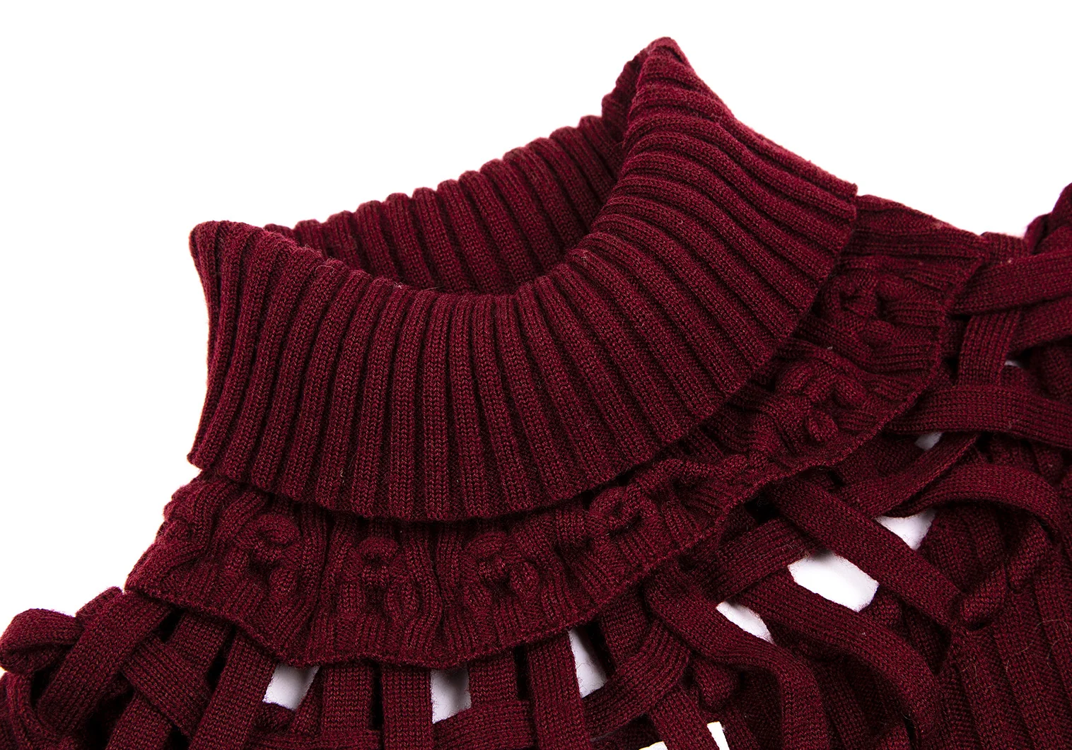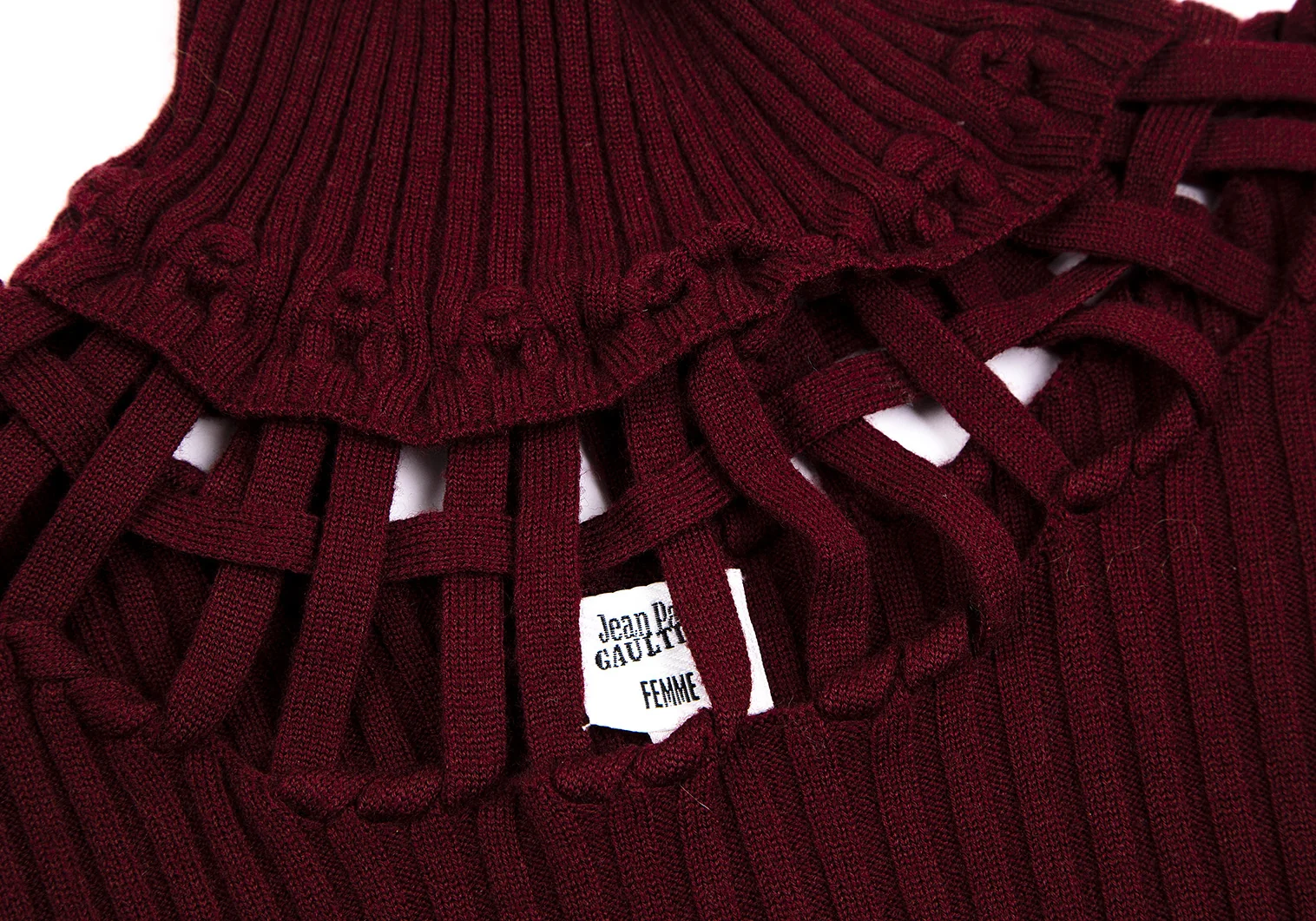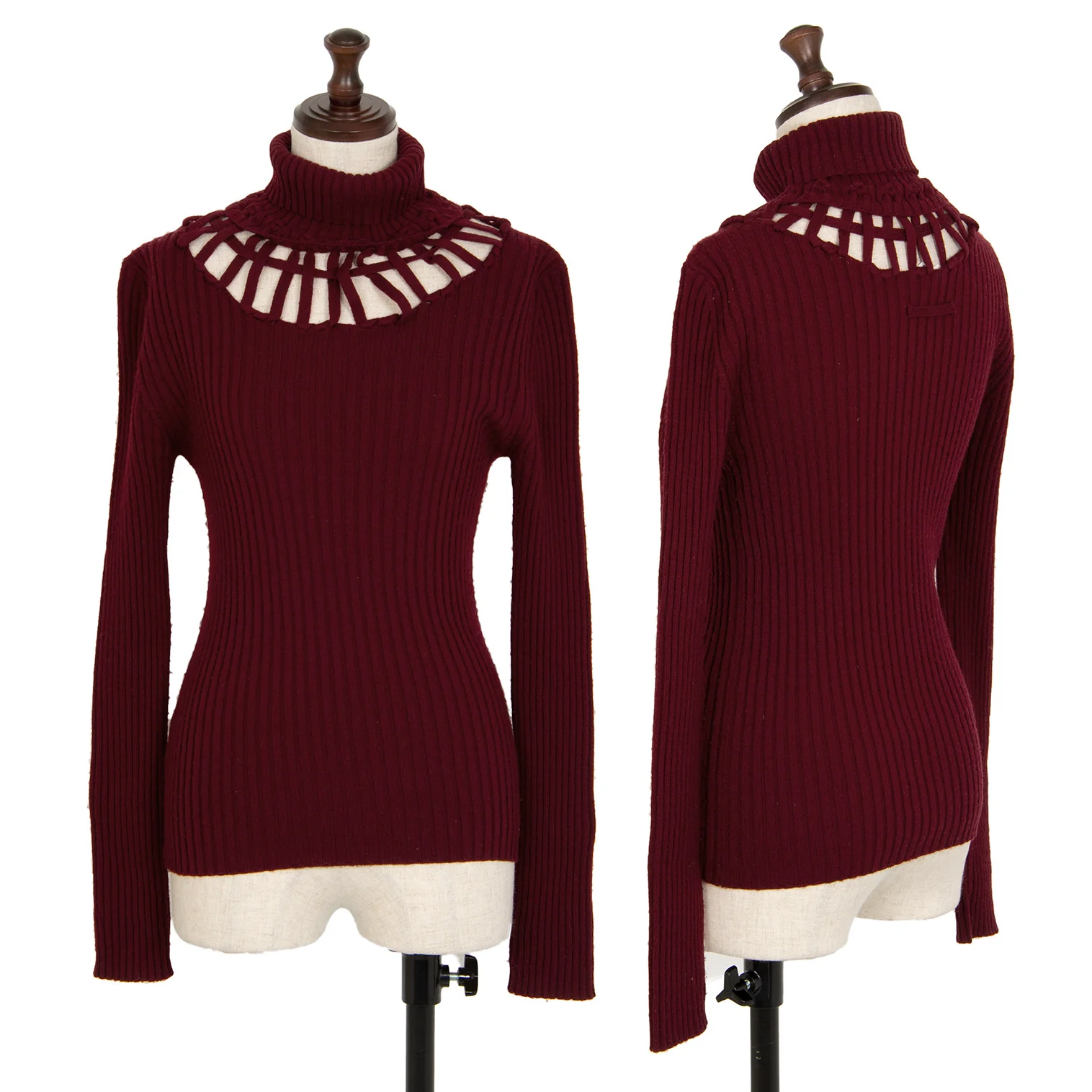 ジャンポールゴルチエ ファムJean Paul GAULTIER FEMME ウールタートルネック編み込みリブニットセーター ボルドー40