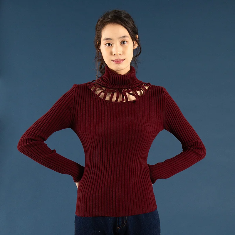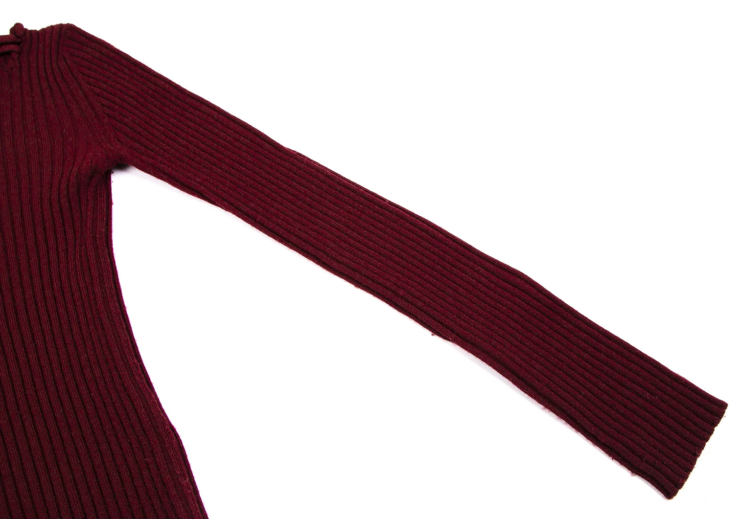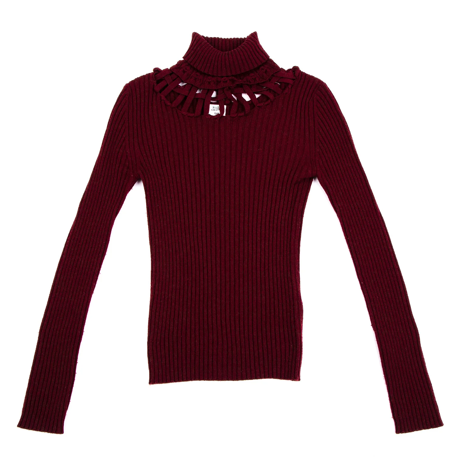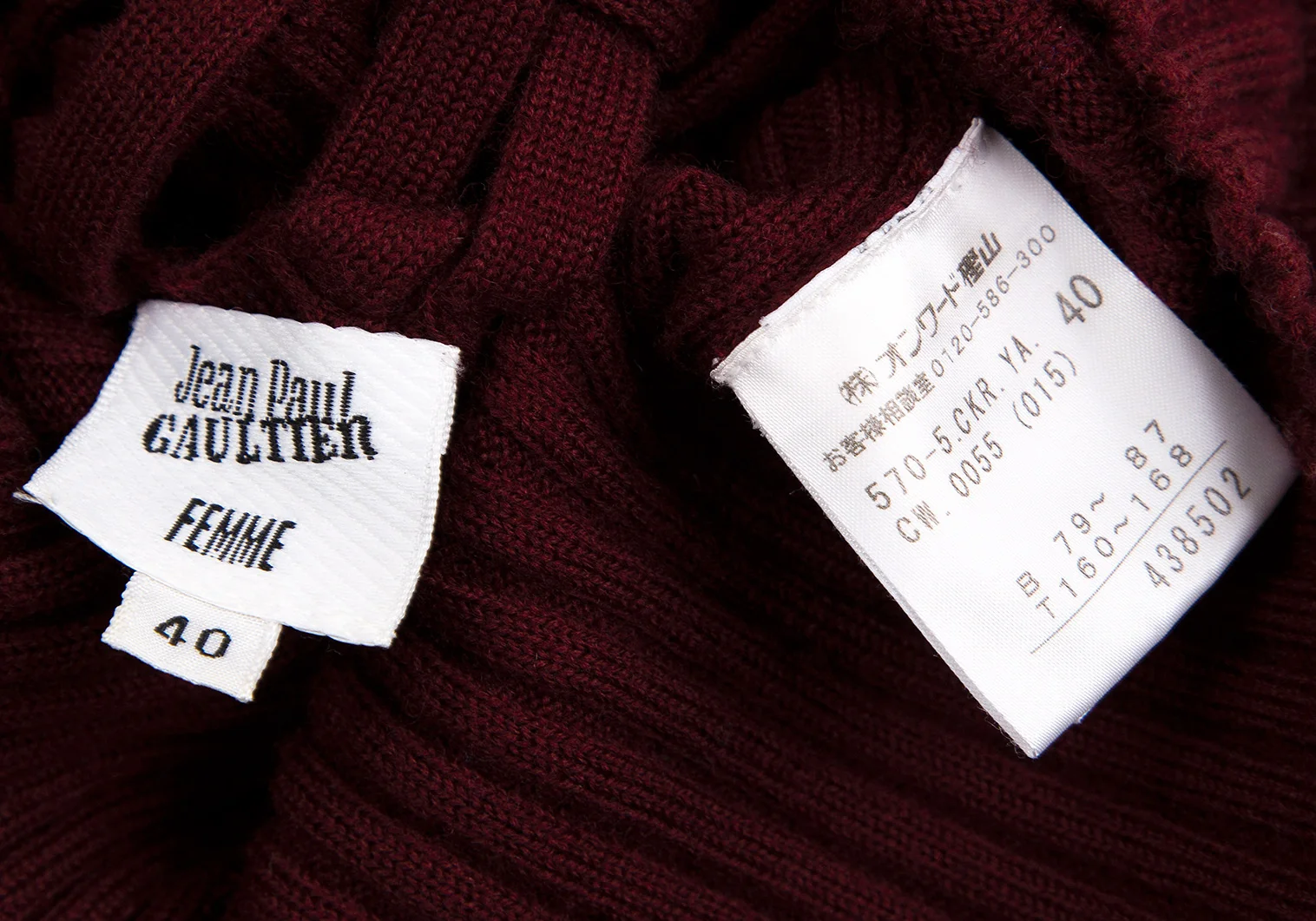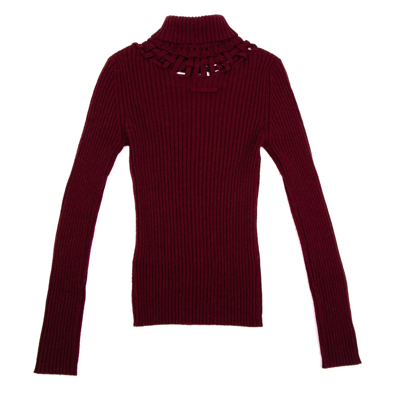 ジャンポールゴルチエ ファムJean Paul GAULTIER FEMME ウールタートルネック編み込みリブニットセーター ボルドー40