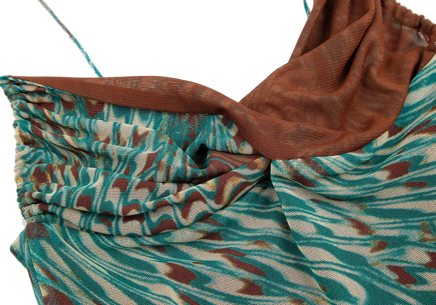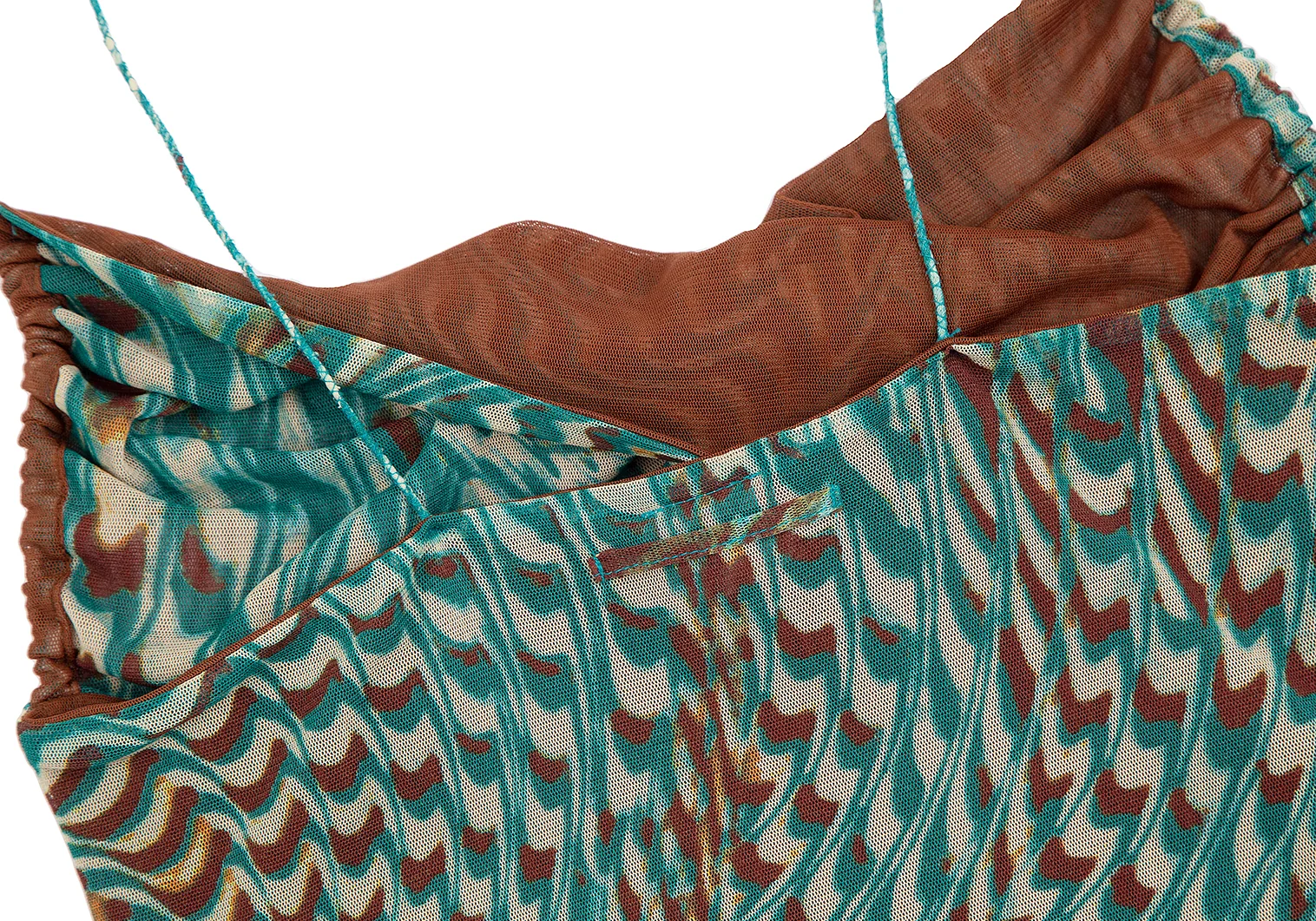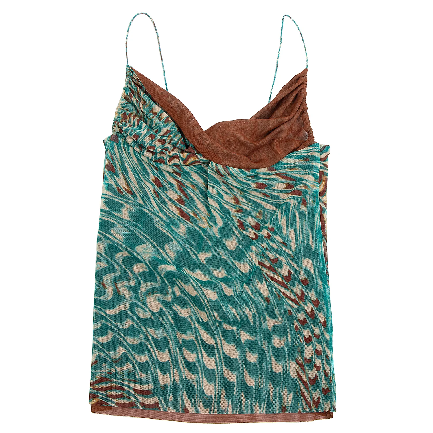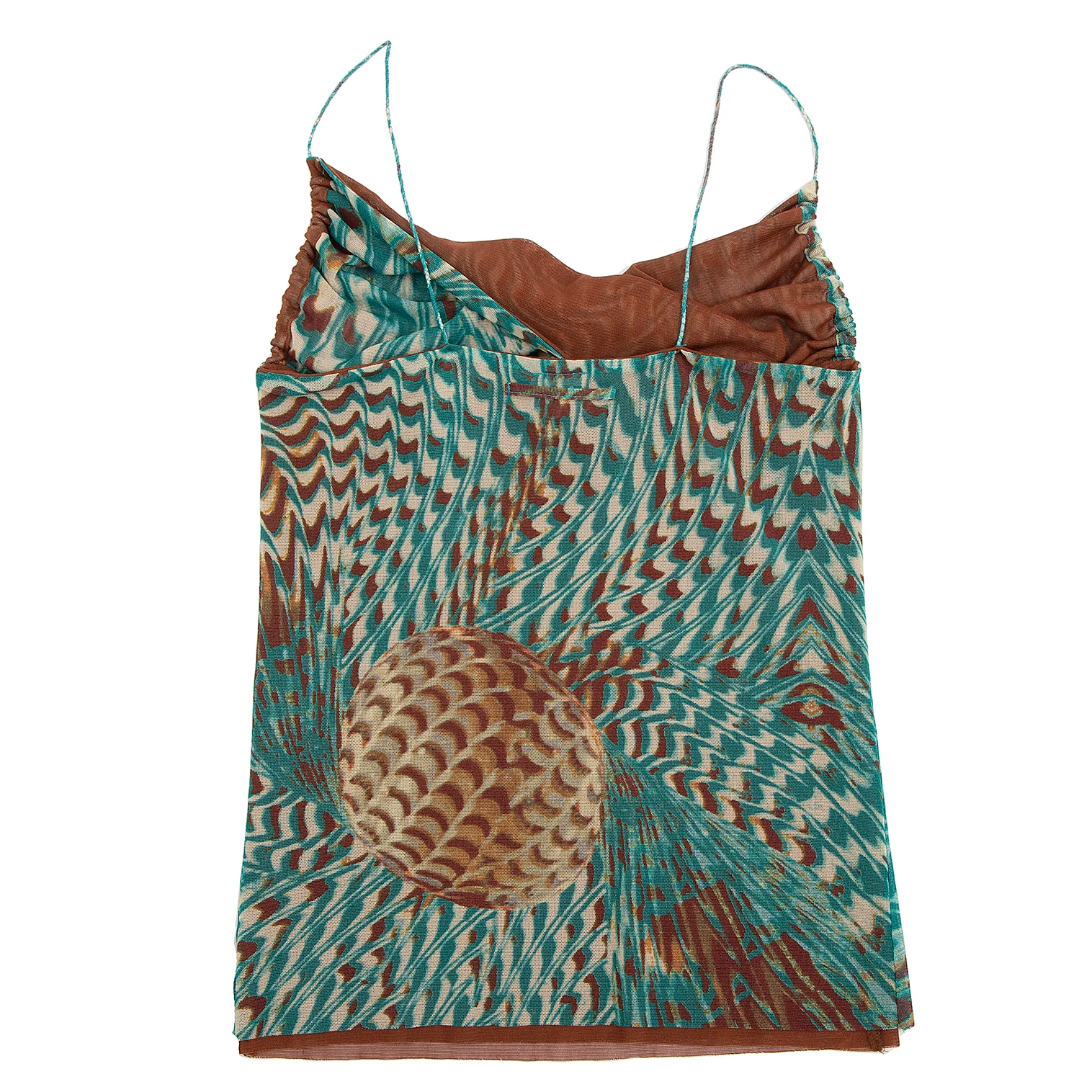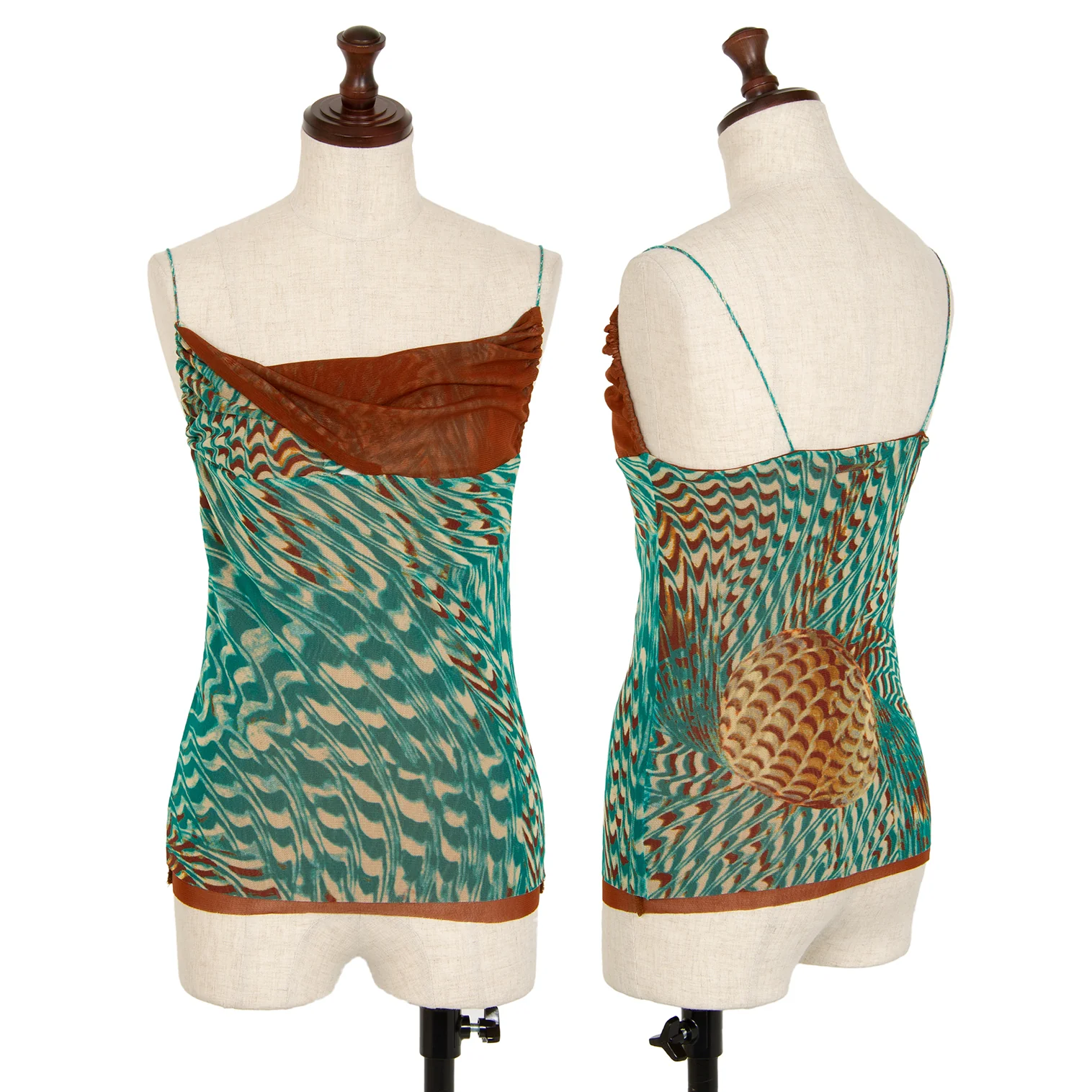 ジャンポールゴルチエ ファムJean Paul GAULTIER FEMME グラフィックプリントレイヤードパワーネットキャミソール 茶緑40