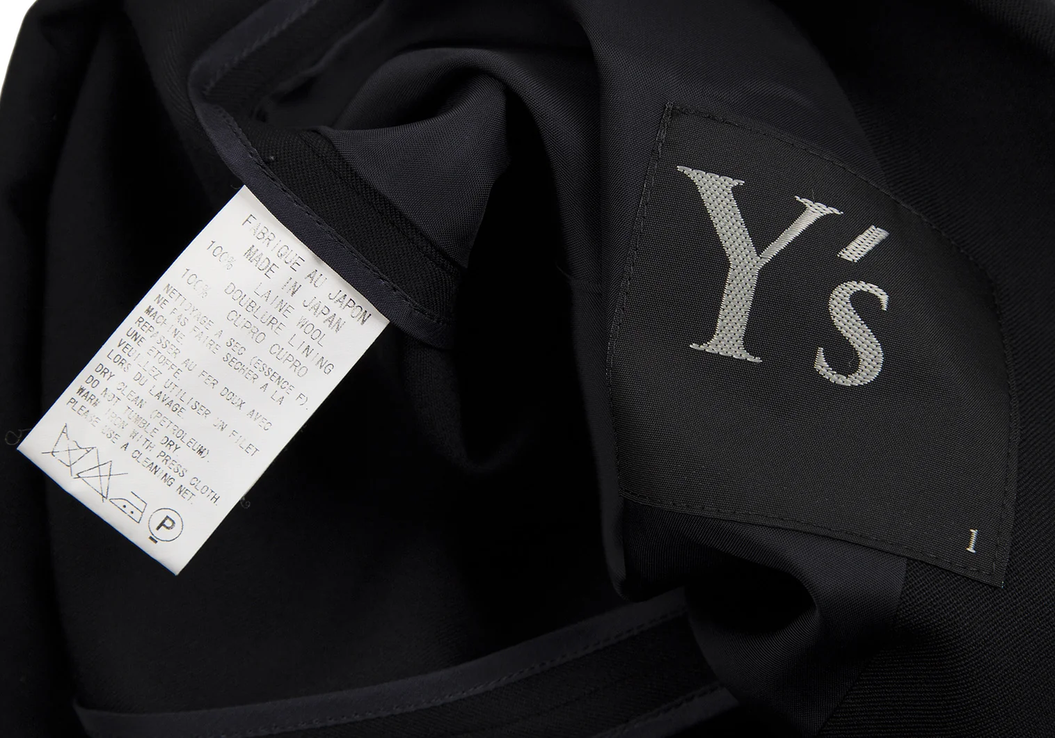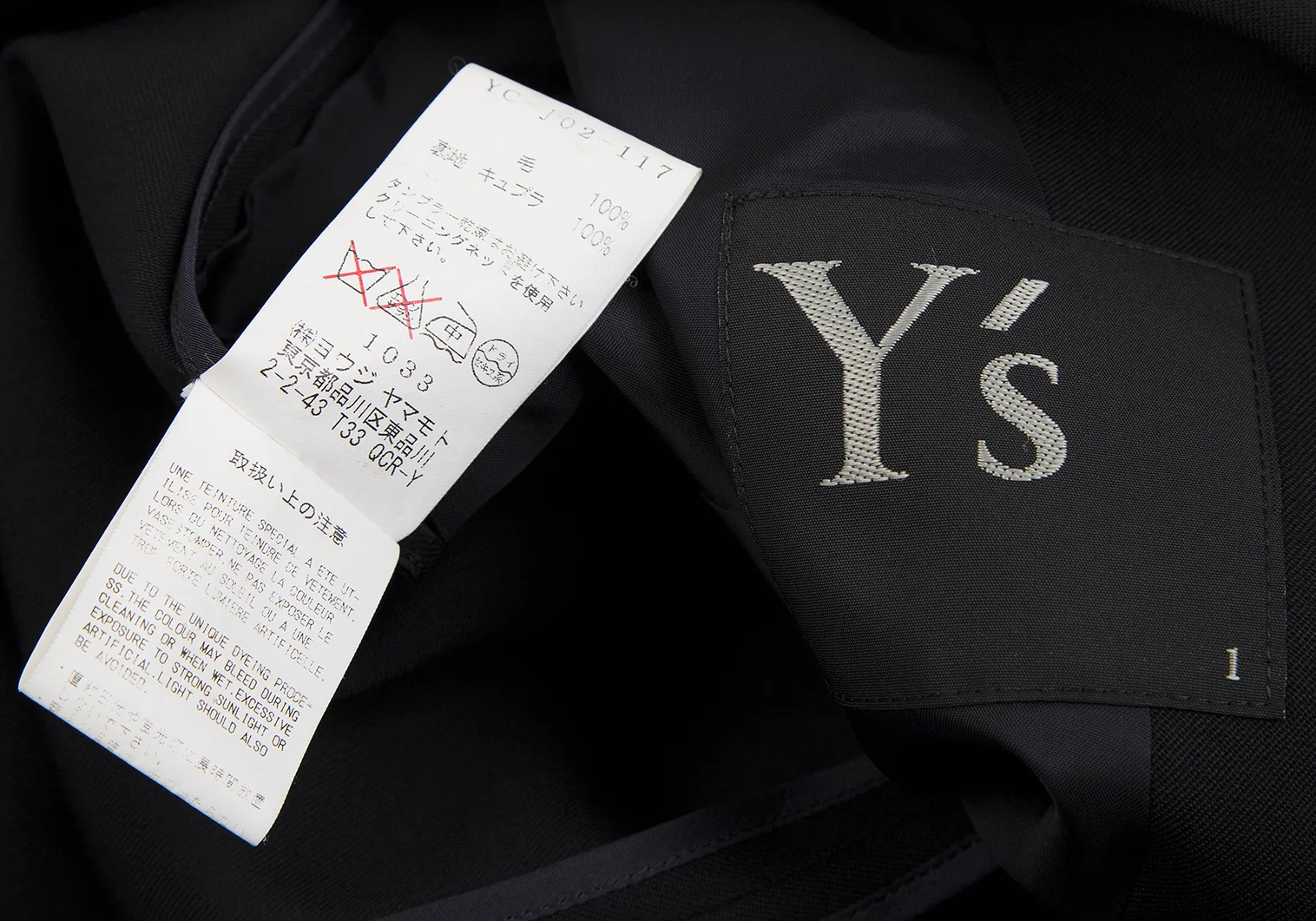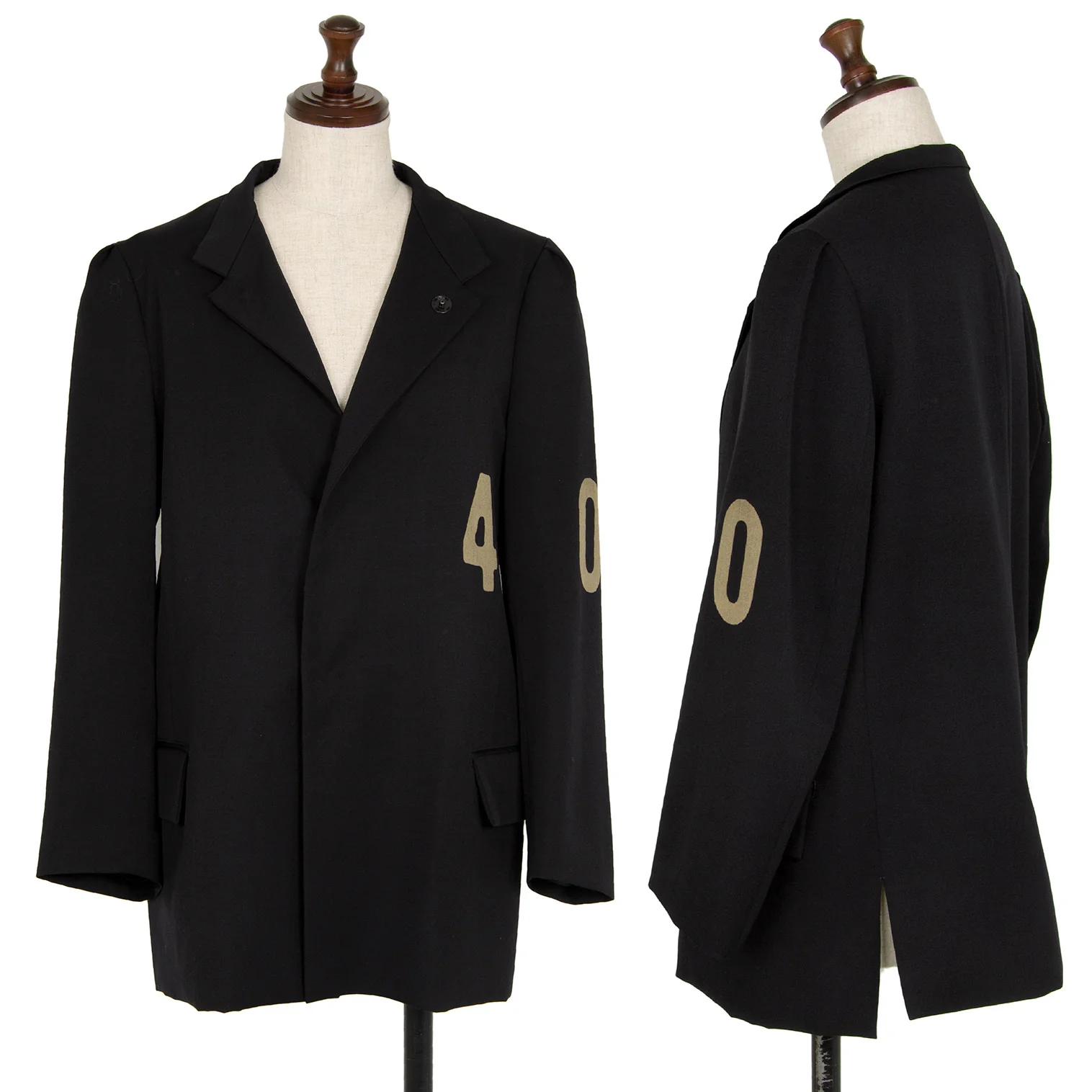 ワイズY's ウールギャバナンバリング抜染スナップボタンジャケット 黒1