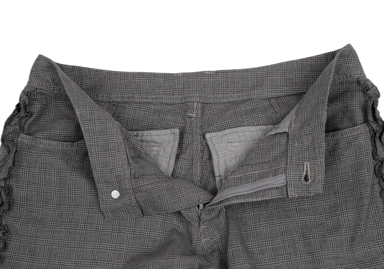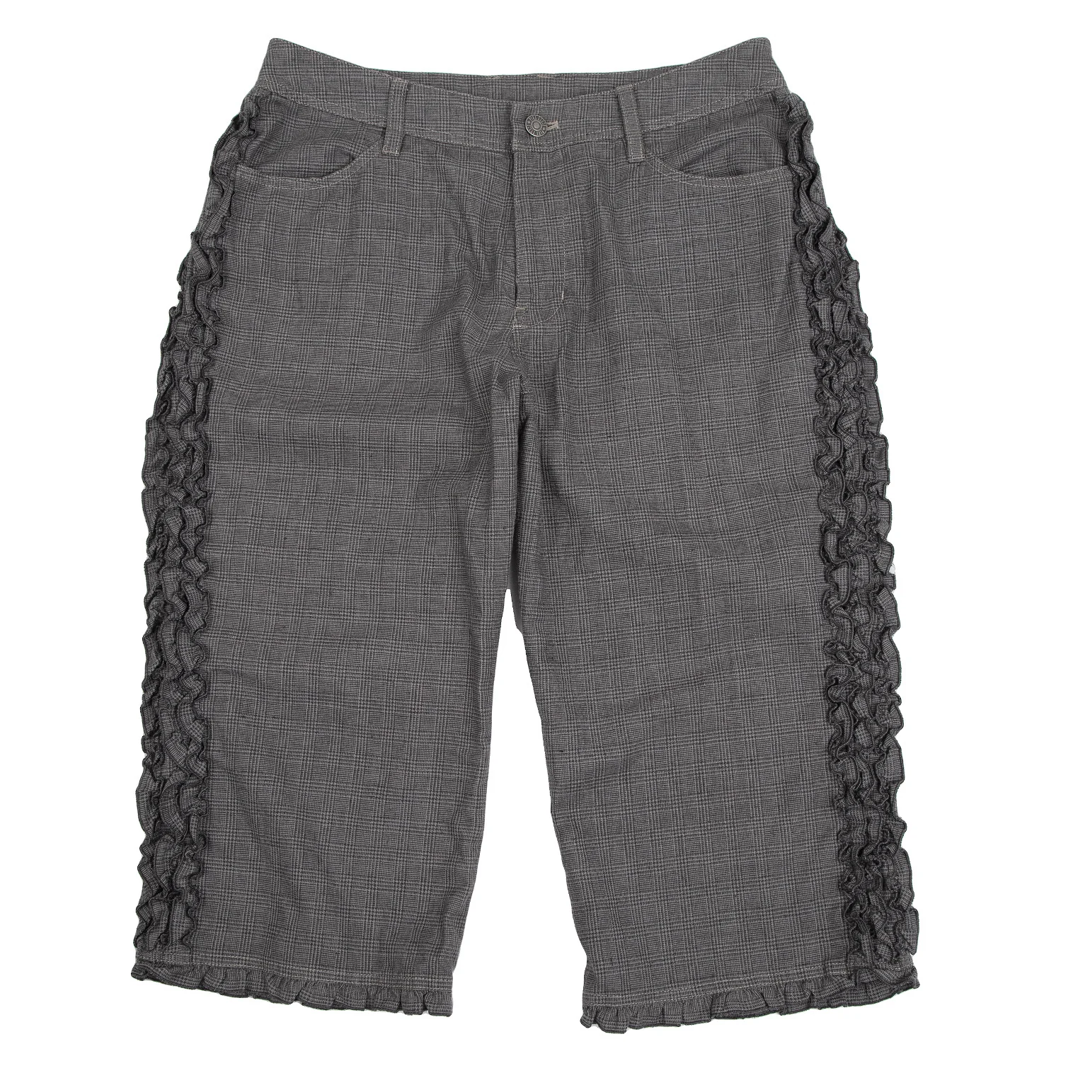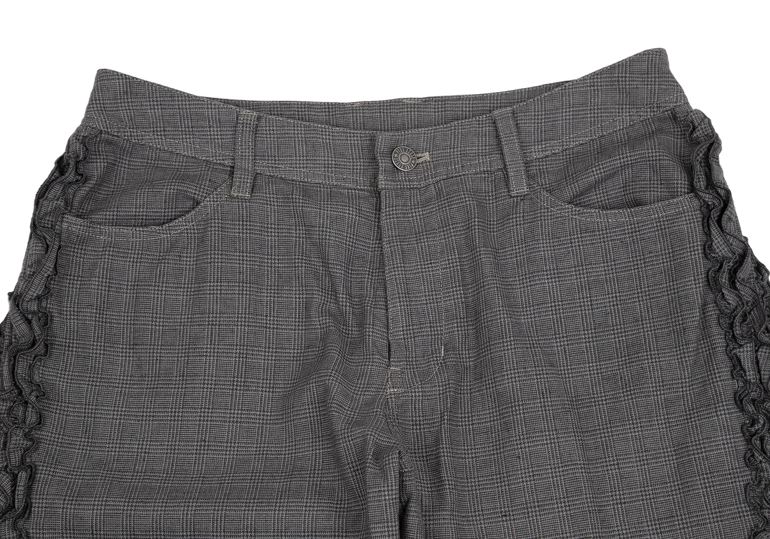 ピンクハウスPINK HOUSE サイドフリル切替グレンチェッククロップドパンツ グレーM