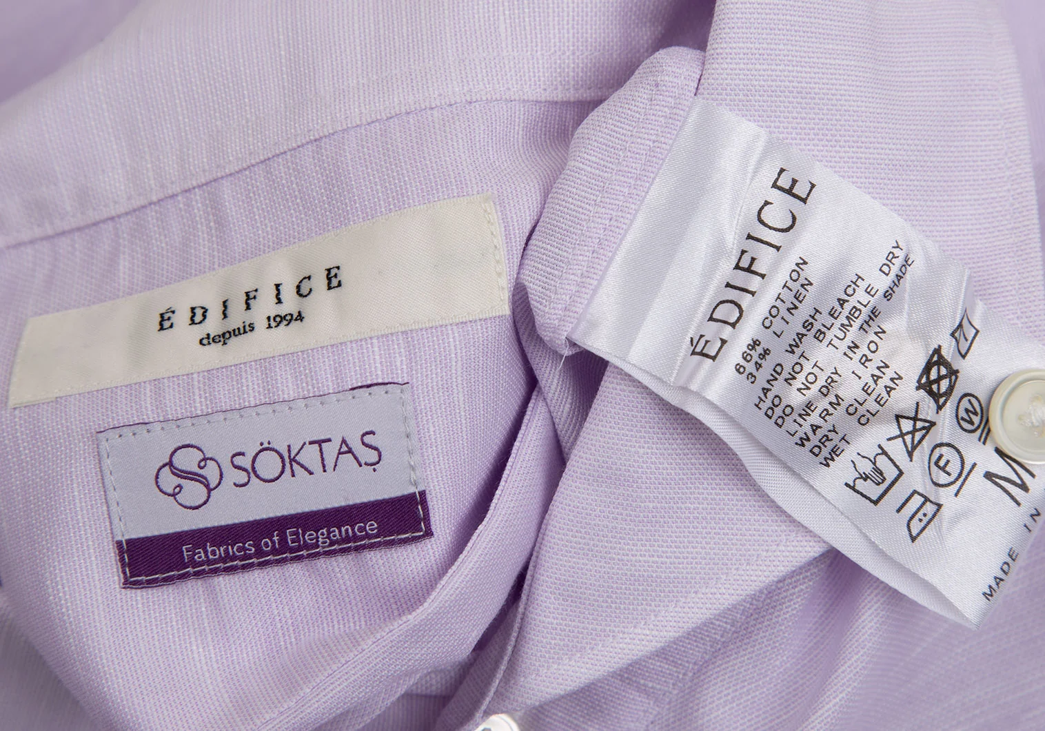 エディフィスEDIFICE SOKTASコットンリネン七分袖カッタウェイシャツ パープルM