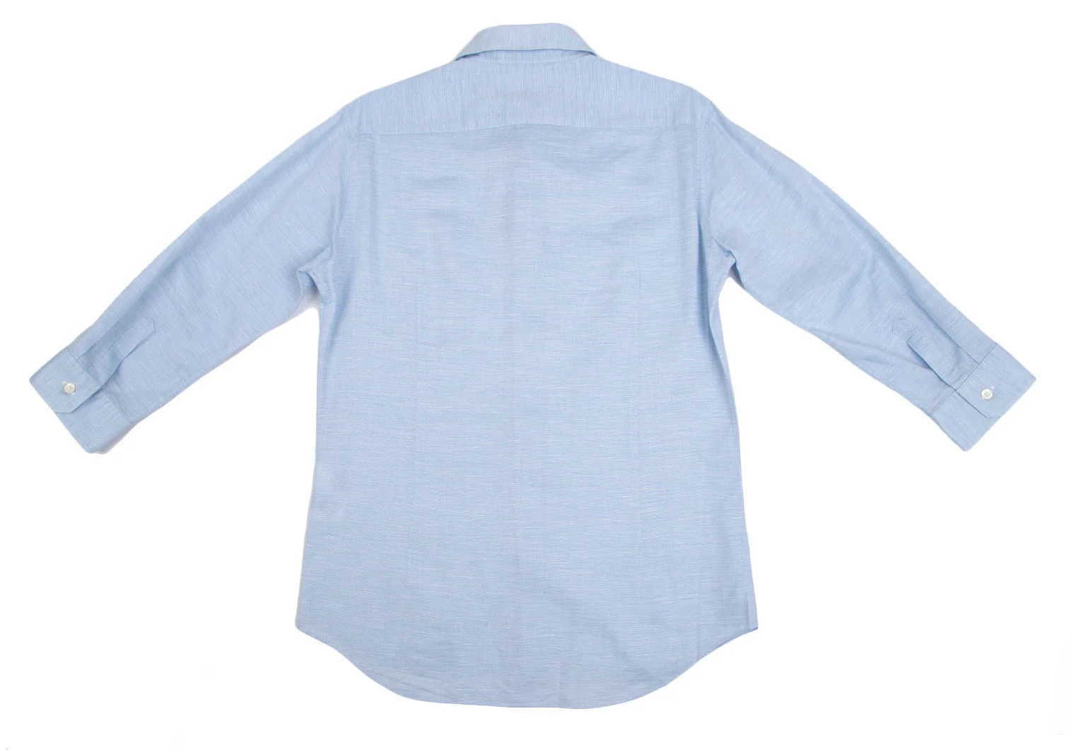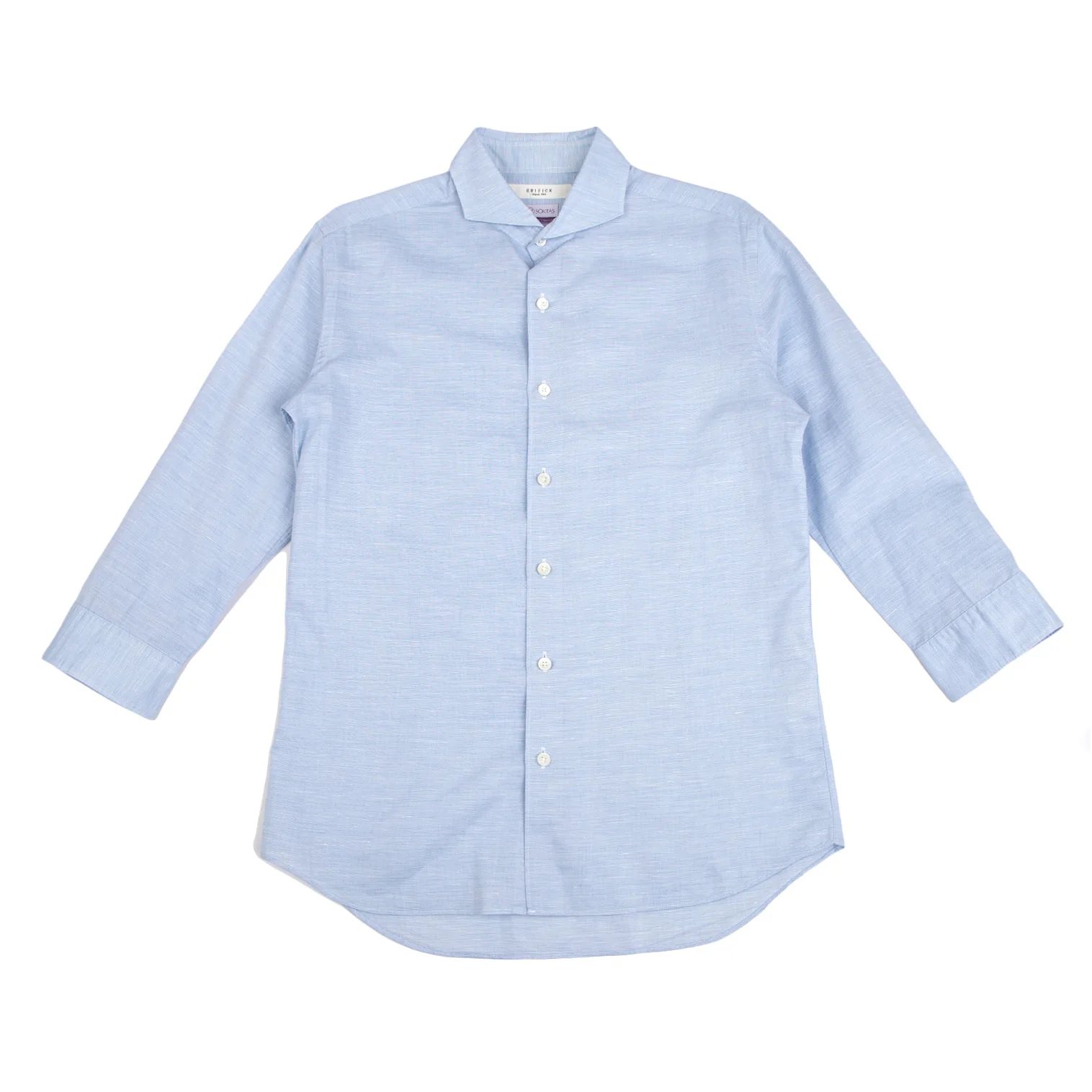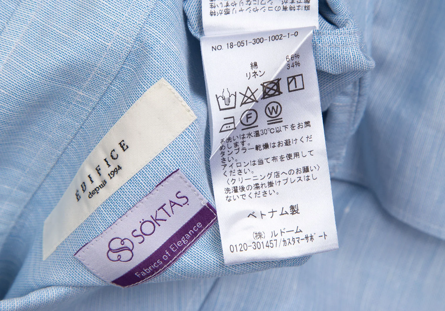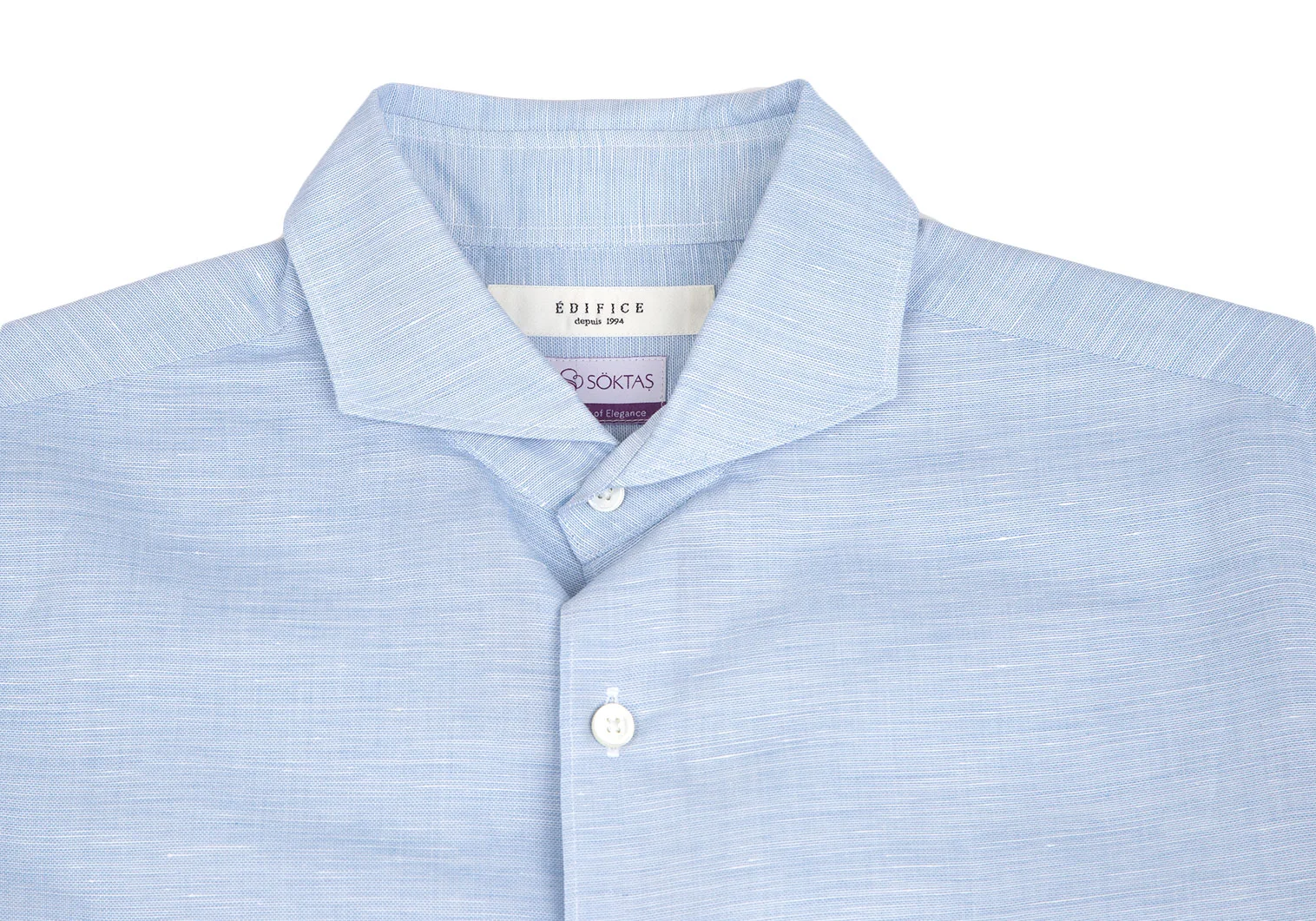 エディフィスEDIFICE SOKTASコットンリネン七分袖カッタウェイシャツ 水色M