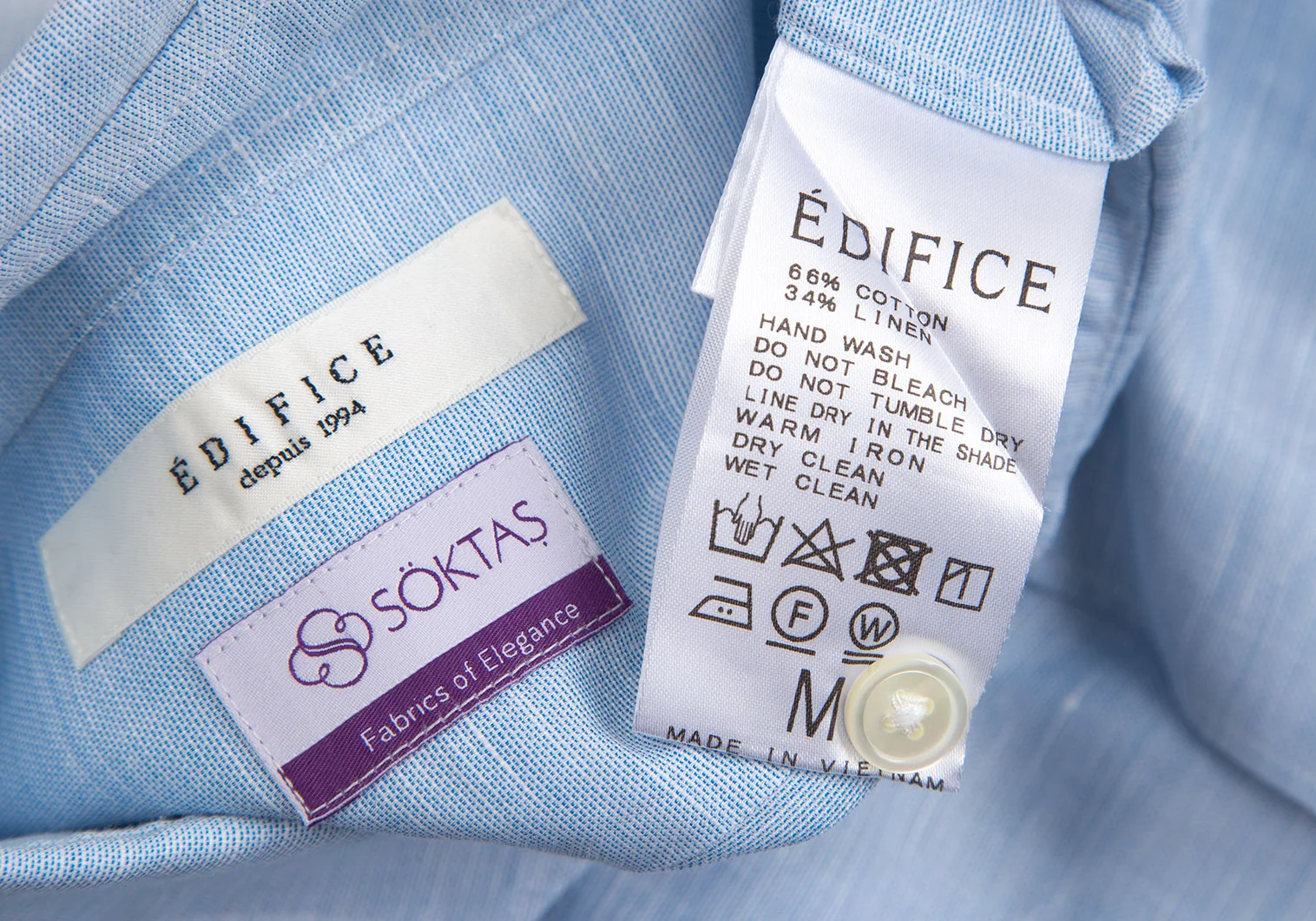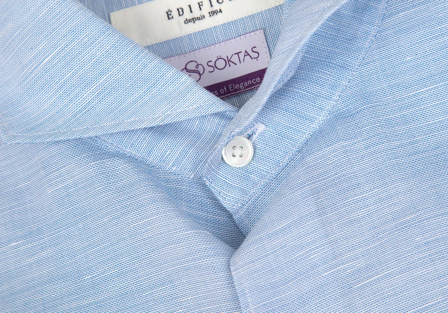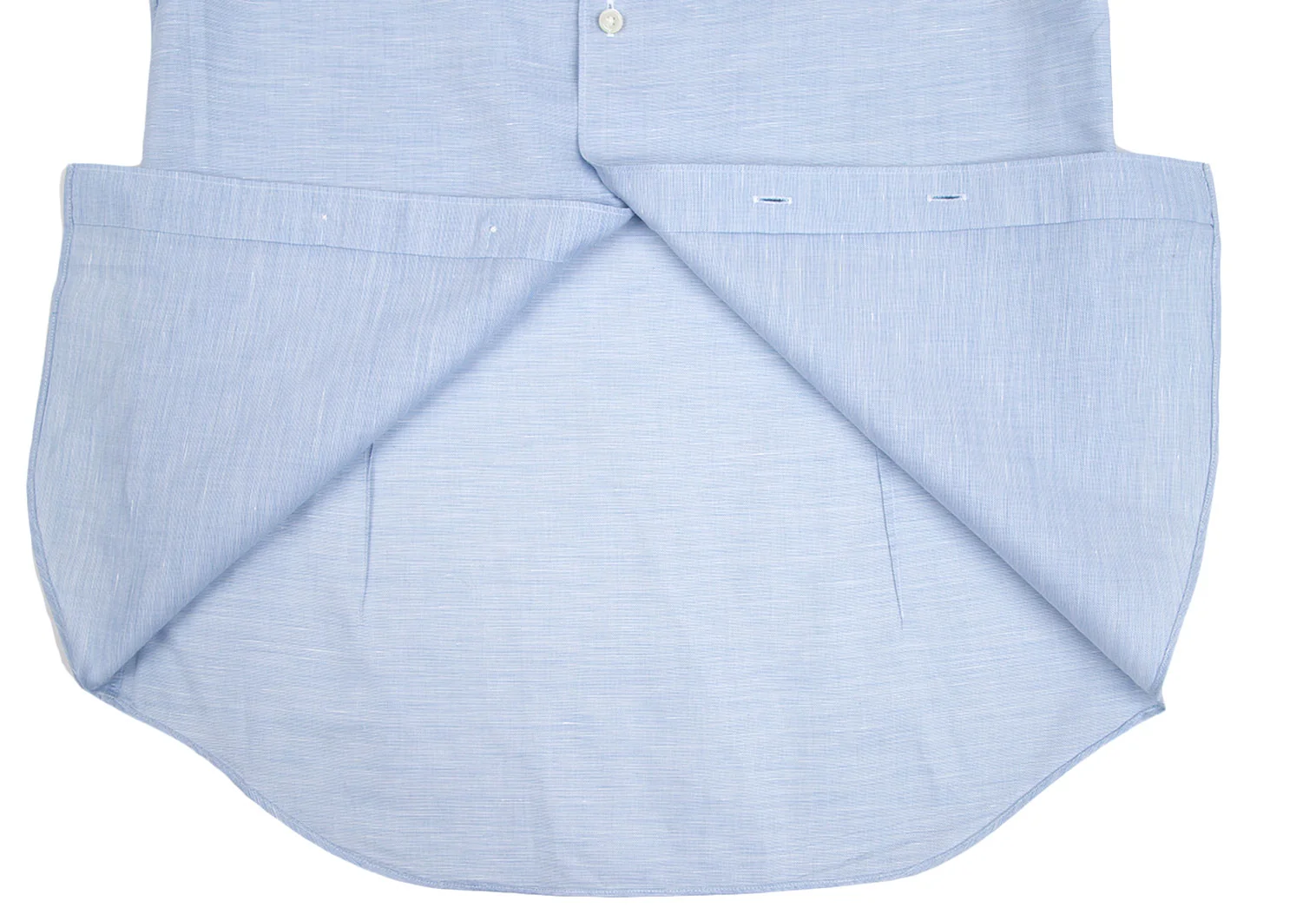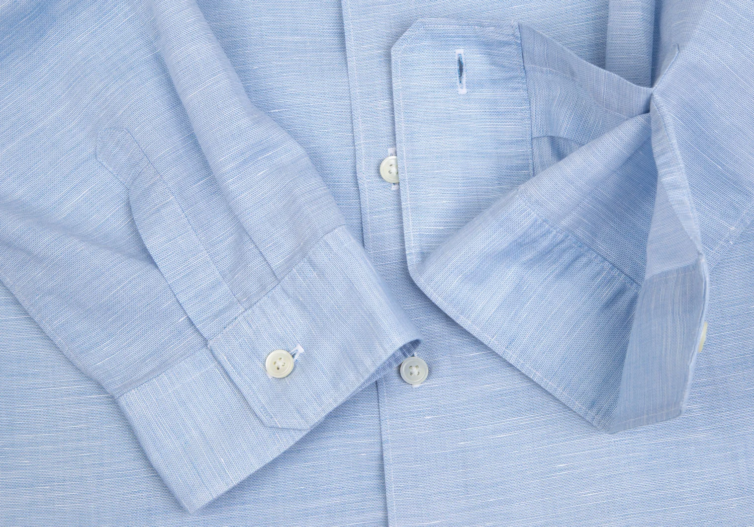 エディフィスEDIFICE SOKTASコットンリネン七分袖カッタウェイシャツ 水色M