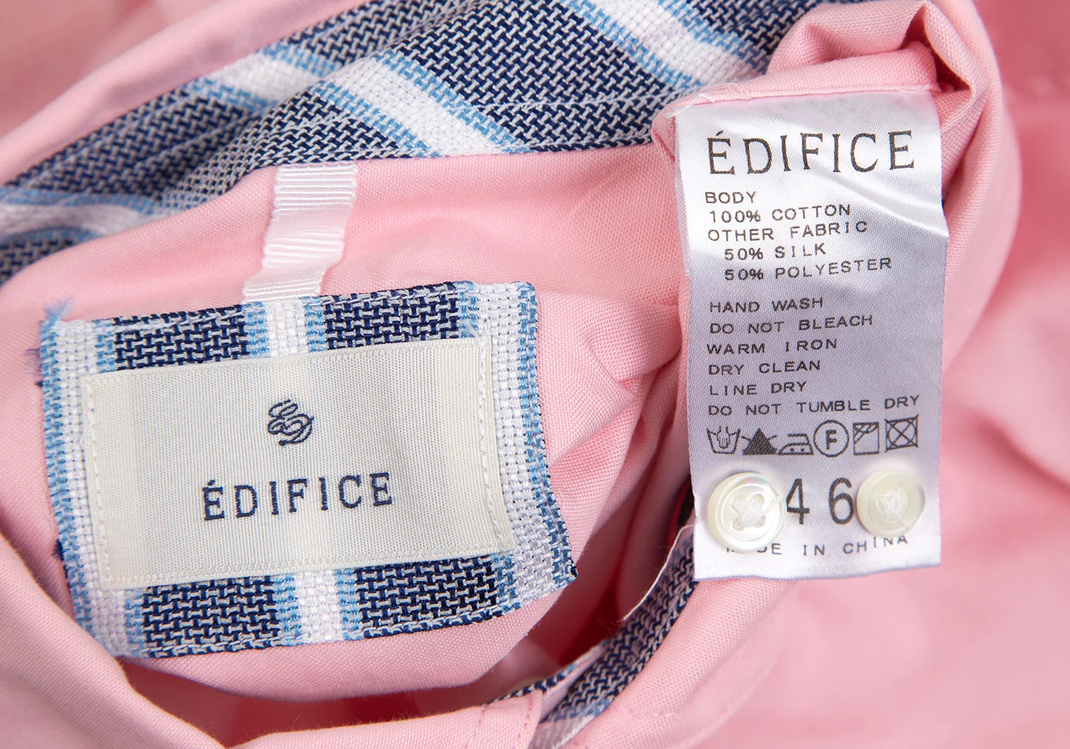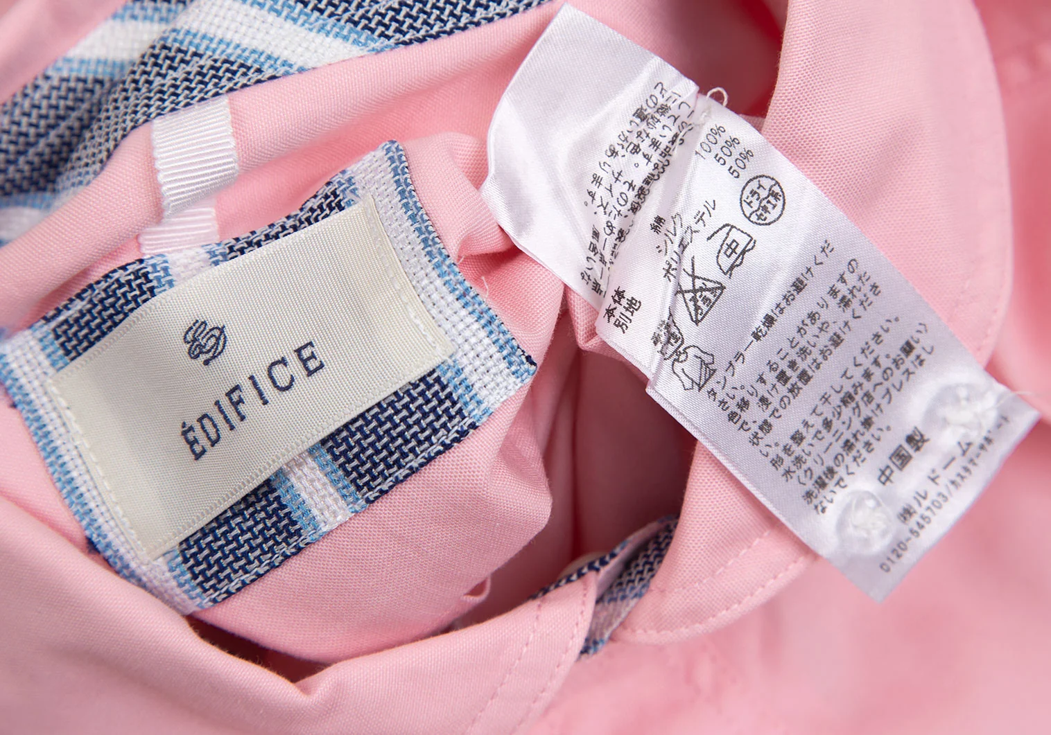 エディフィスEDIFICE コットンショールカラー七分袖シャツ ピンク46