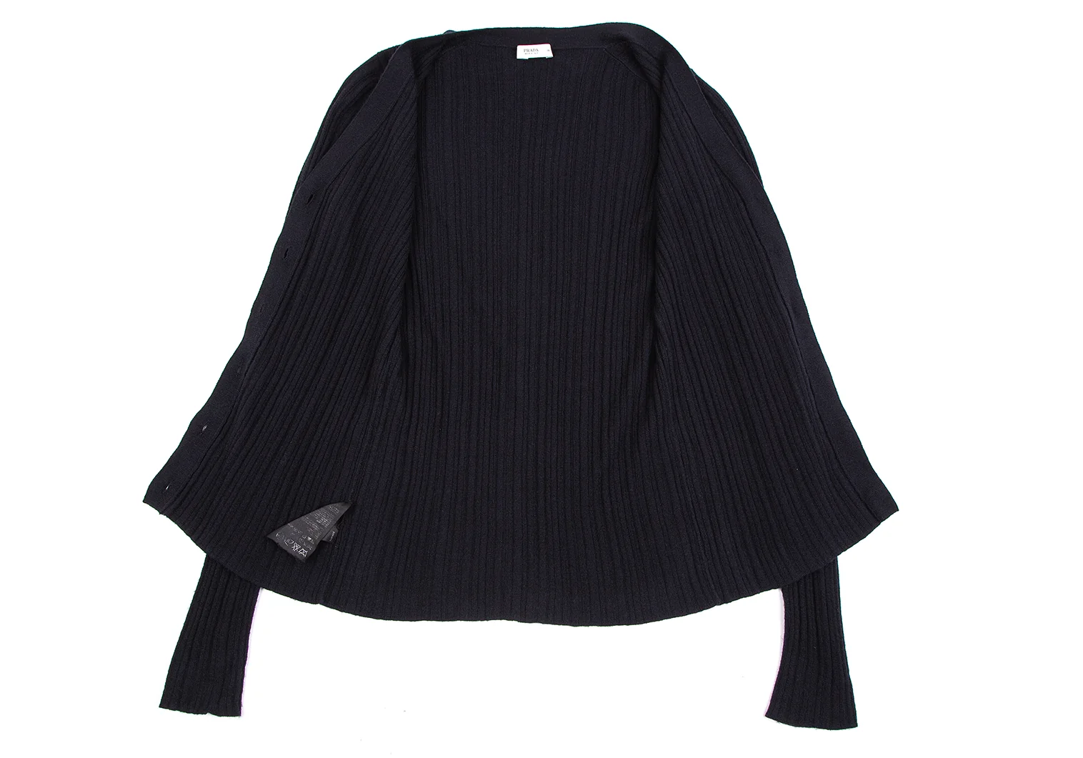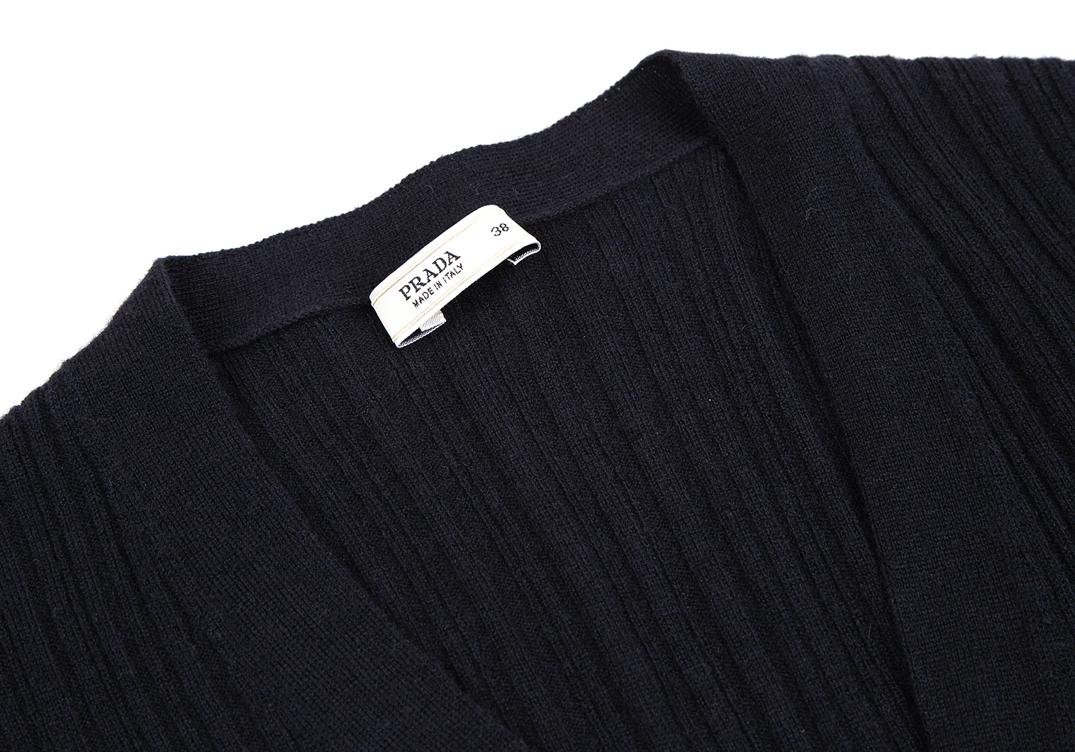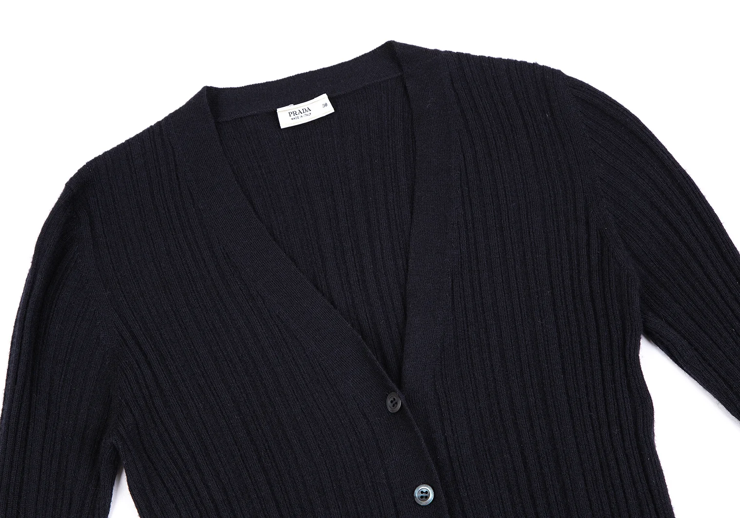 プラダPRADA ウールカシミヤリブニットカーディガン 紺38