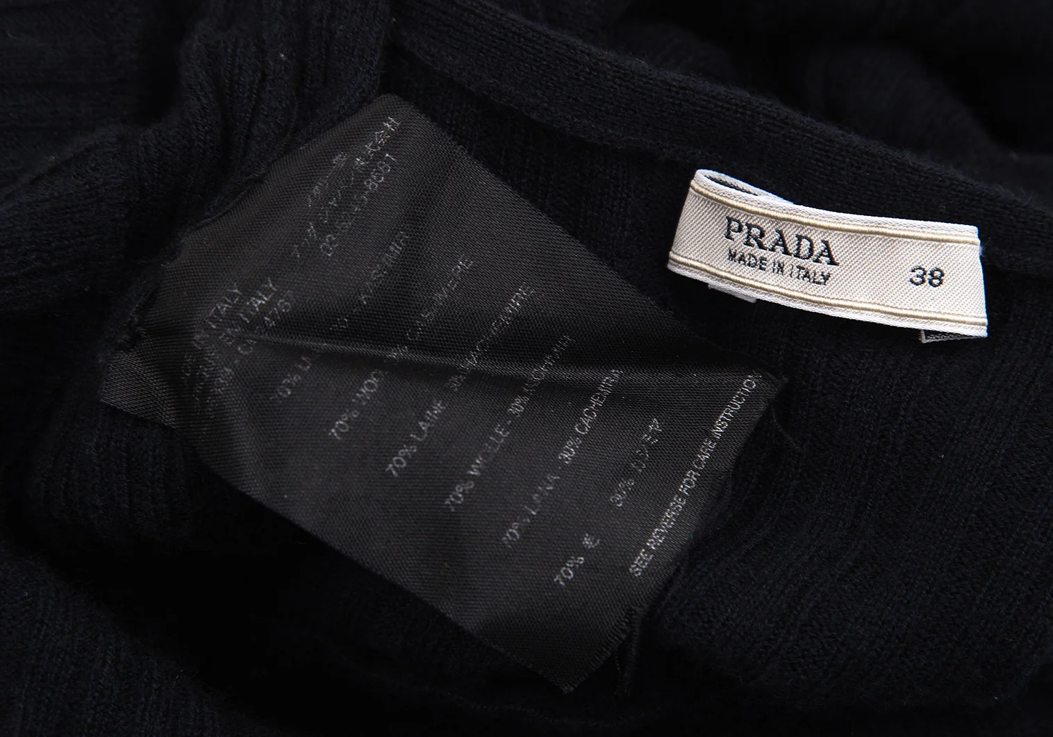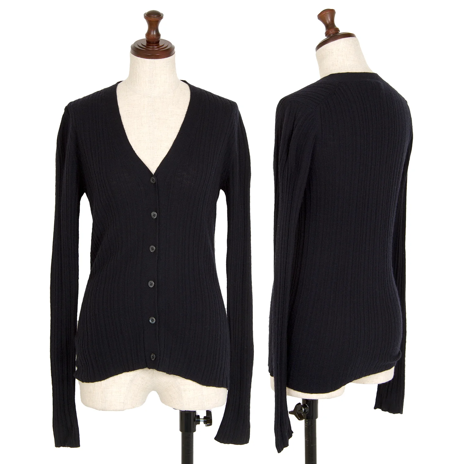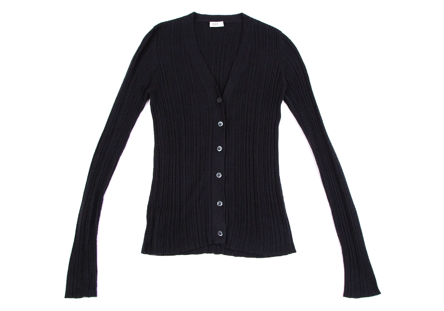 プラダPRADA ウールカシミヤリブニットカーディガン 紺38