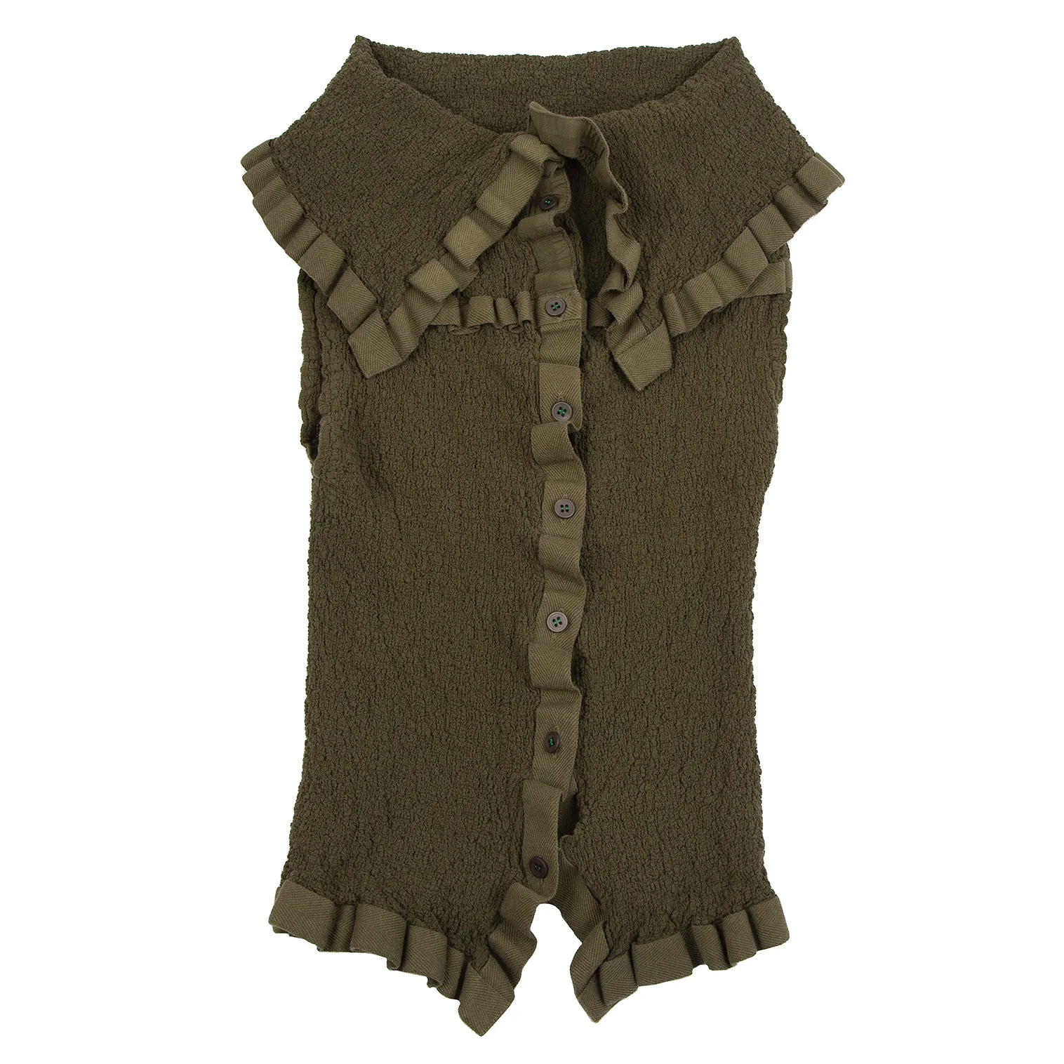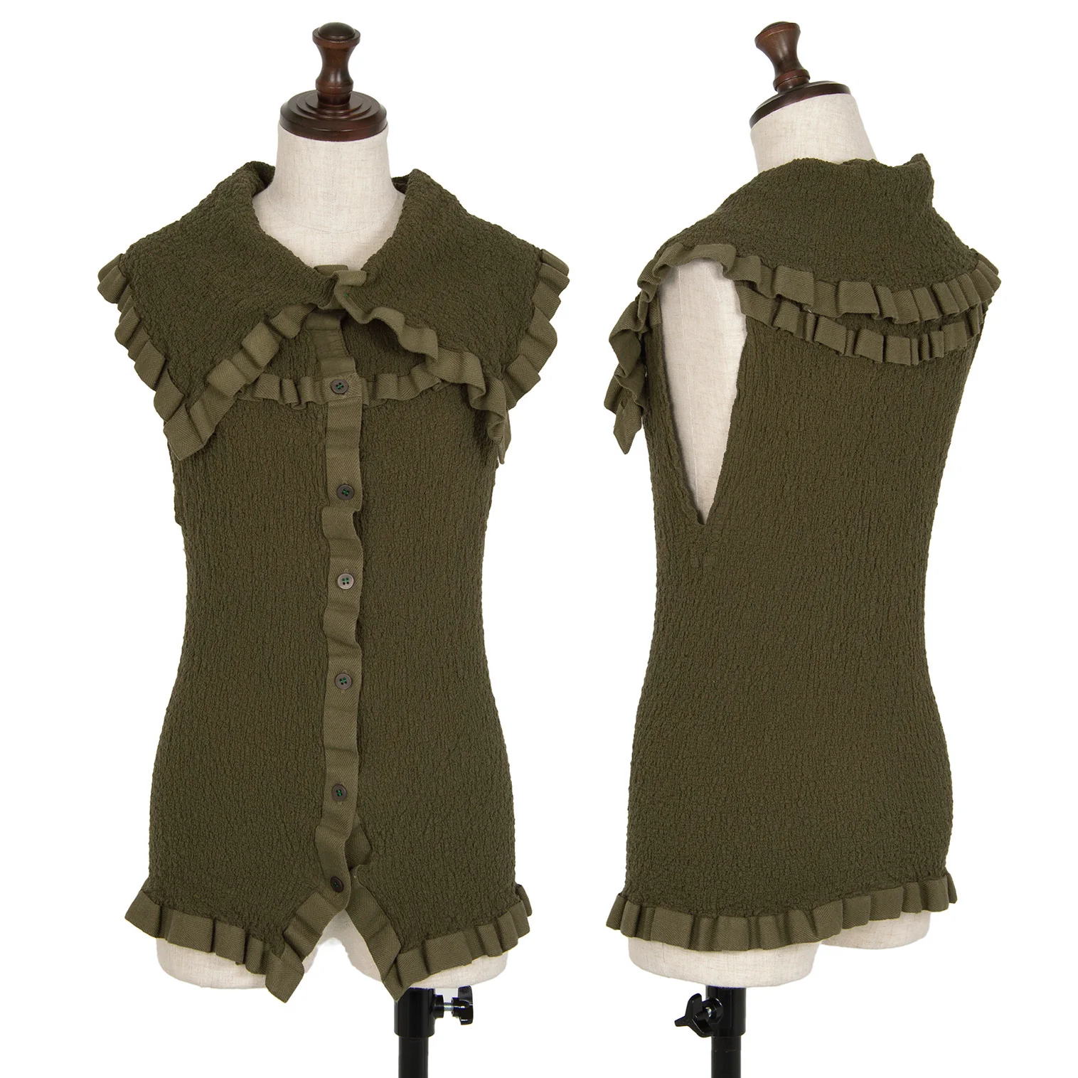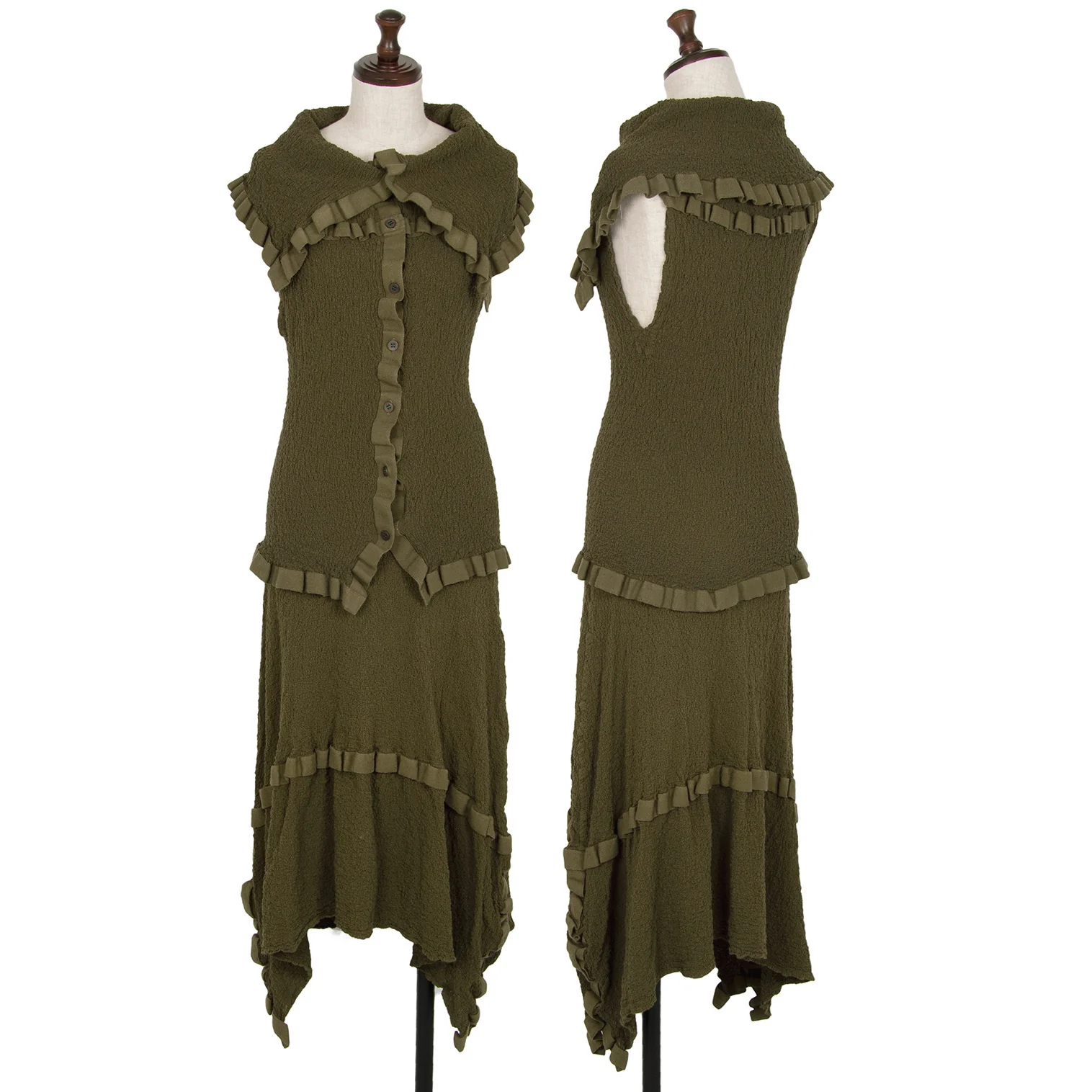 イッセイミヤケ ミーISSEY MIYAKE me テープトリムカリフラワーノースリーブセットアップ カーキF