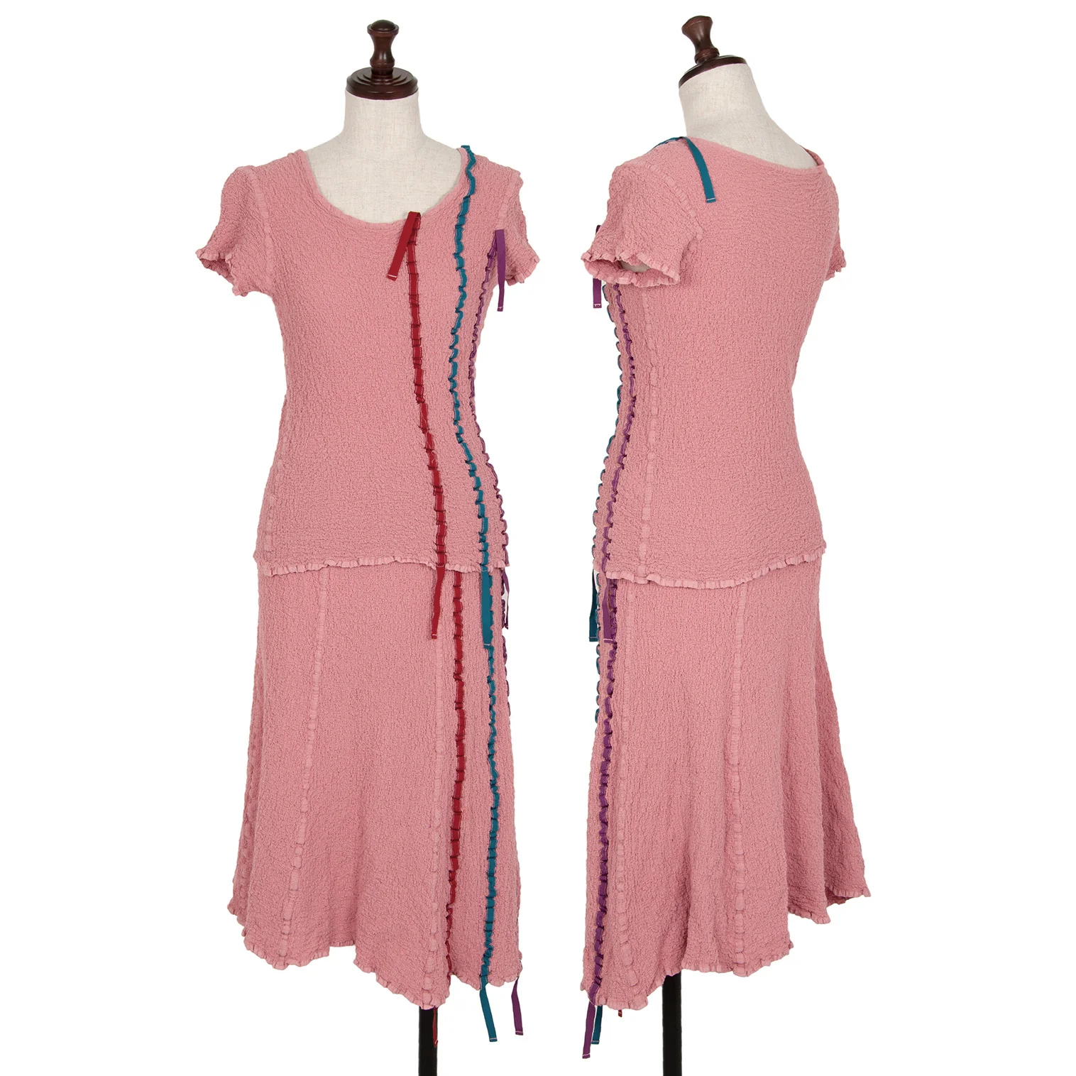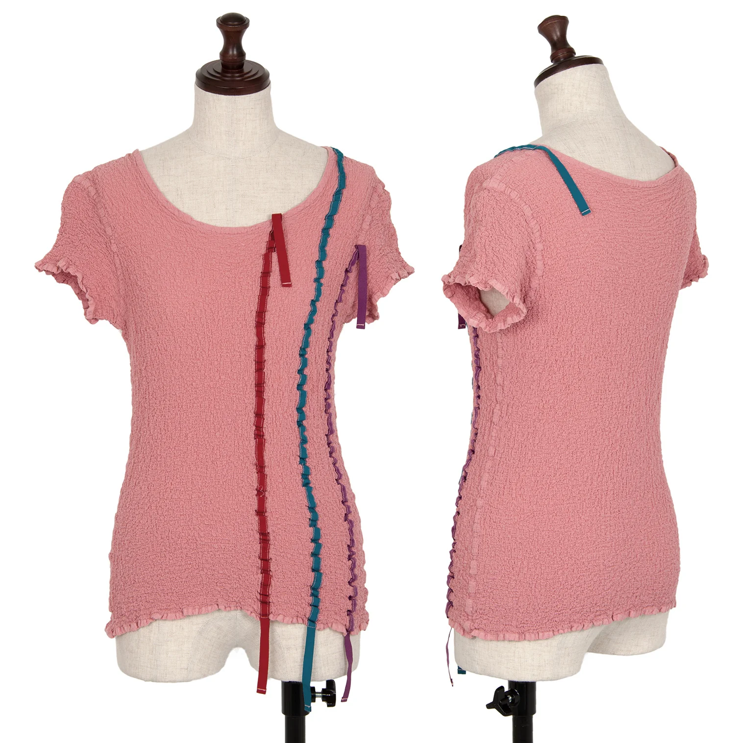 イッセイミヤケ ミーISSEY MIYAKE me テープ貼付けデザインカリフラワーノースリーブセットアップ ピンクF