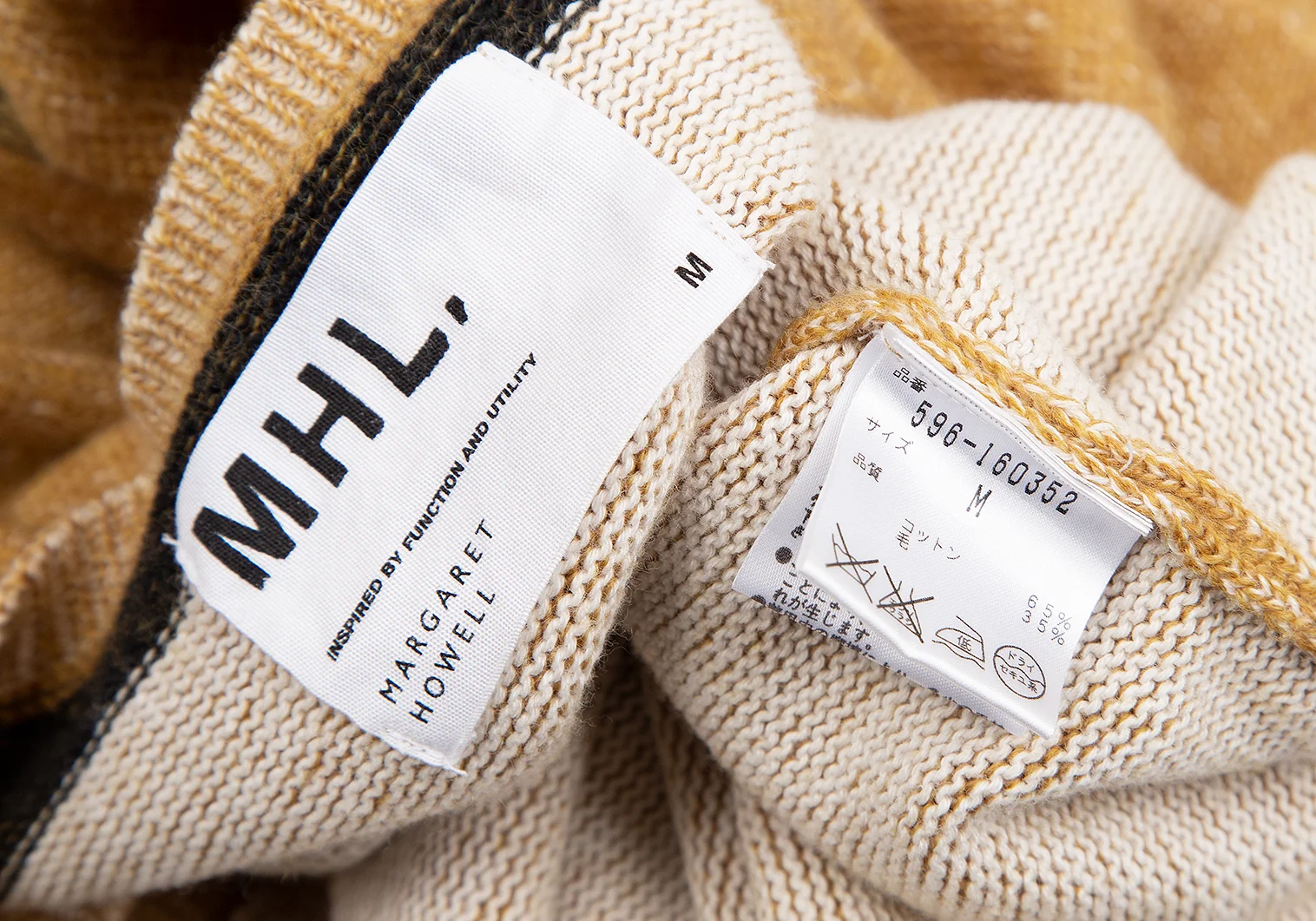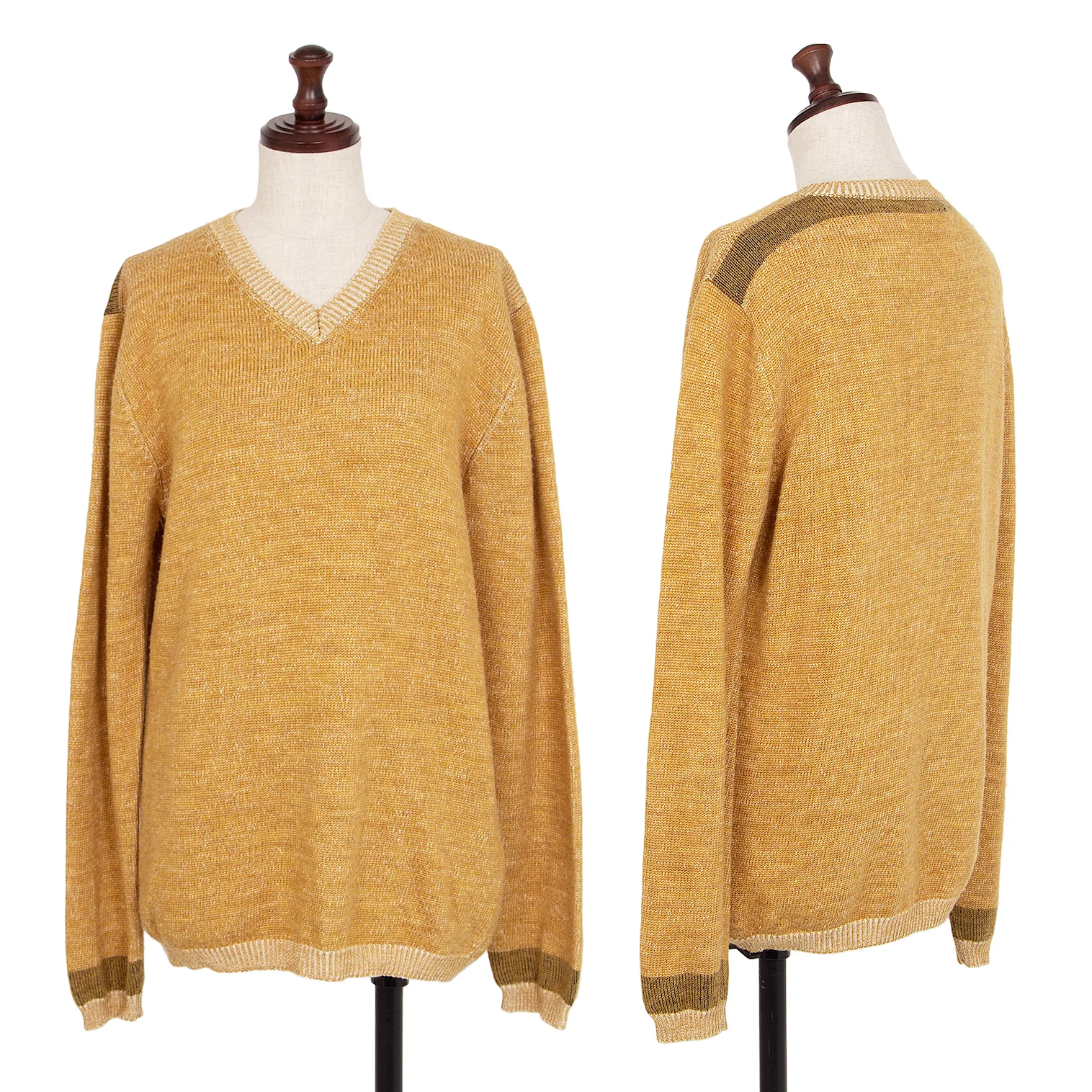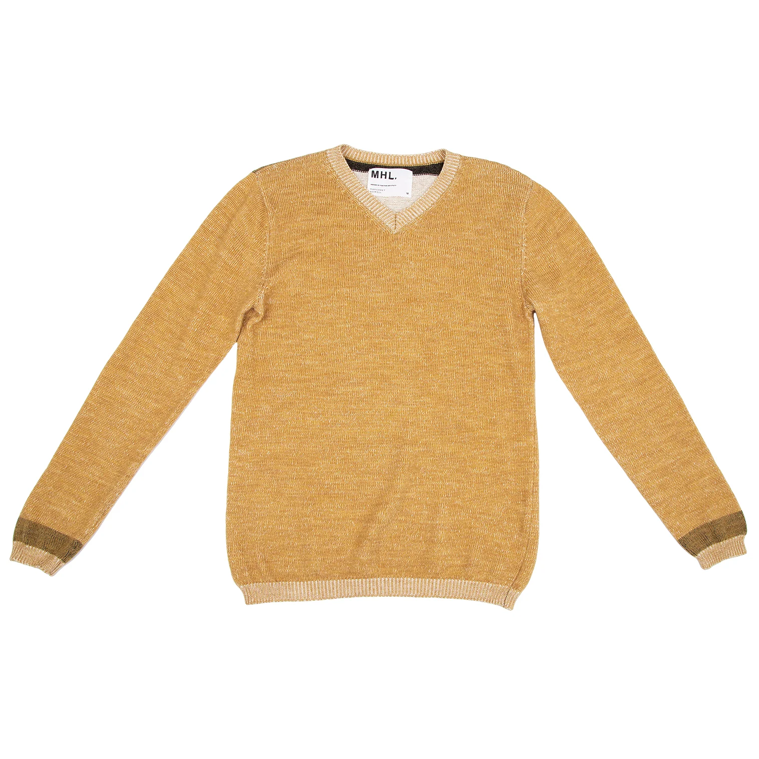 マーガレットハウエルMHL コットンウール袖ラインVネックニットセーター マスタードM