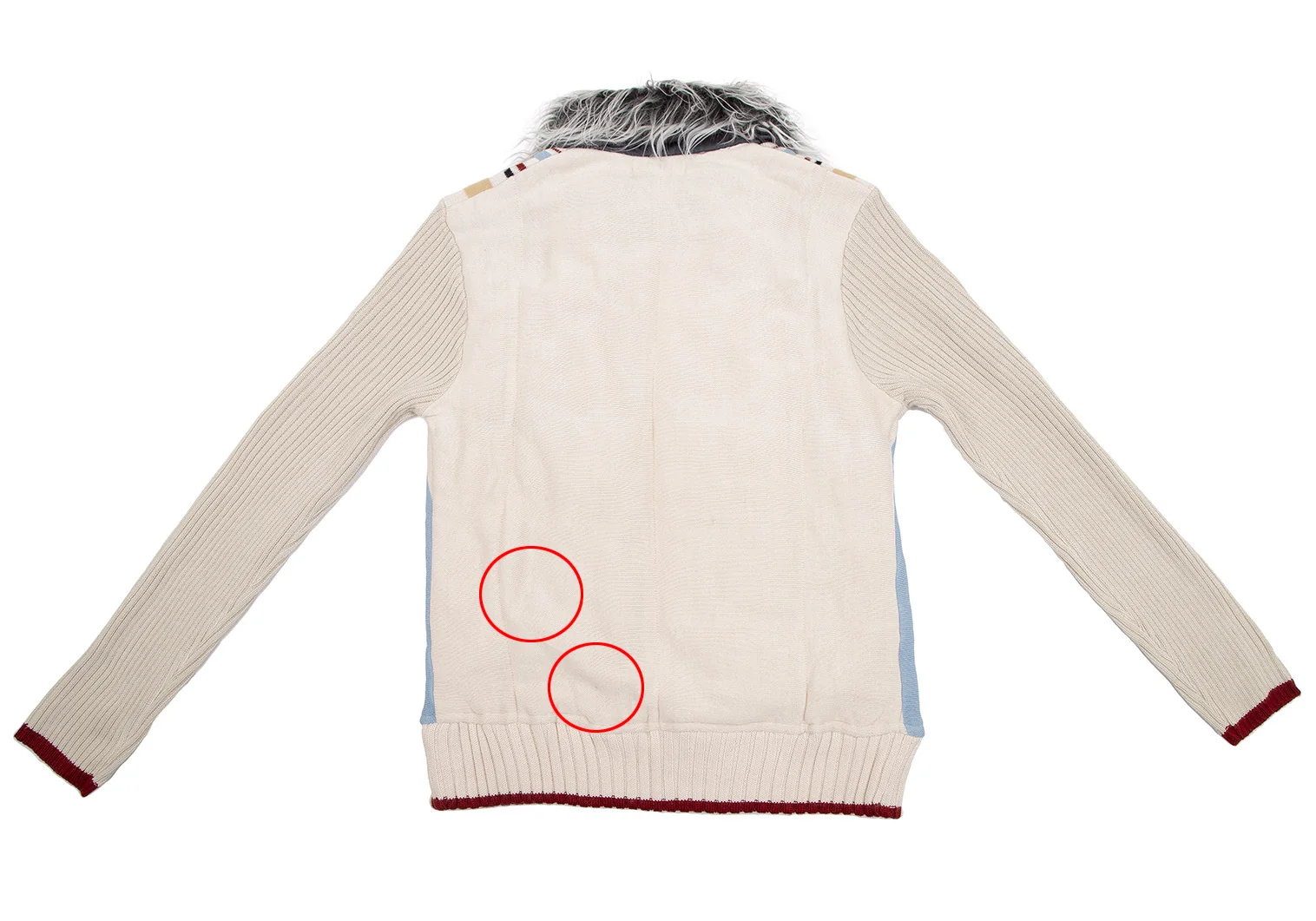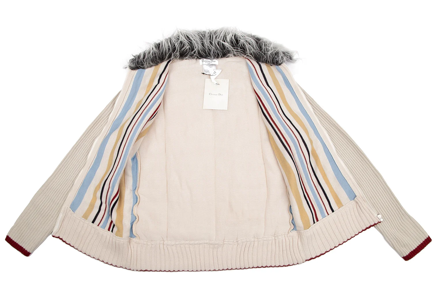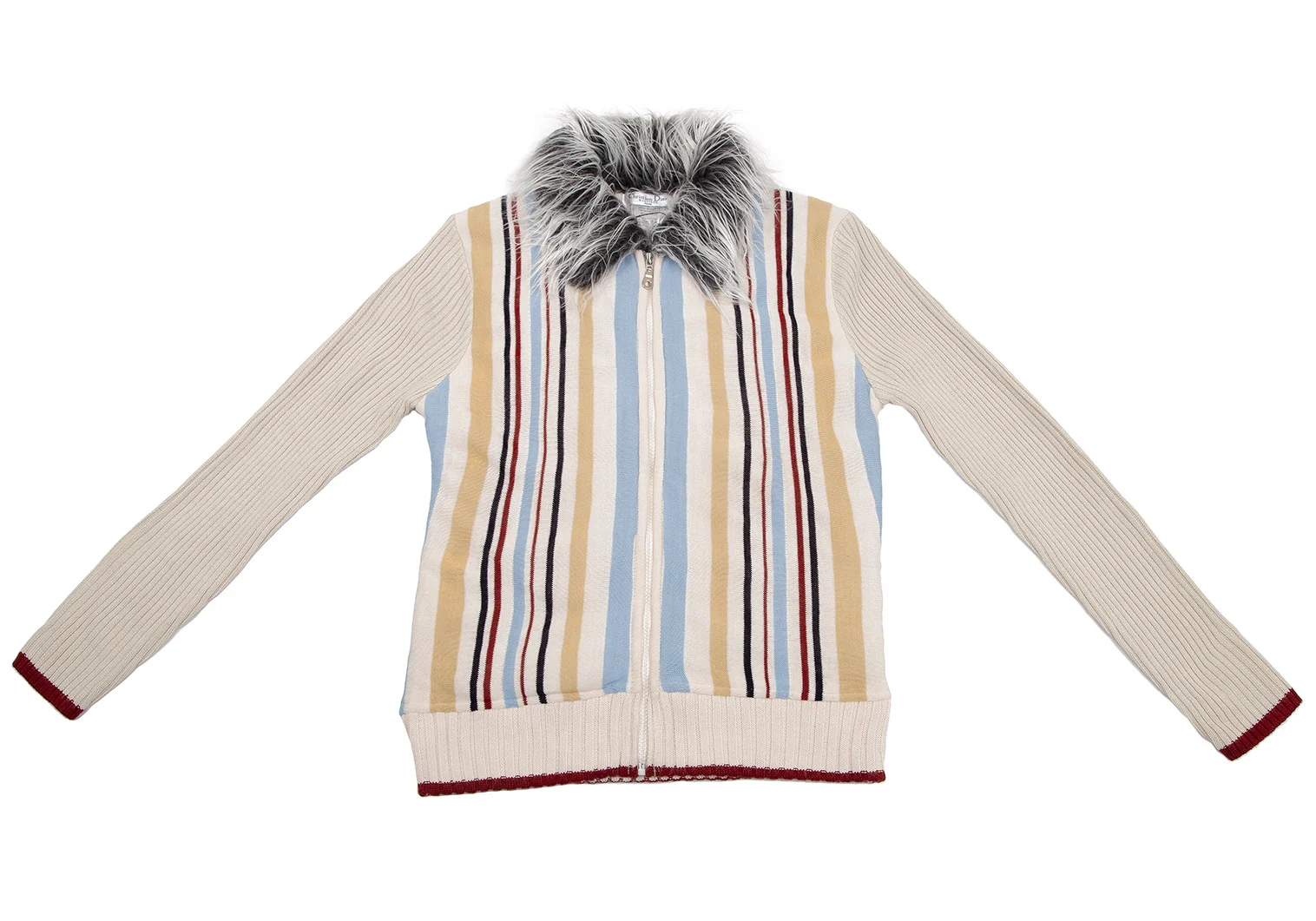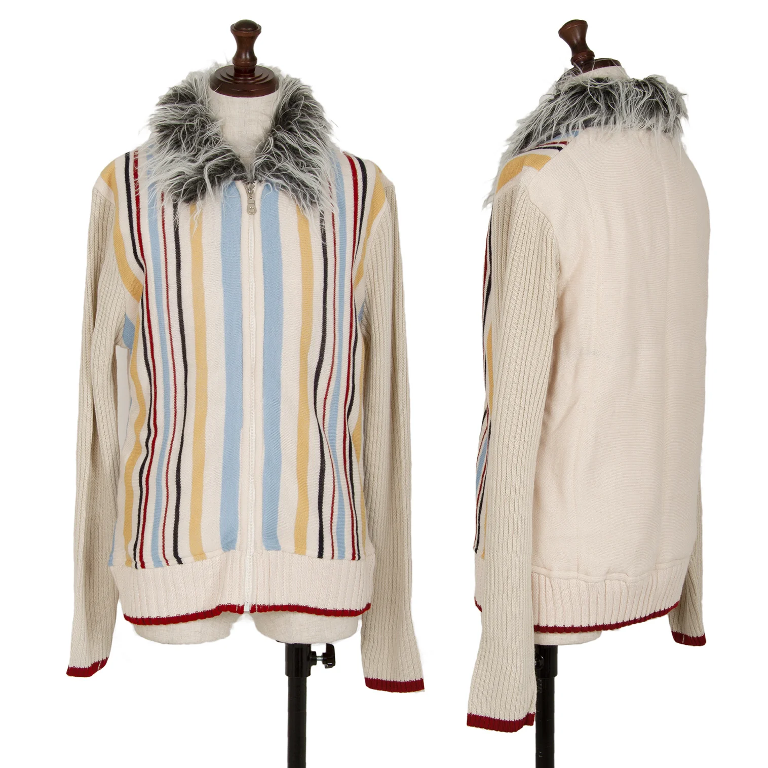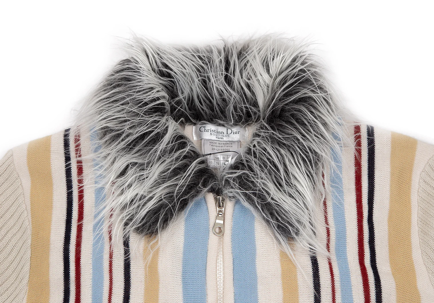 クリスチャンディオール ブティックChristian Dior BOUTIQUE 襟ファーマルチストライプジップアップニットジャケット クリームマルチ40