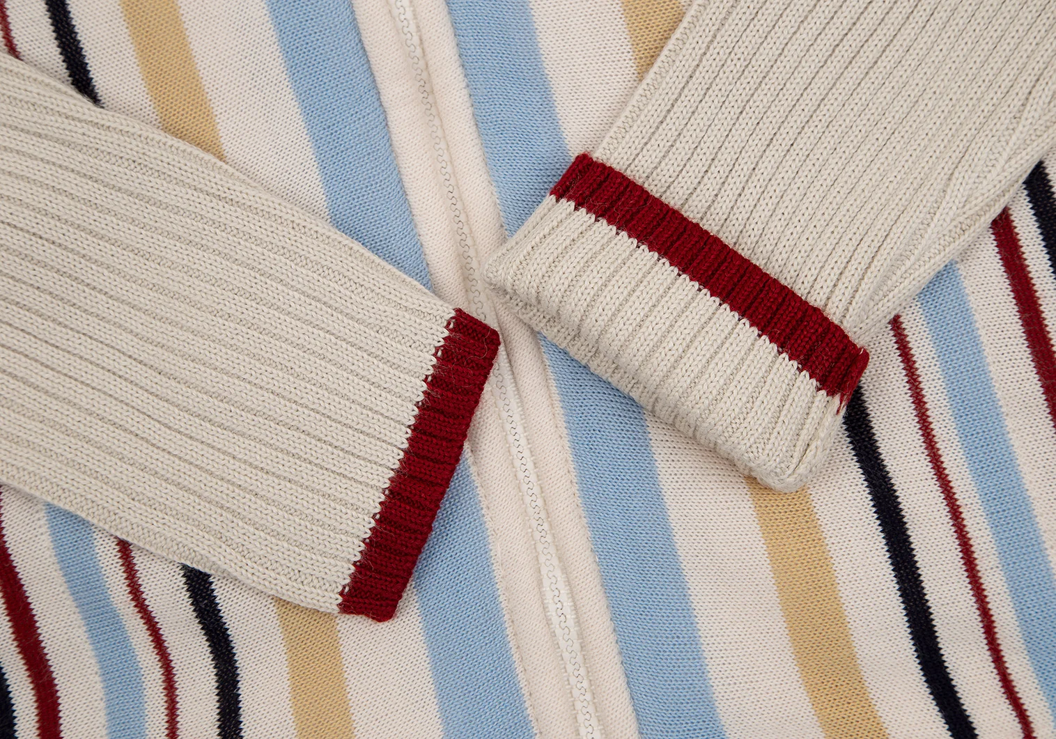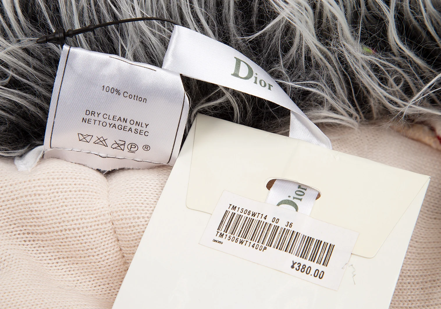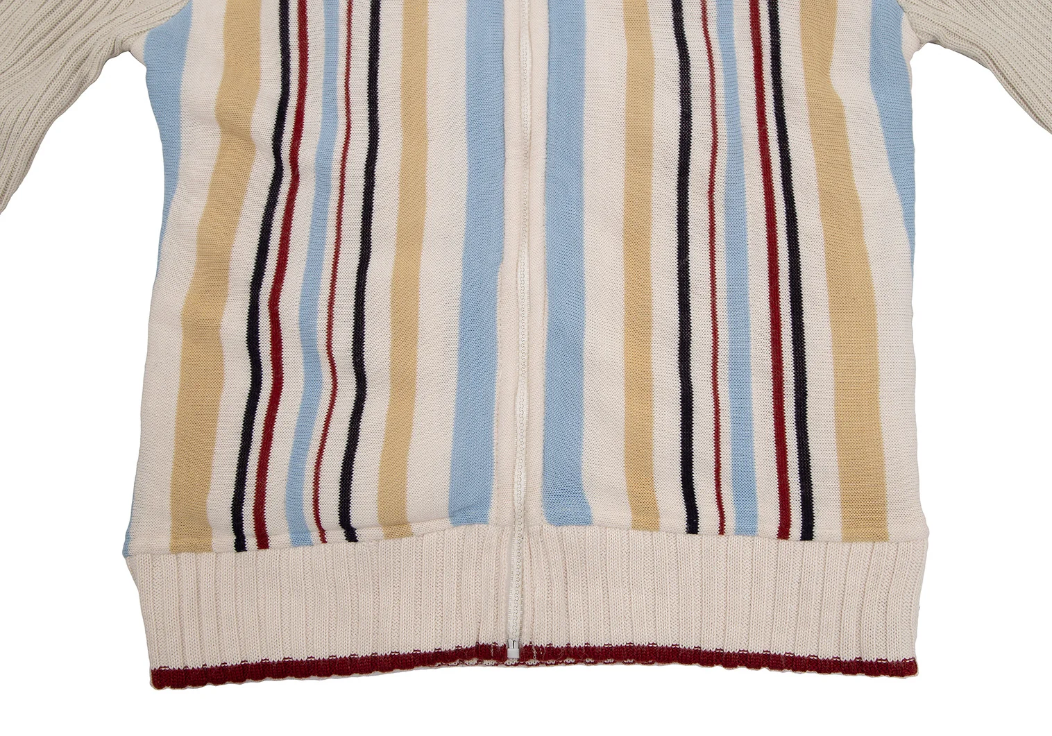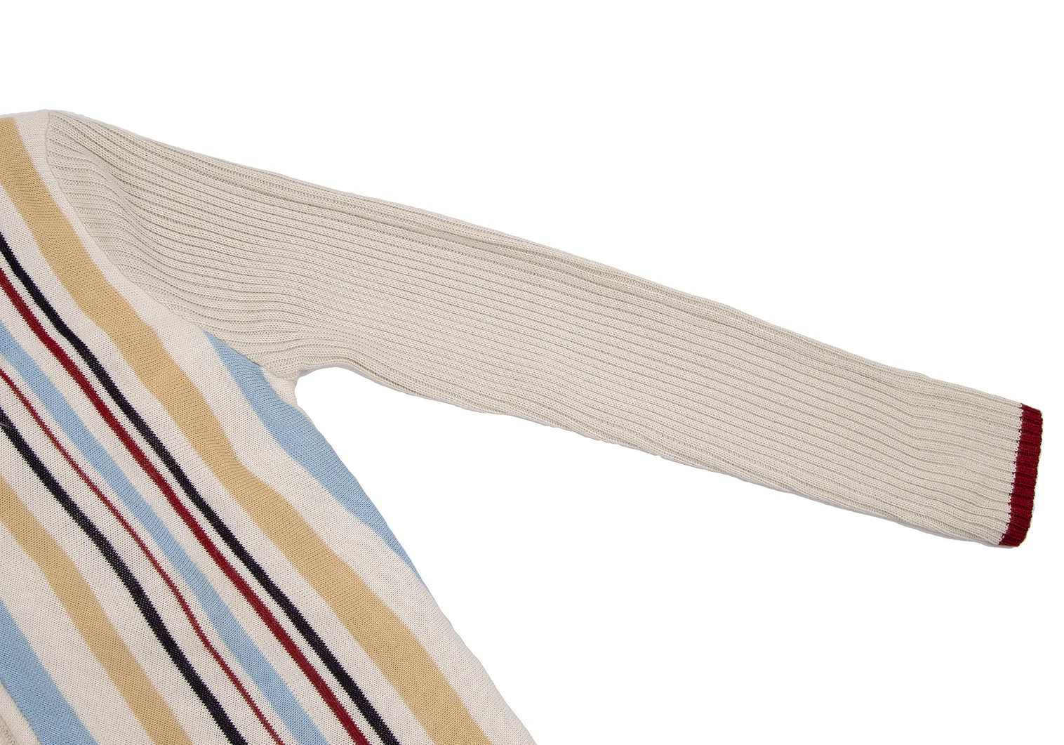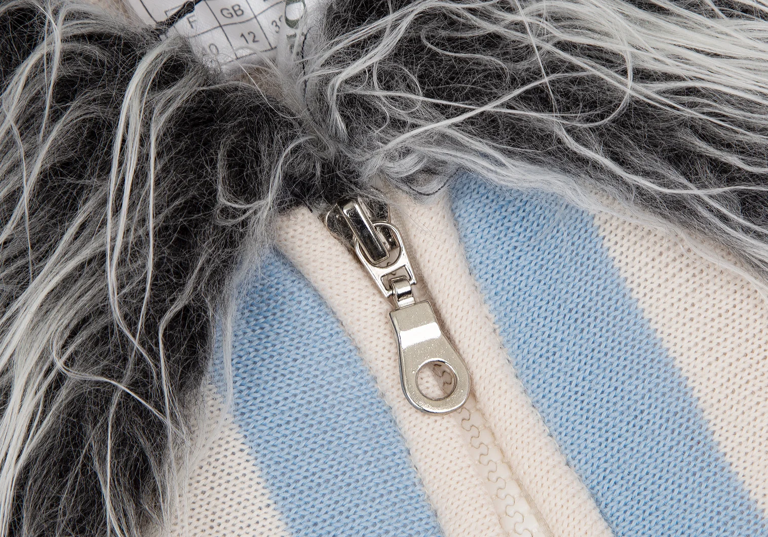 クリスチャンディオール ブティックChristian Dior BOUTIQUE 襟ファーマルチストライプジップアップニットジャケット クリームマルチ40
