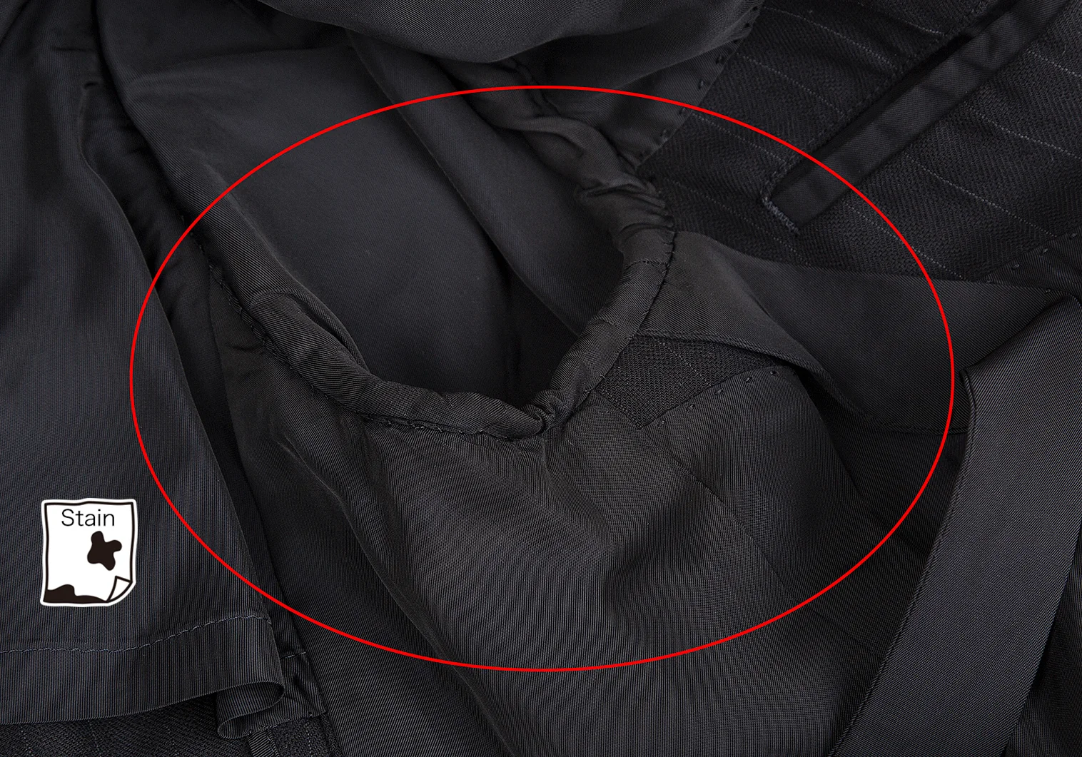 脇裏地に汚れがあります(写真参照)。その他目立ったシミ、汚れ、ほつれ等なくいい状態です。クリーニング済み