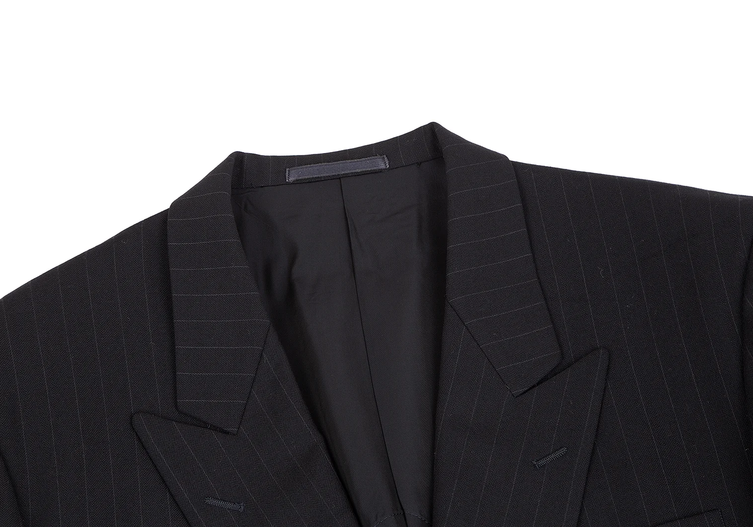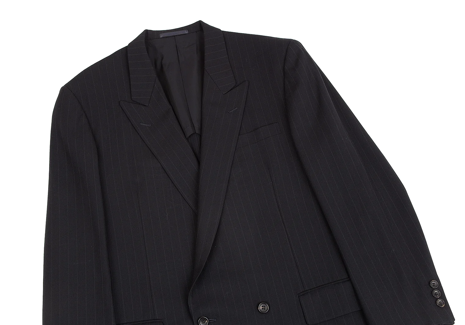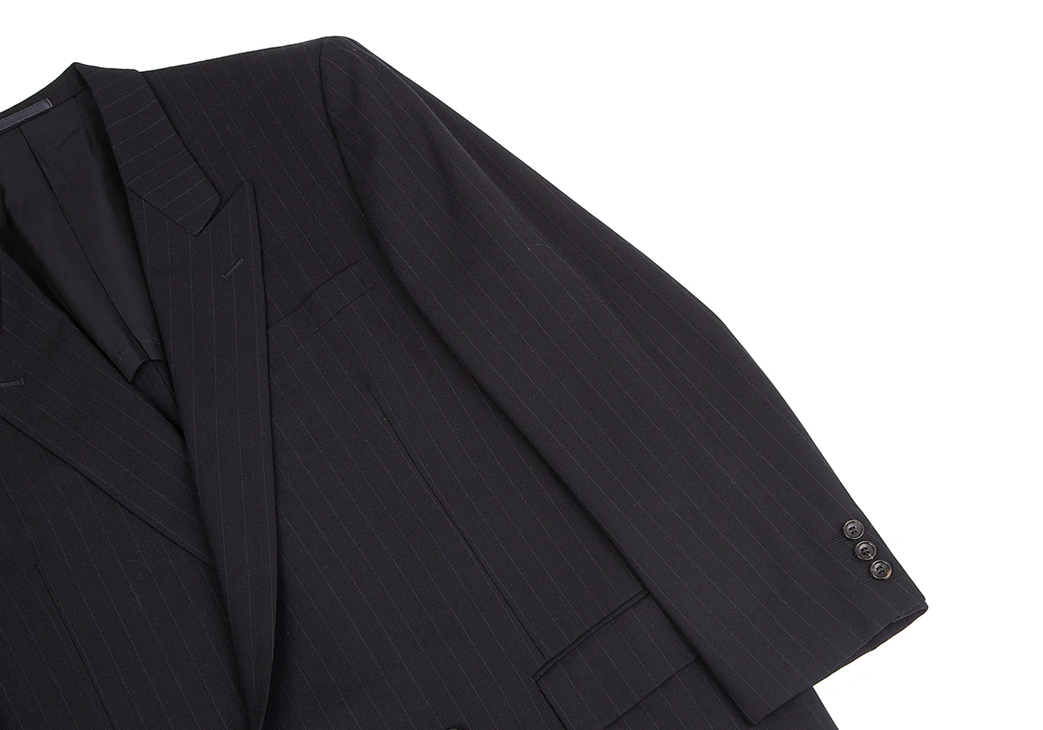 コムデギャルソン オムドゥCOMME des GARCONS HOMME DEUX ウールストライプダブルジャケット 黒M