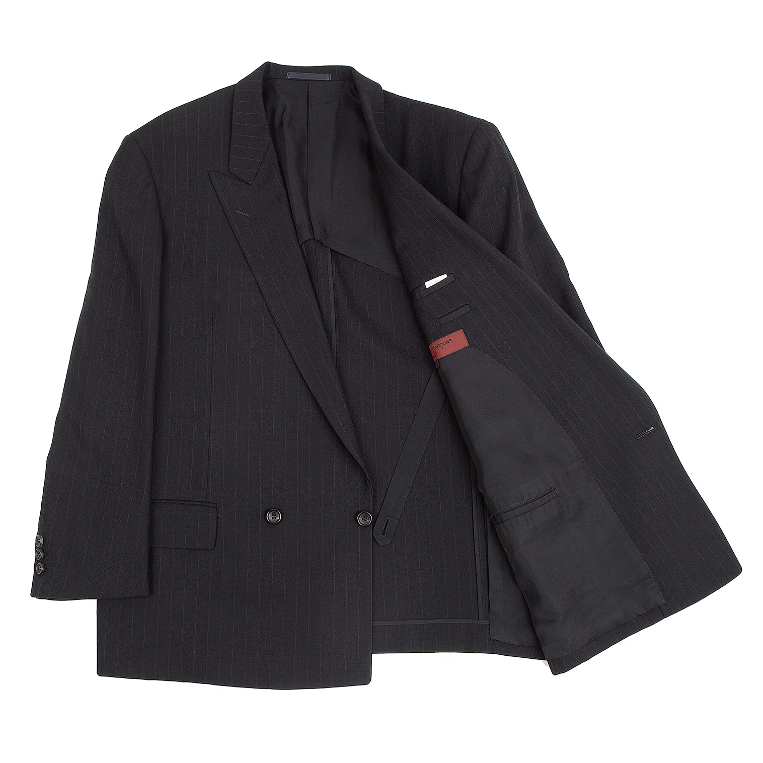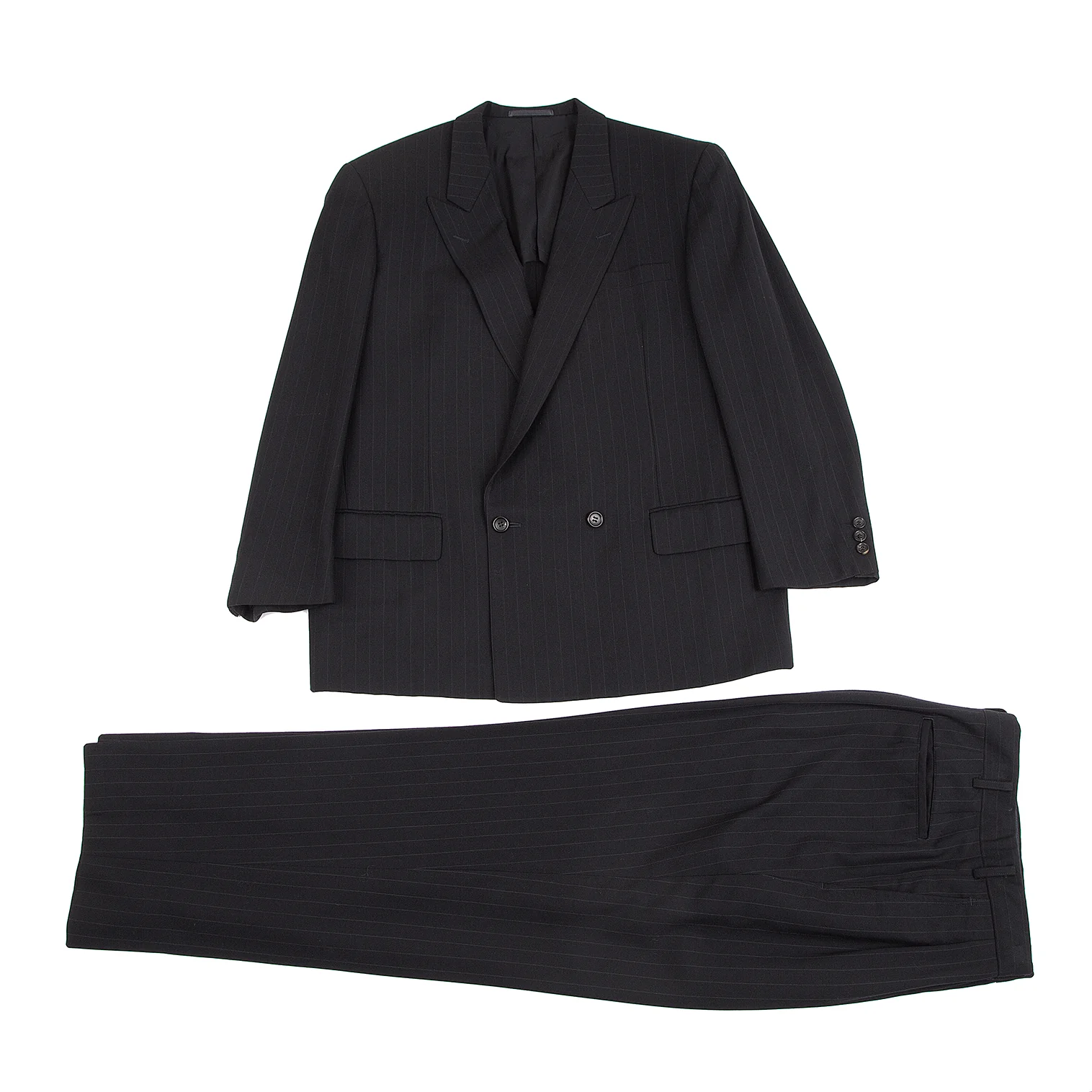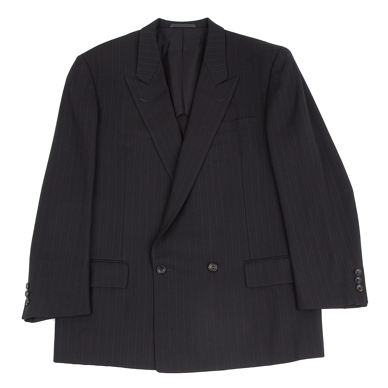 コムデギャルソン オムドゥCOMME des GARCONS HOMME DEUX ウールストライプダブルジャケット 黒M