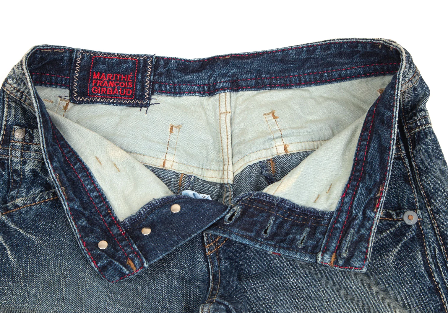 マリテフランソワジルボーMARITHE + FRANCOIS GIRBAUD サイド切替ワイドデニムパンツ インディゴL