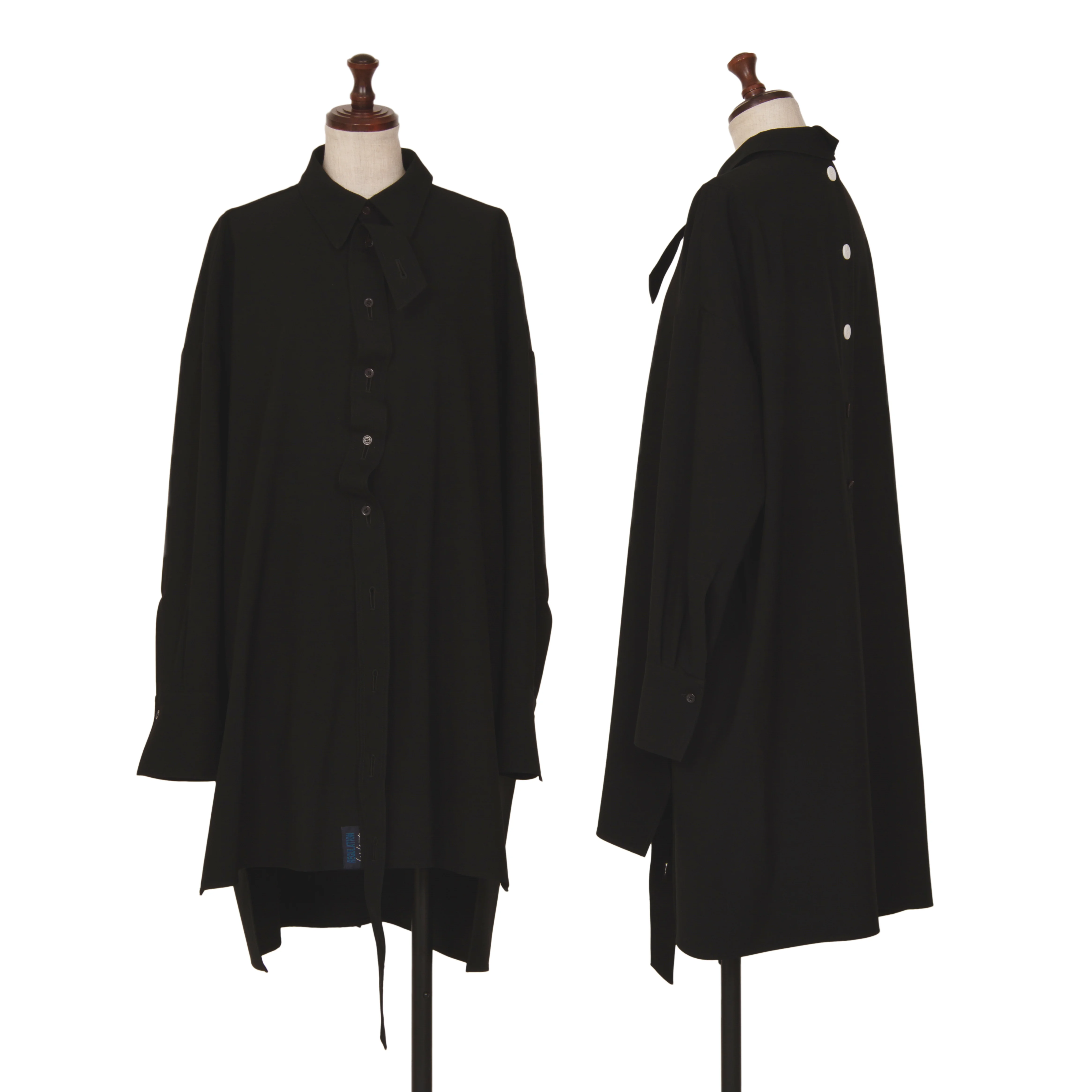 レギュレーション ヨウジヤマモトREGULATION Yohji Yamamoto ウールバックボタンホールデザインビッグシルエットシャツ 黒2