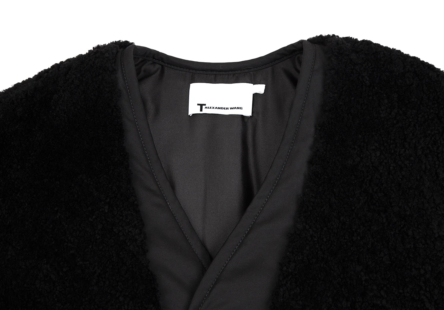 ティーバイアレキサンダーワンT by Alexander Wang ボア切替中綿ノーカラージャケット 黒XS