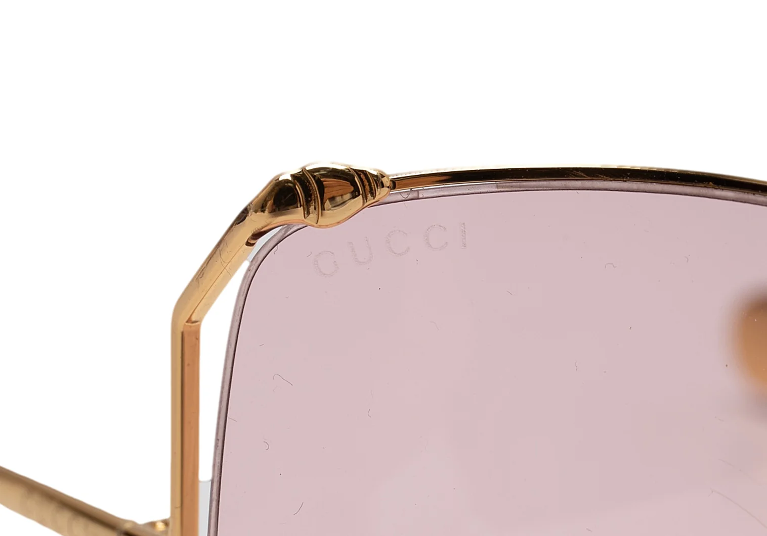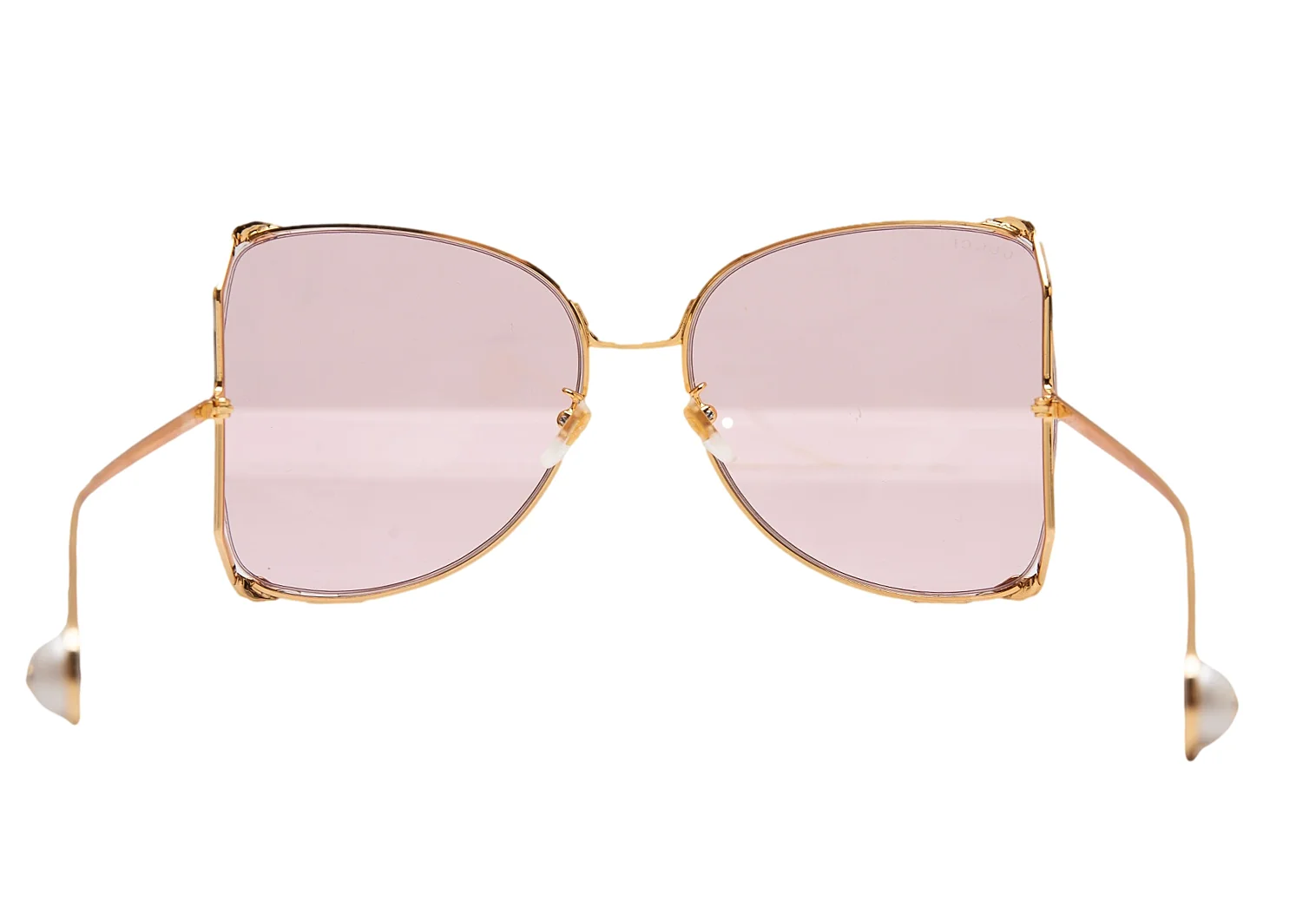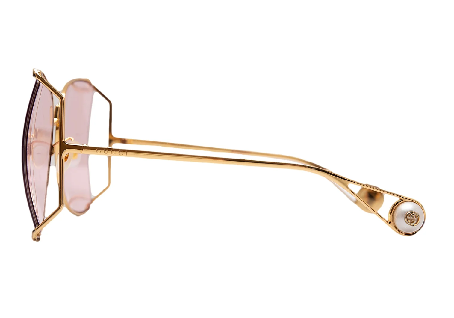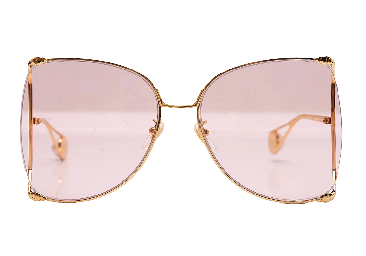 グッチGUCCI GG0252S バタフライ オーバーサイズサングラス ゴールドレンズピンク ゴールドピンク