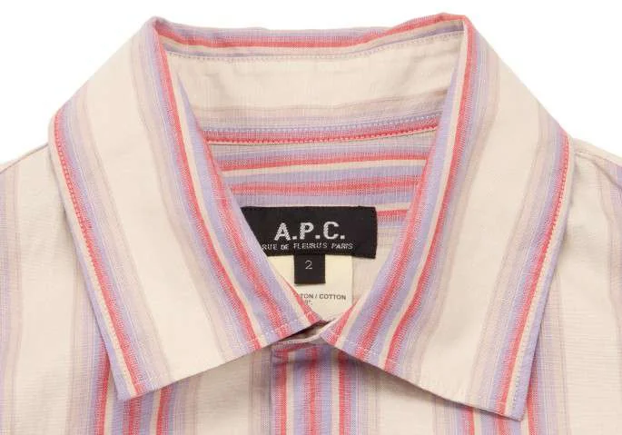 【SALE】アーペーセーA.P.C ポイントデザインストライプシャツ 生成×パープル系2