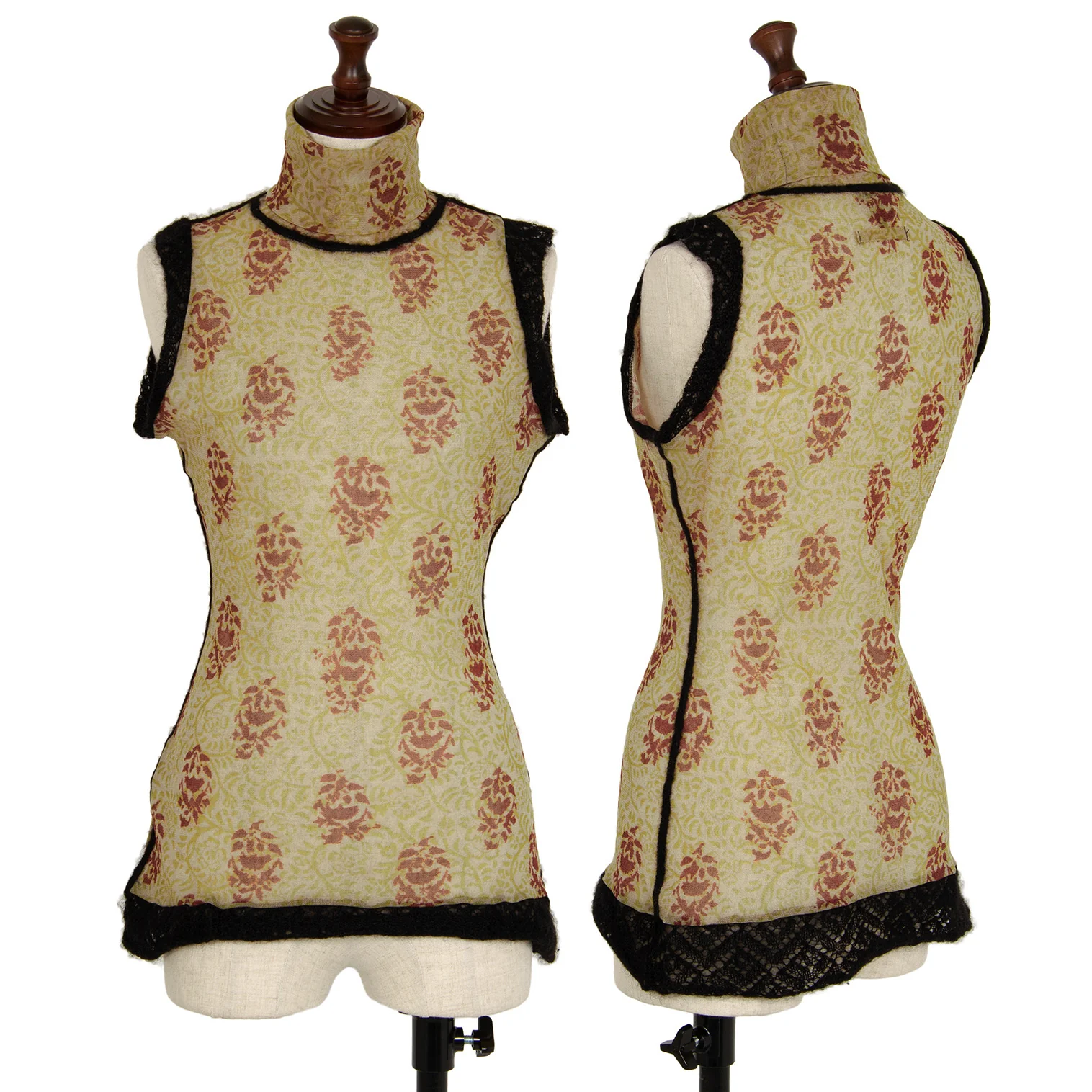 ジャンポールゴルチエ ファムJean Paul GAULTIER FEMME アラベスクプリントパワーネットハイネックノースリーブ 緑茶40