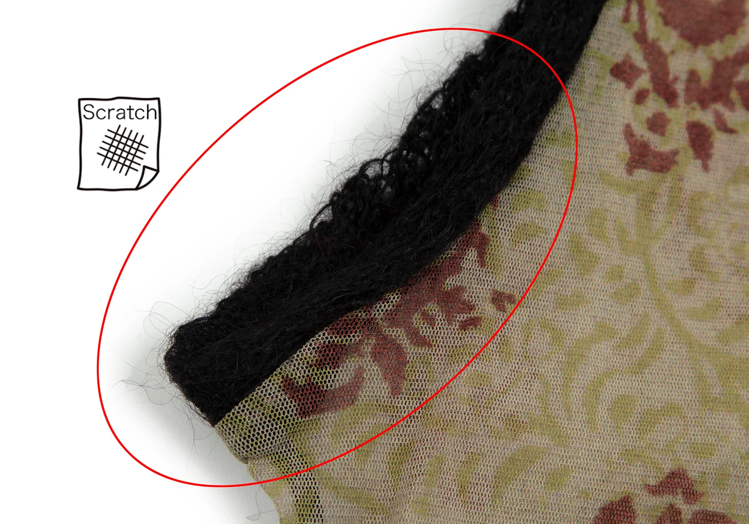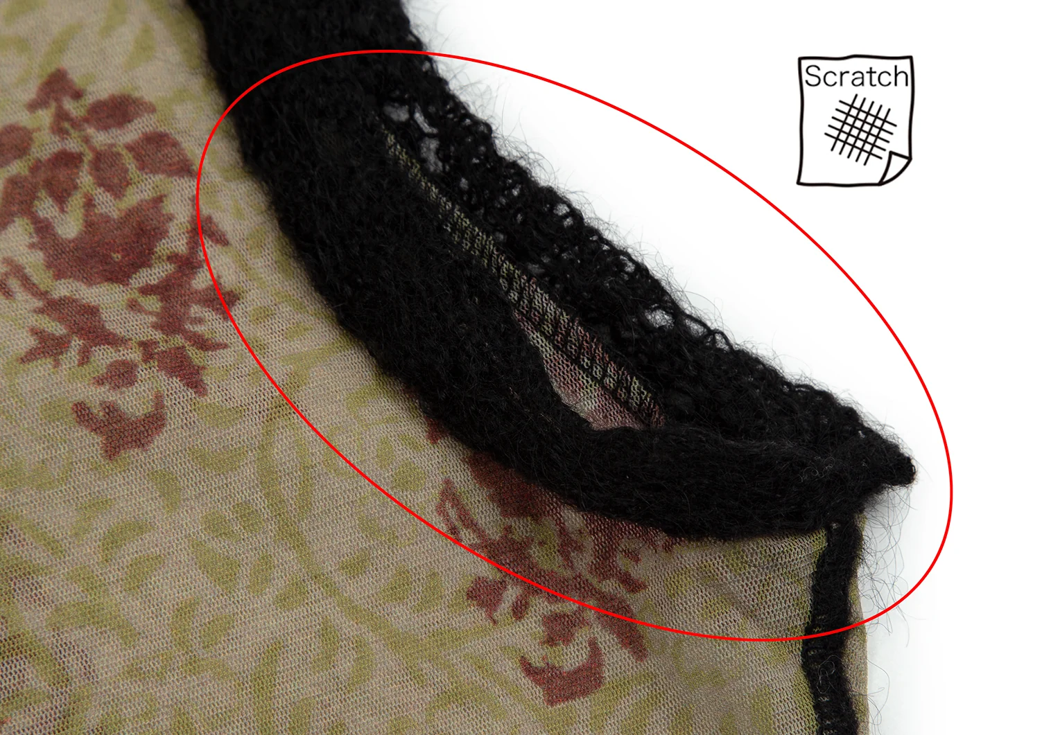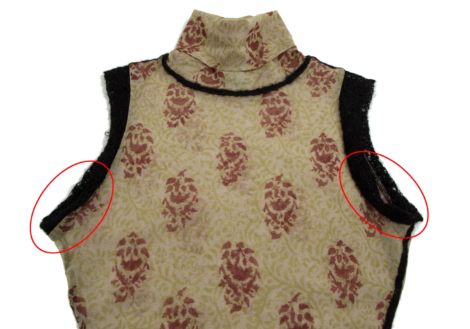 透け感のある生地です。脇下に少し擦れがあります(画像参照)。その他目立ったシミ、汚れ、ほつれ等なくいい状態です。クリーニング済み
