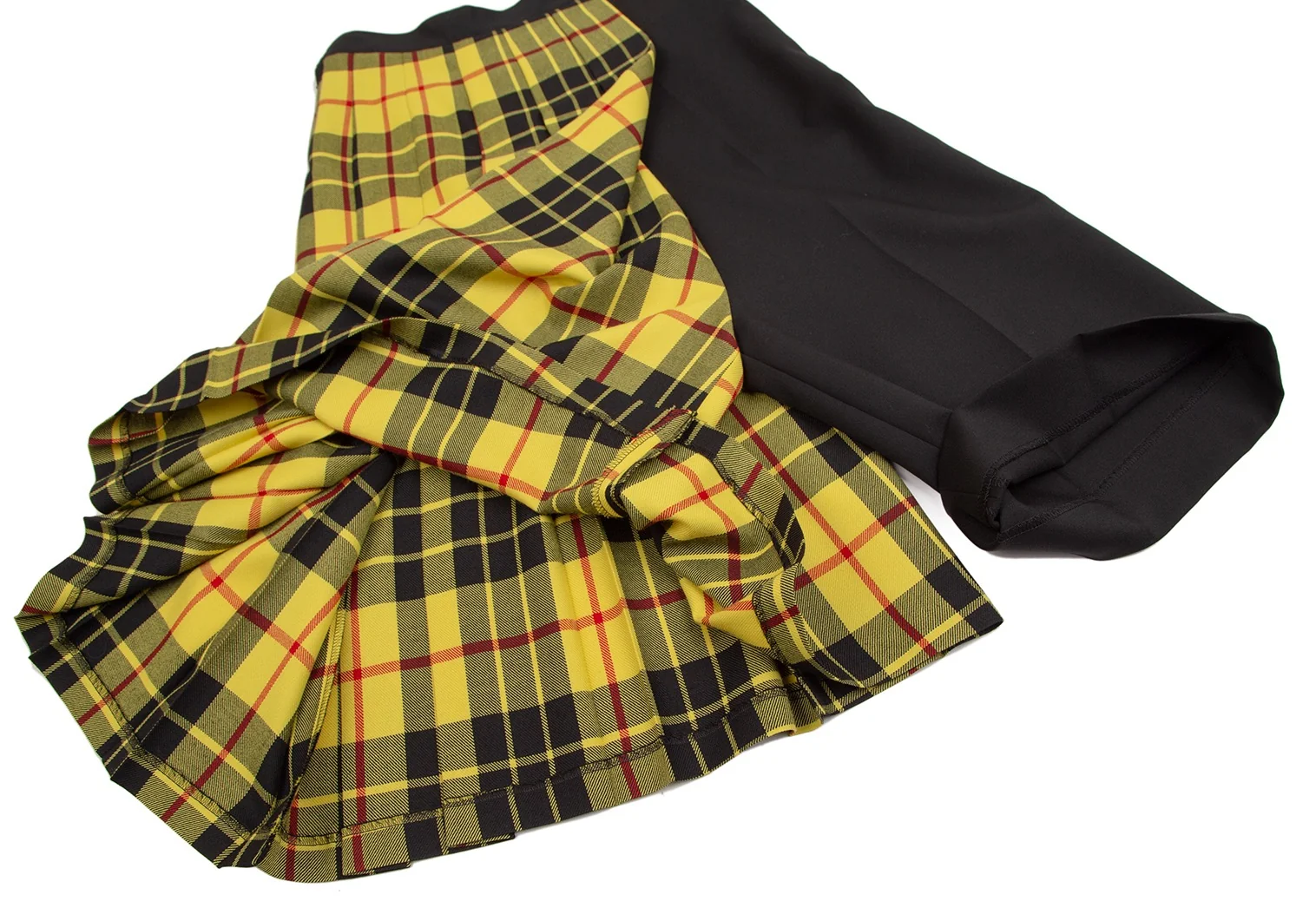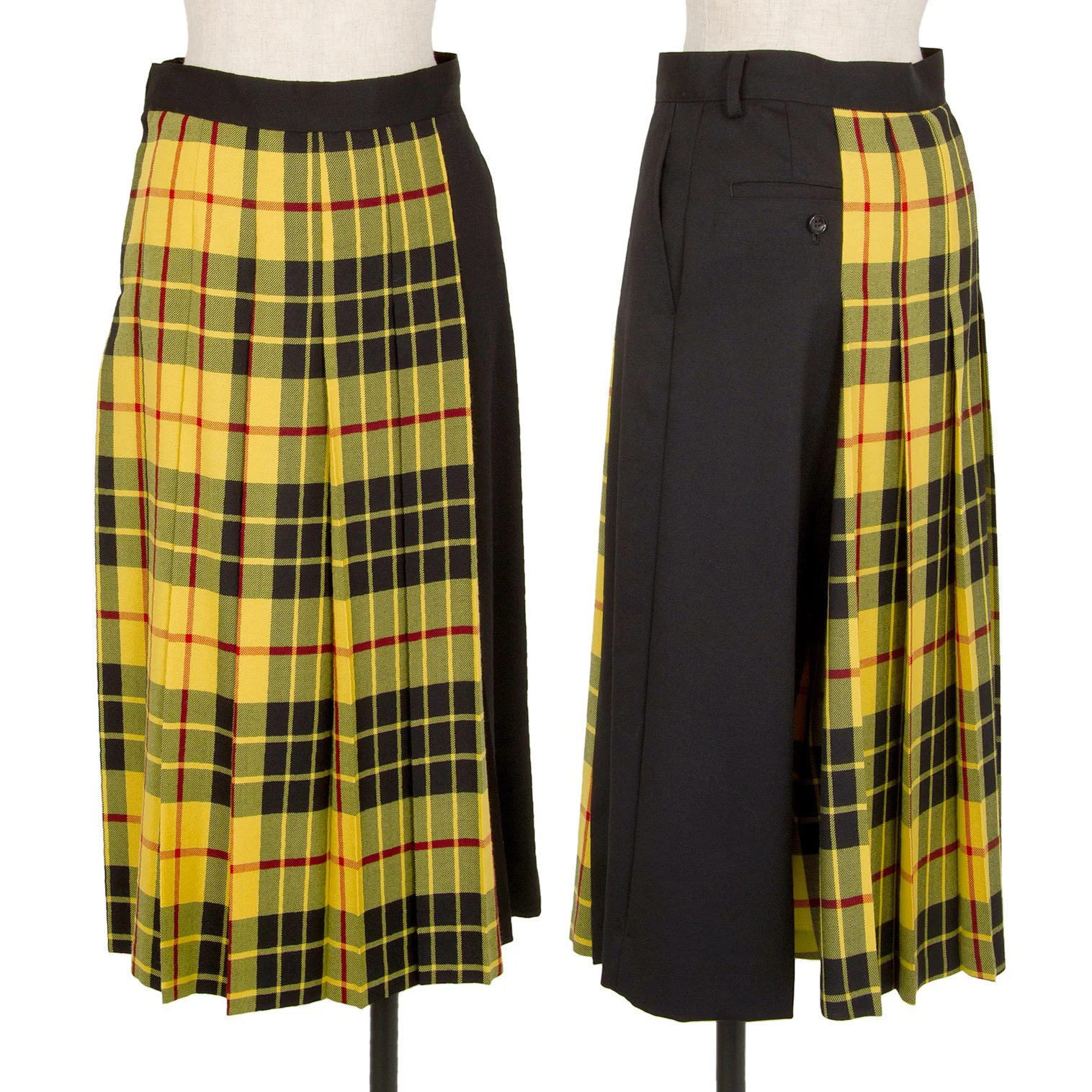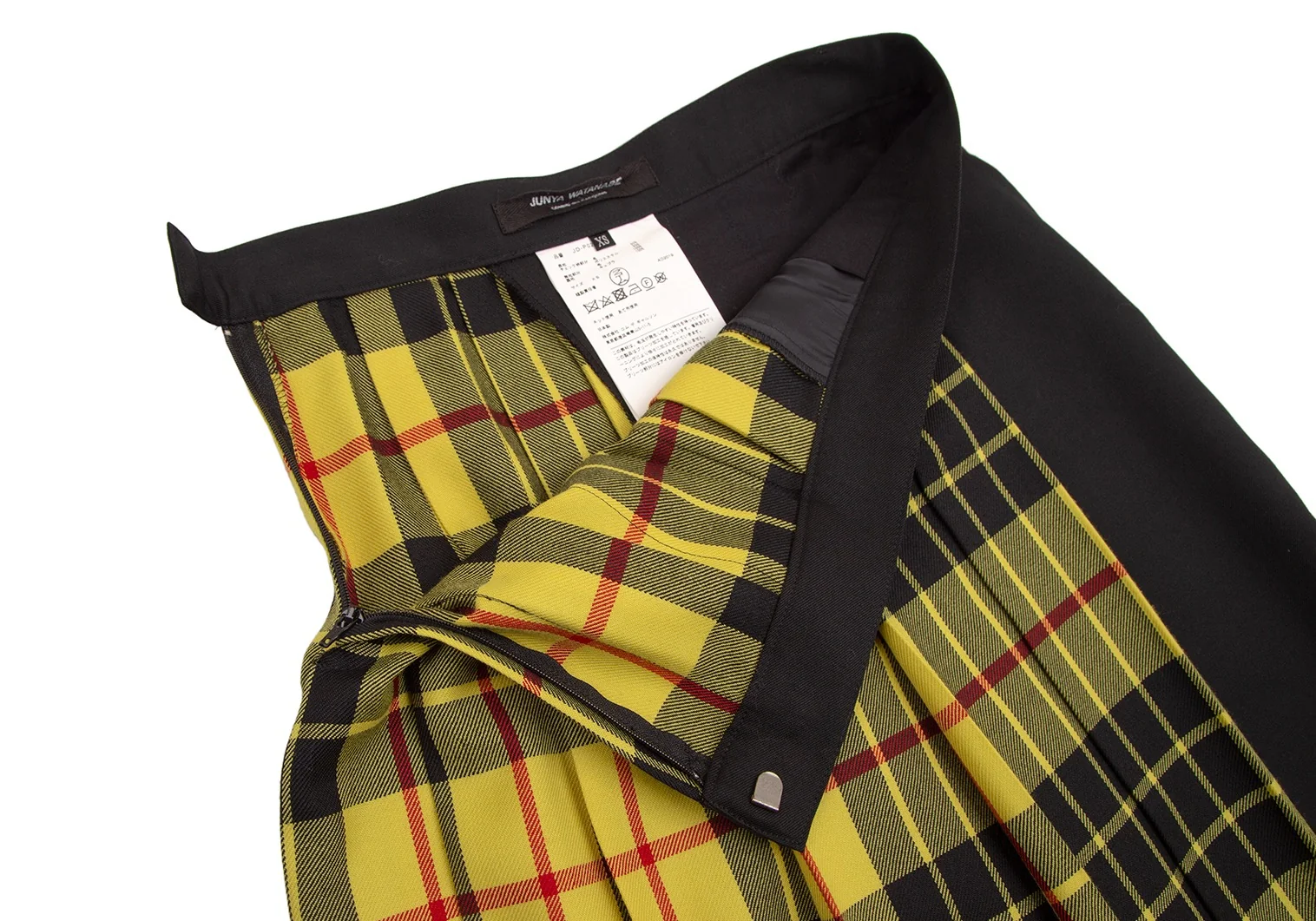 ジュンヤワタナベ コムデギャルソンJUNYA WATANABE COMME des GARCONS タータンチェック切替プリーツアシンメトリーサルエルパンツ 黒黄XS