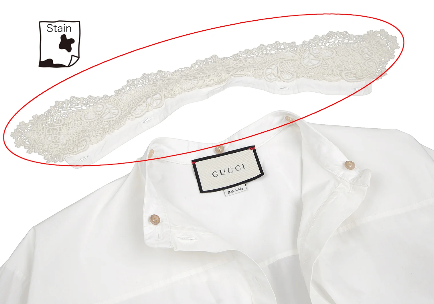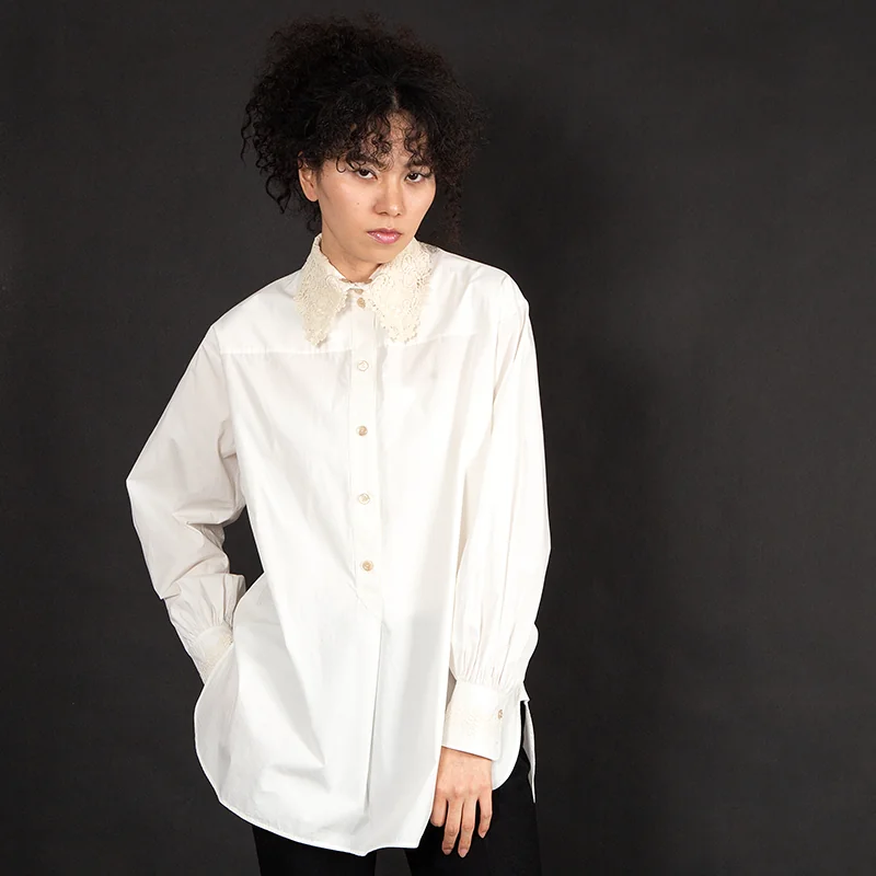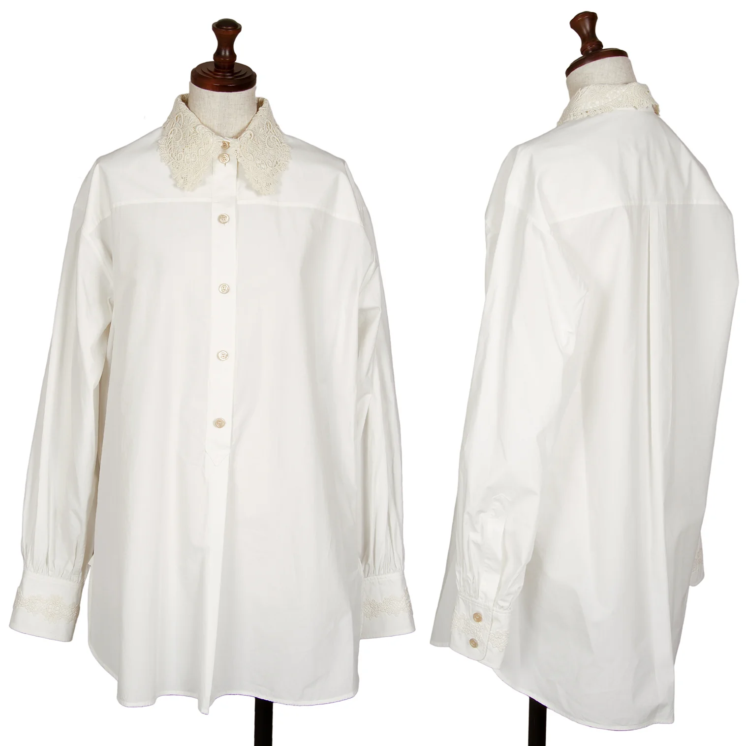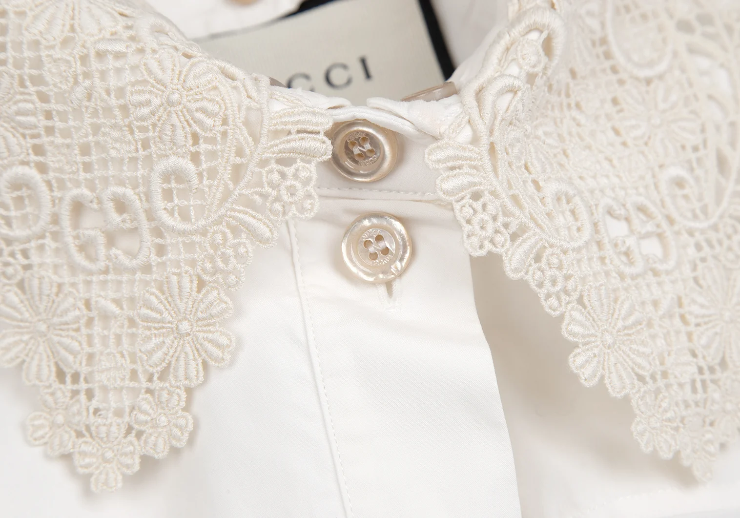 グッチGUCCI フラワーレースカラー着脱オーバーサイズシャツ 白38