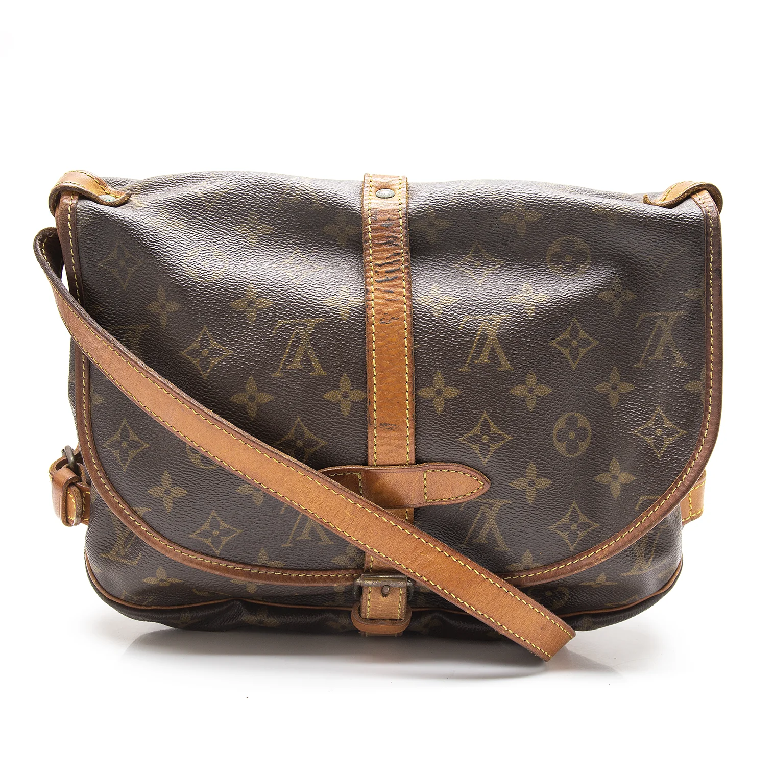 ルイヴィトンLouis Vuitton モノグラム ソミュール30 ショルダーバッグ 茶