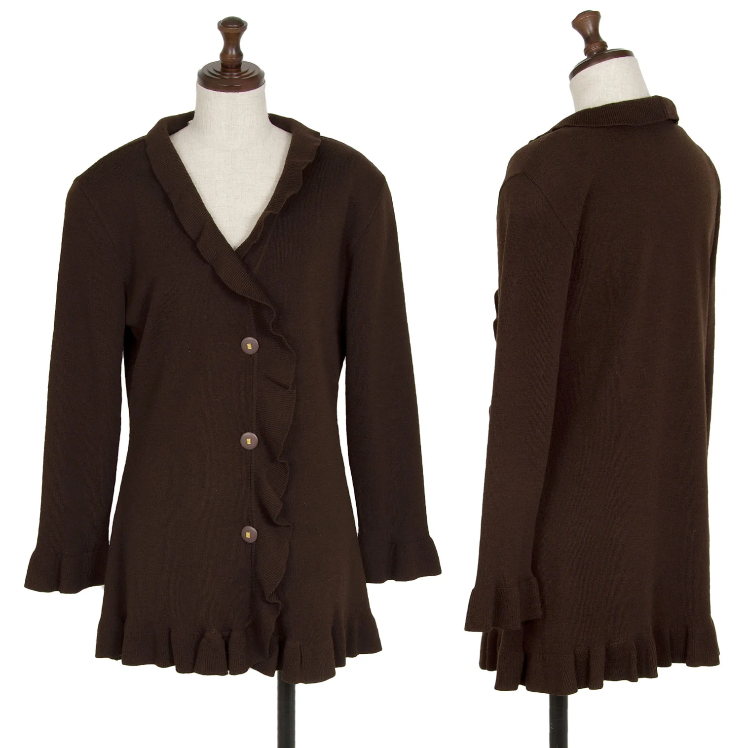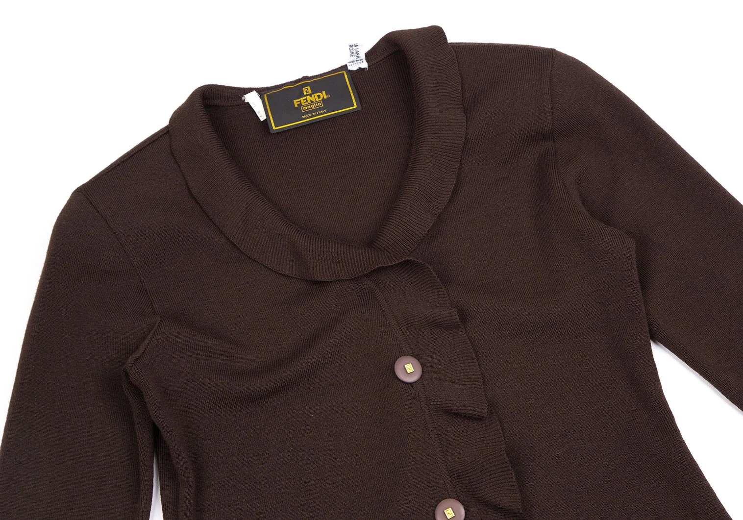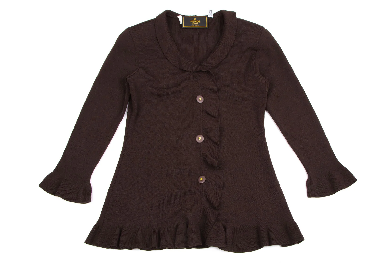 フェンディFENDI フリルニットカーディガン 焦げ茶44