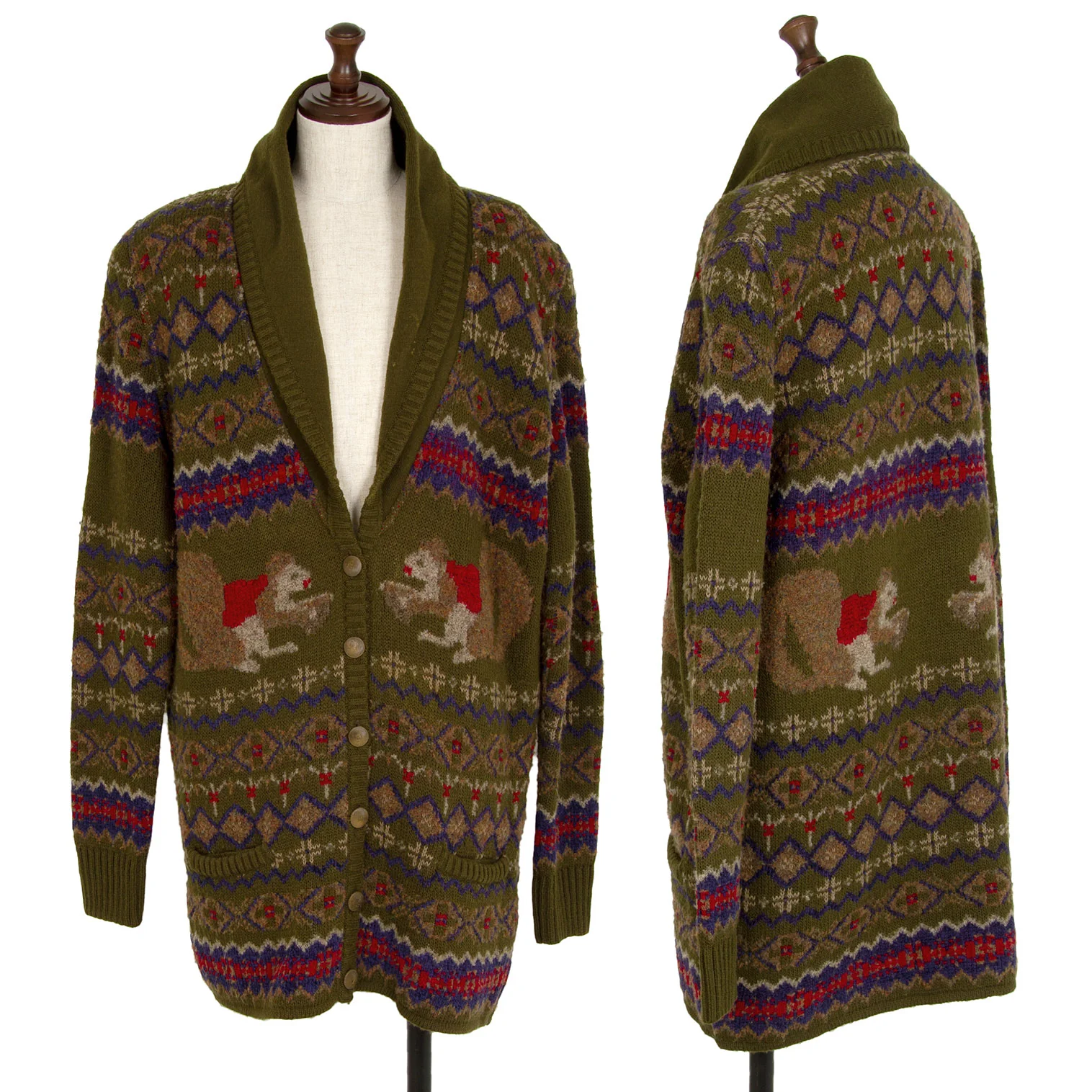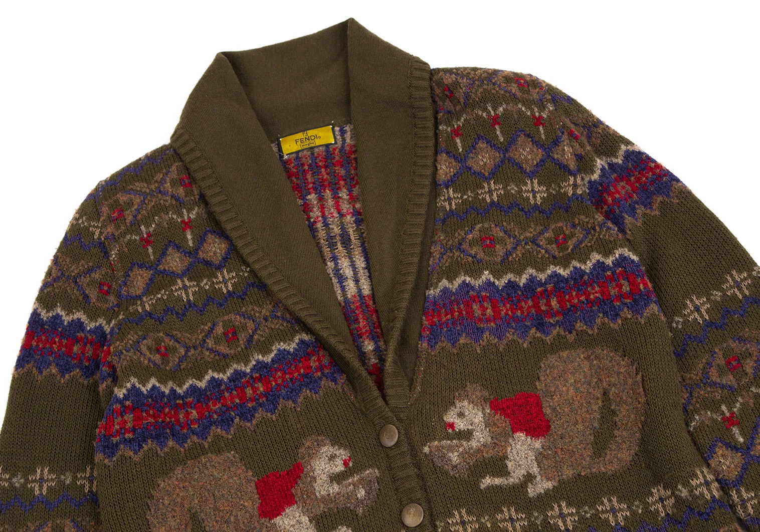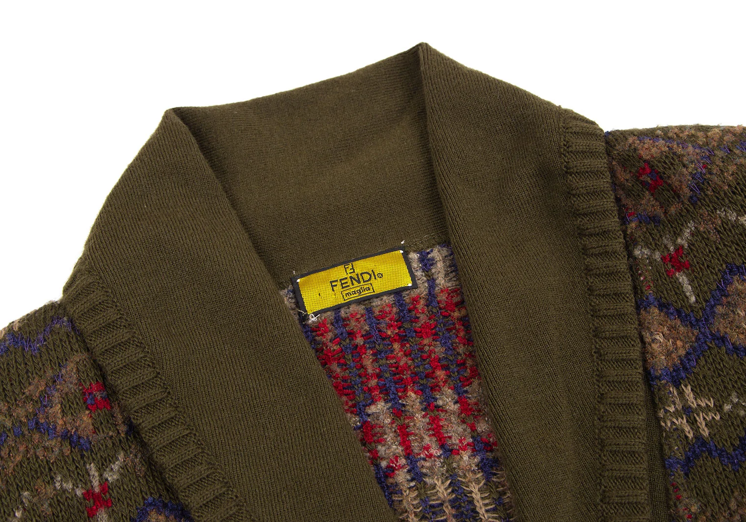 フェンディFENDI ショールカラーフェアアイルニットジャケット カーキ他40