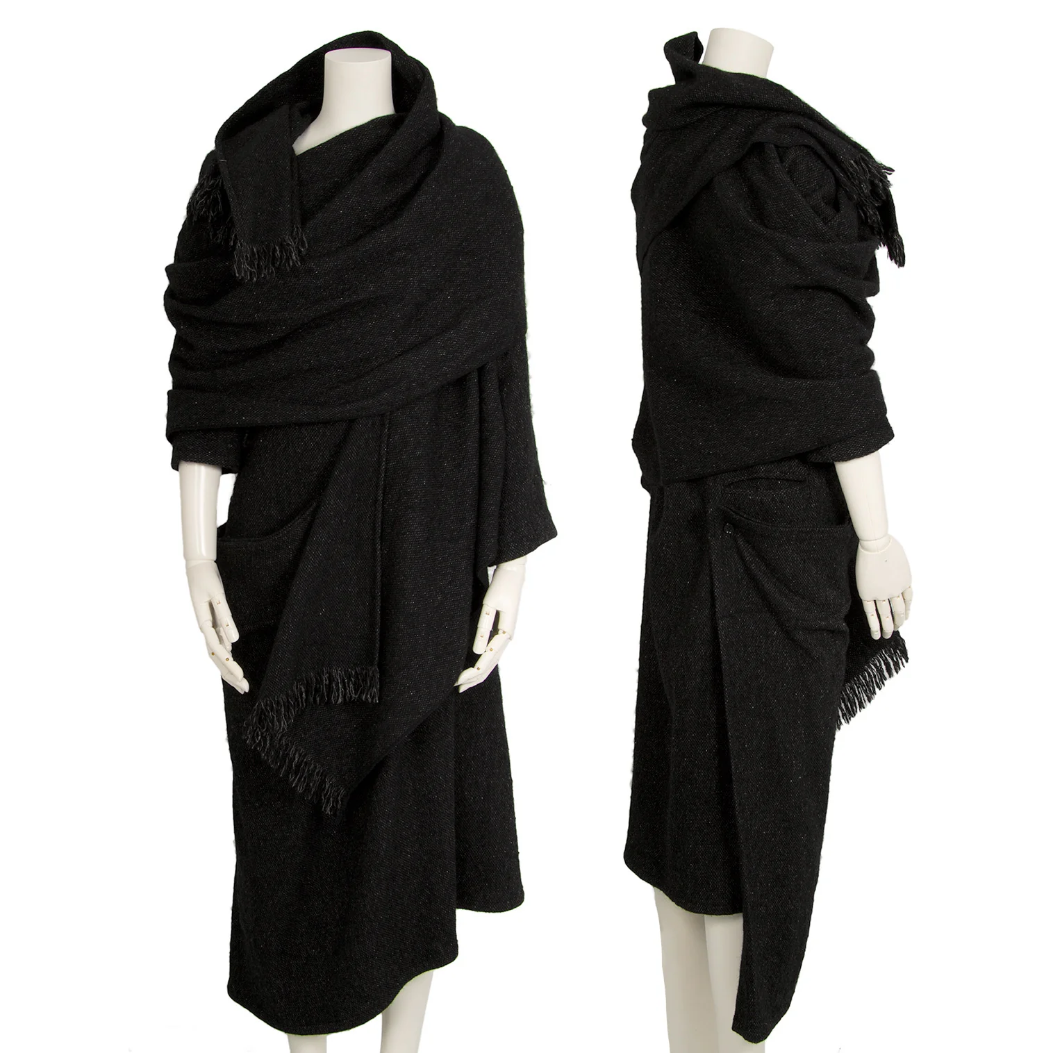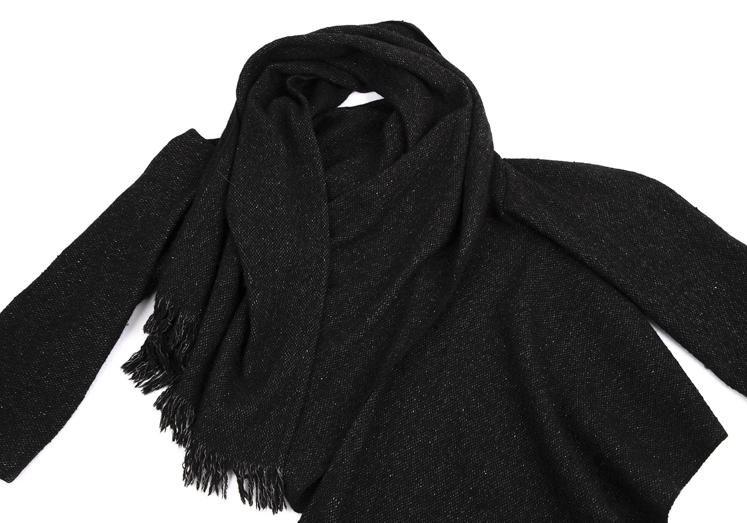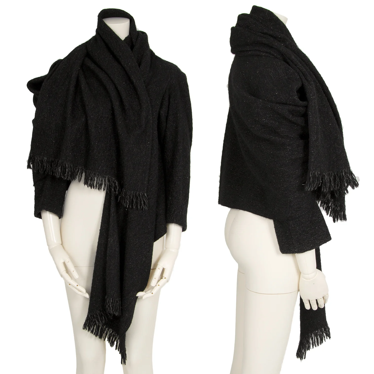 ヨウジヤマモト ノアールYohji Yamamoto NOIR ウールシルクフリンジマフラージャケット 黒2