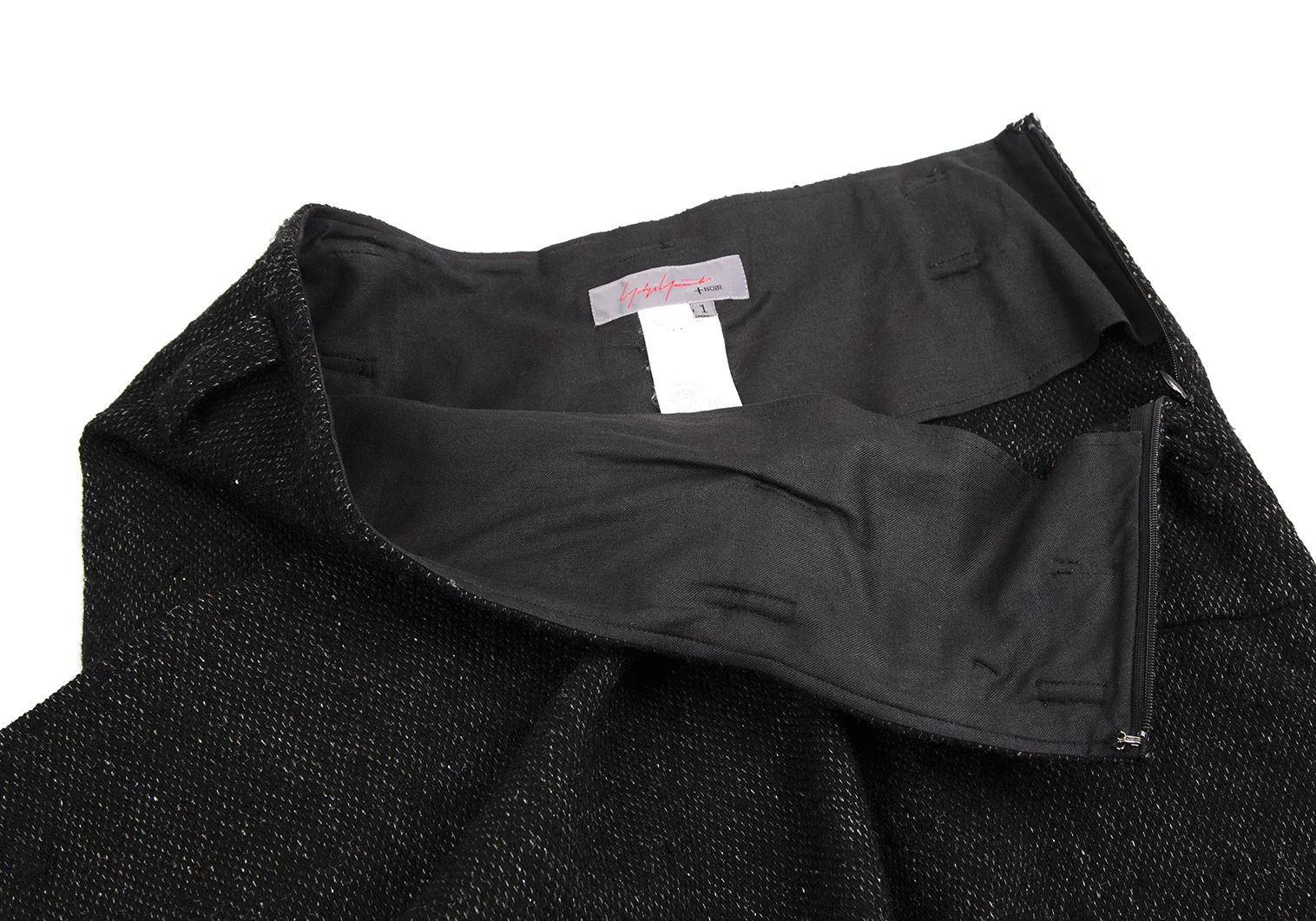 ヨウジヤマモト ノアールYohji Yamamoto NOIR ウールシルクハーフラップスカート 黒1