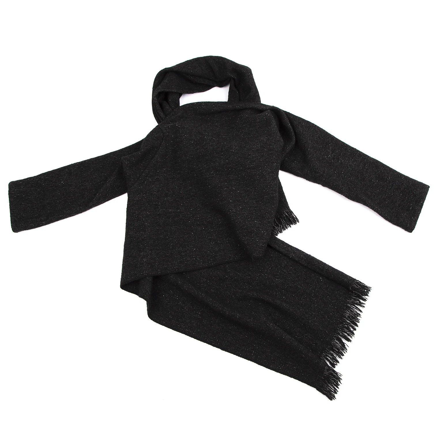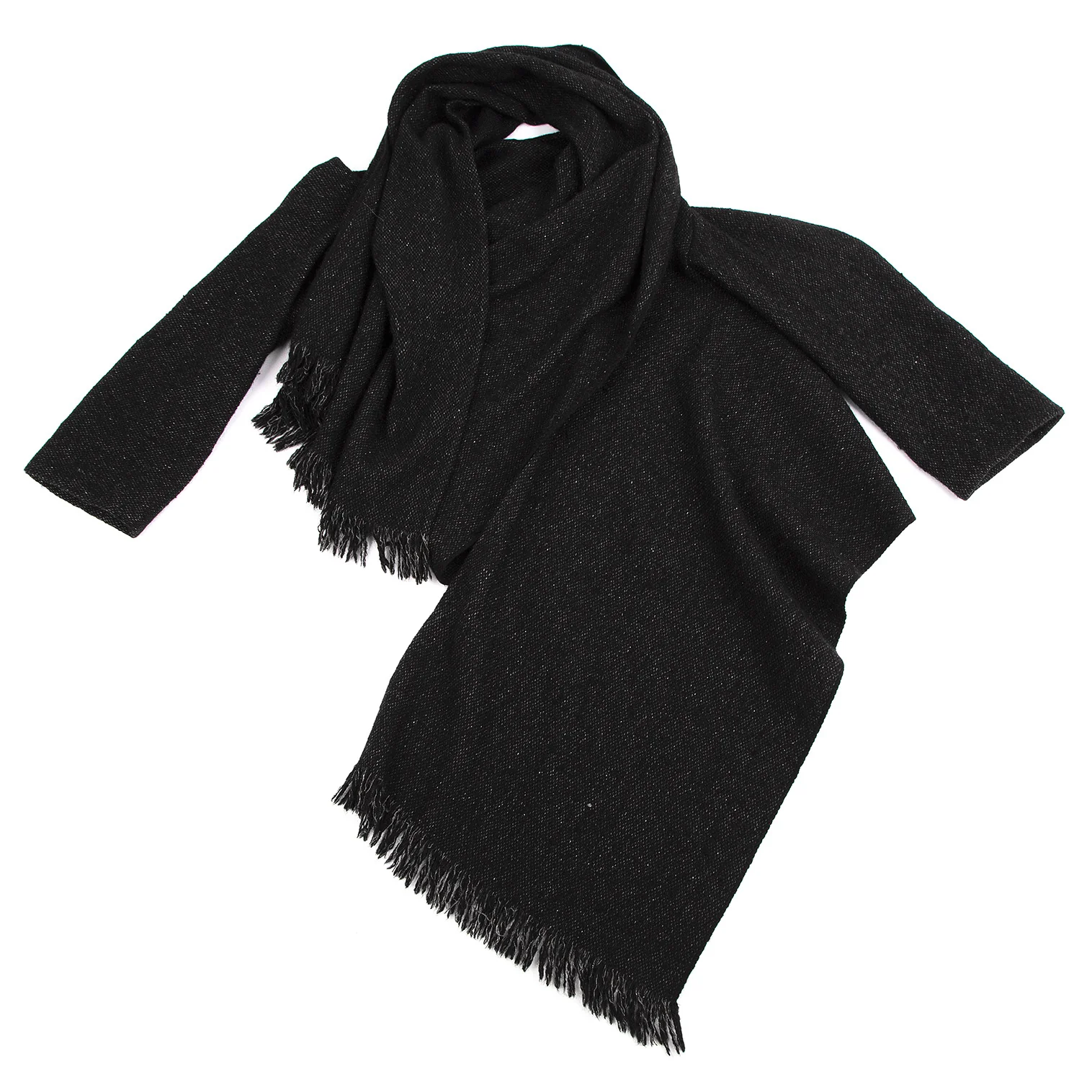 ヨウジヤマモト ノアールYohji Yamamoto NOIR ウールシルクフリンジ巻きデザインセットアップ 黒2・1
