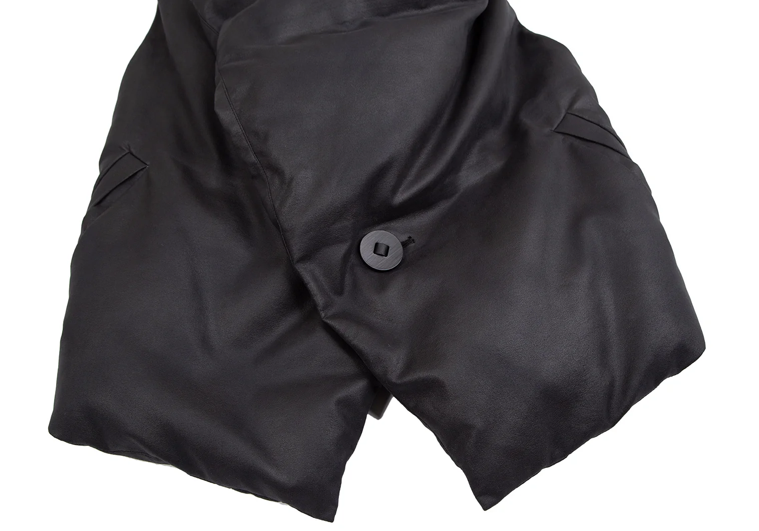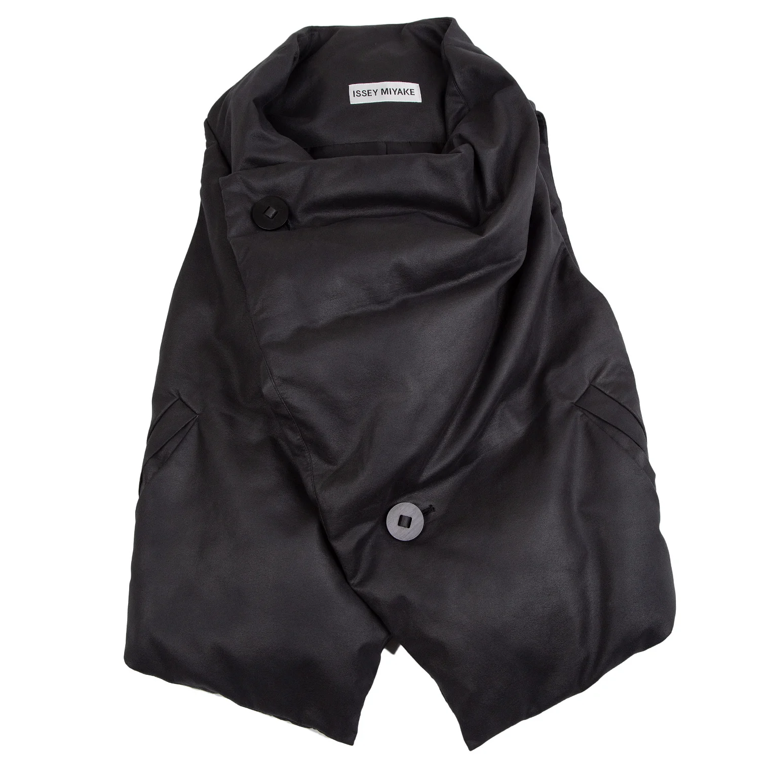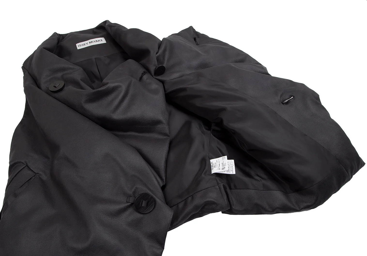 イッセイミヤケISSEY MIYAKE シンセティックレザーフロントドレープダウンベスト 黒2