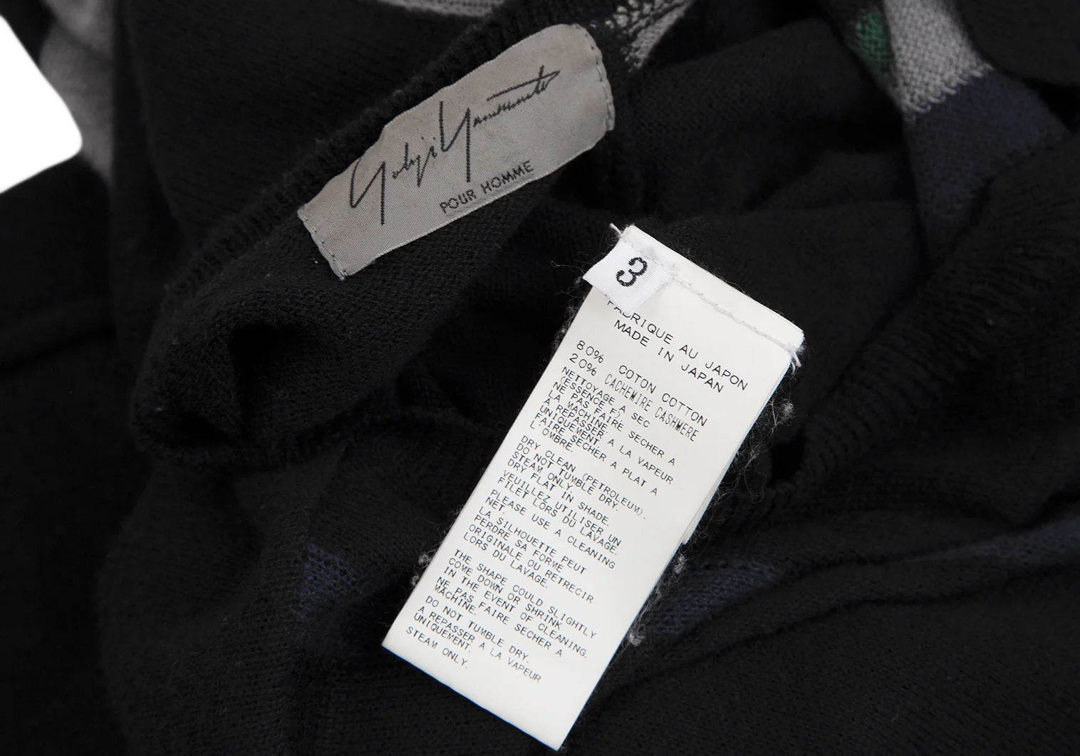 ヨウジヤマモト プールオムYohji Yamamoto POUR HOMME コットンカシミヤラインニットカーディガン 黒3